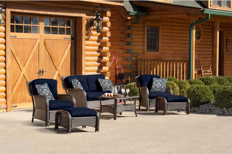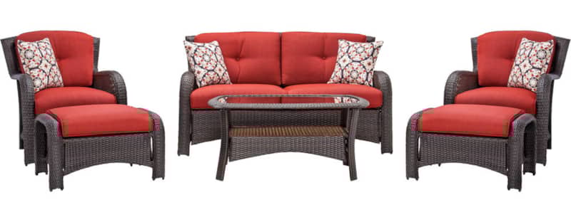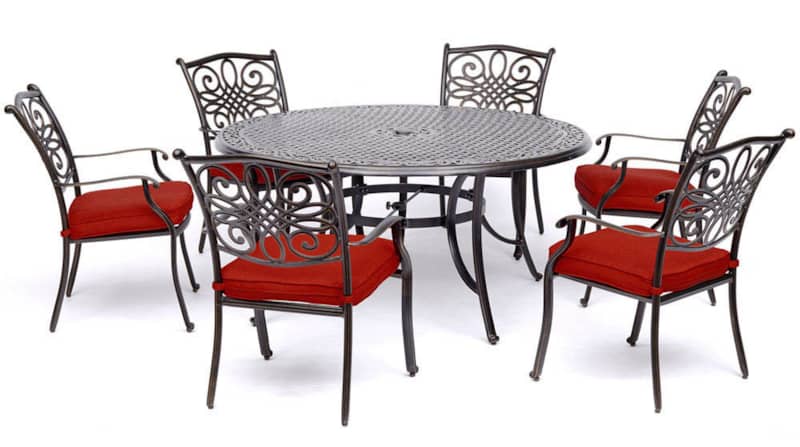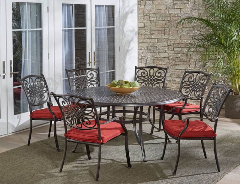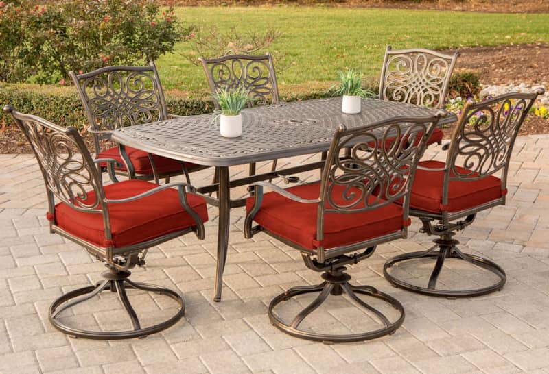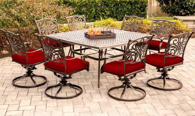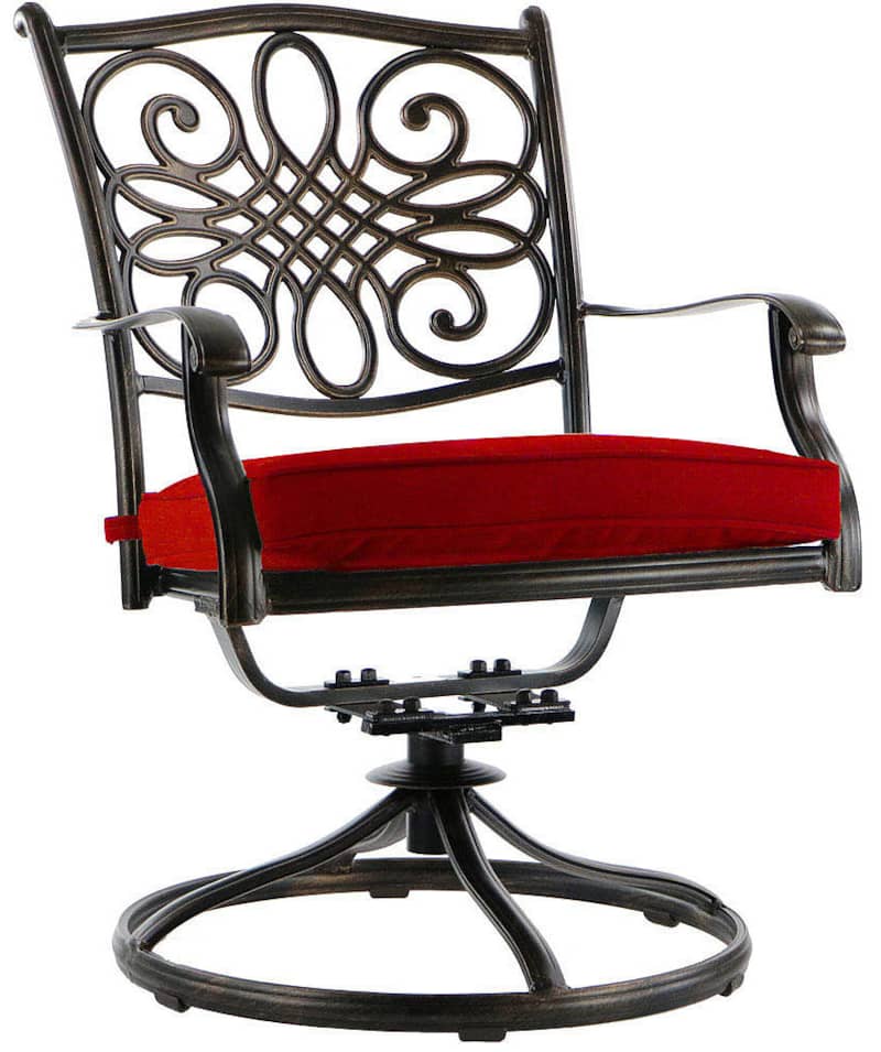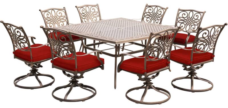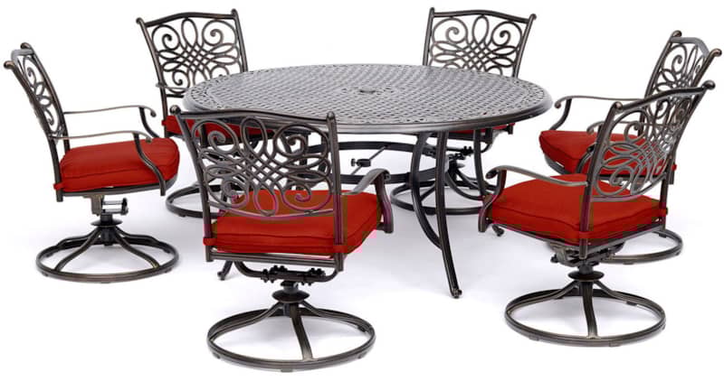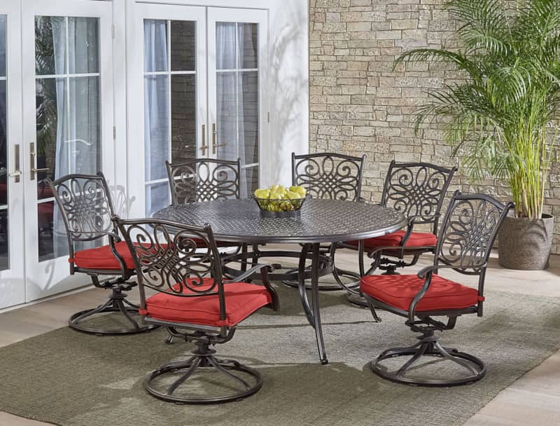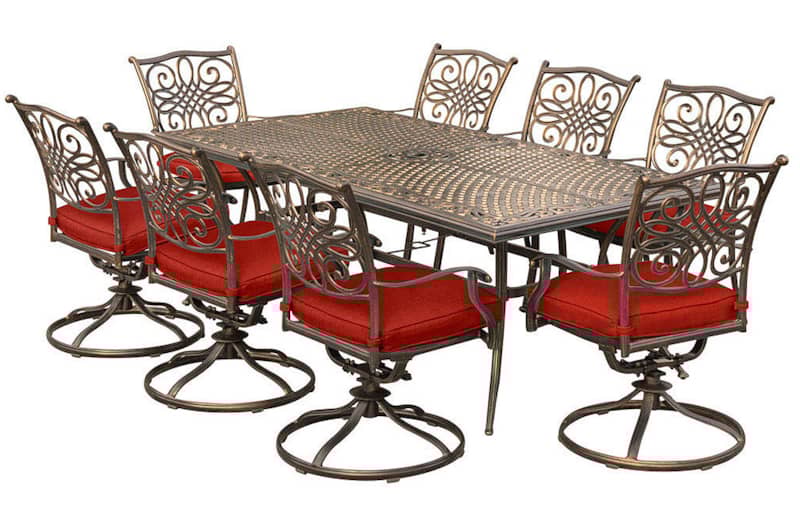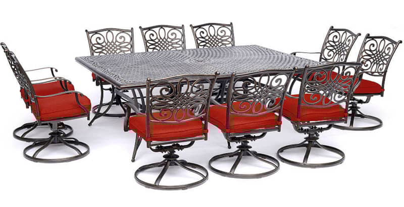 Hanover Traditions 11-Piece Outdoor Dining Set In Red/Cast With 10 Swivel Rockers, 60×84″ Cast Table