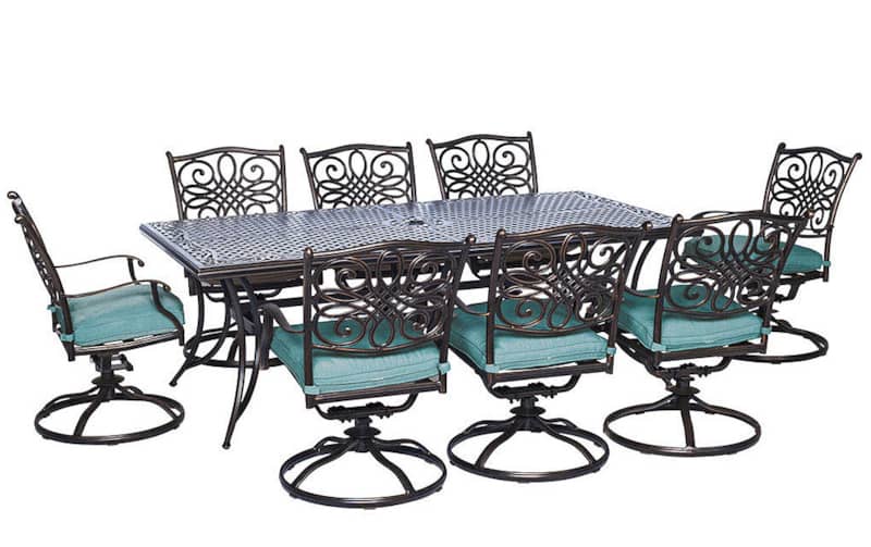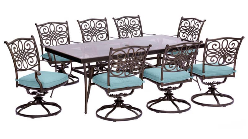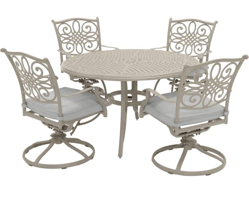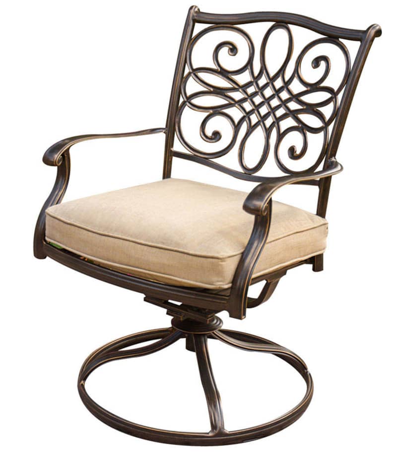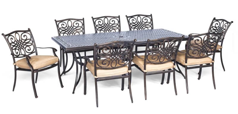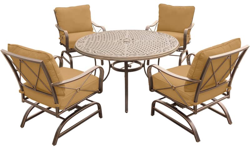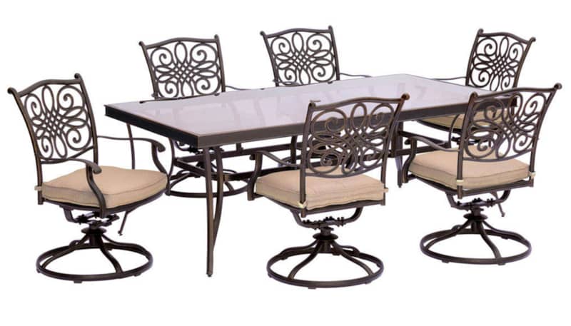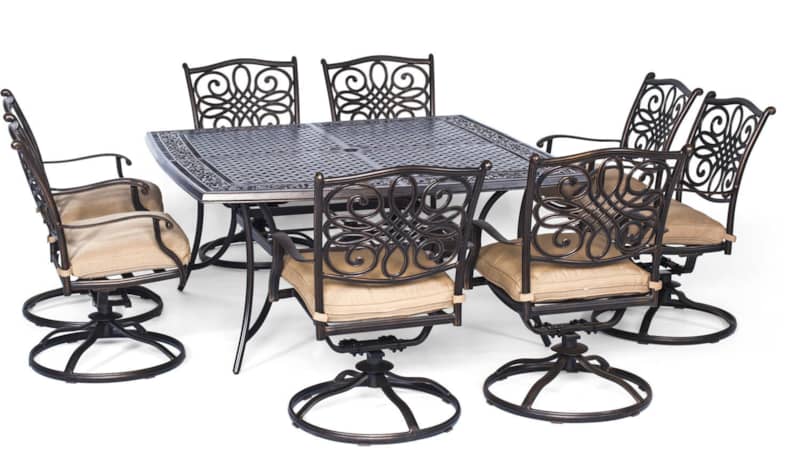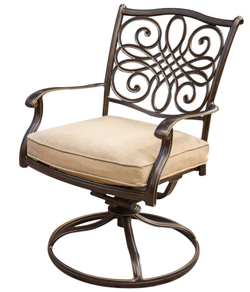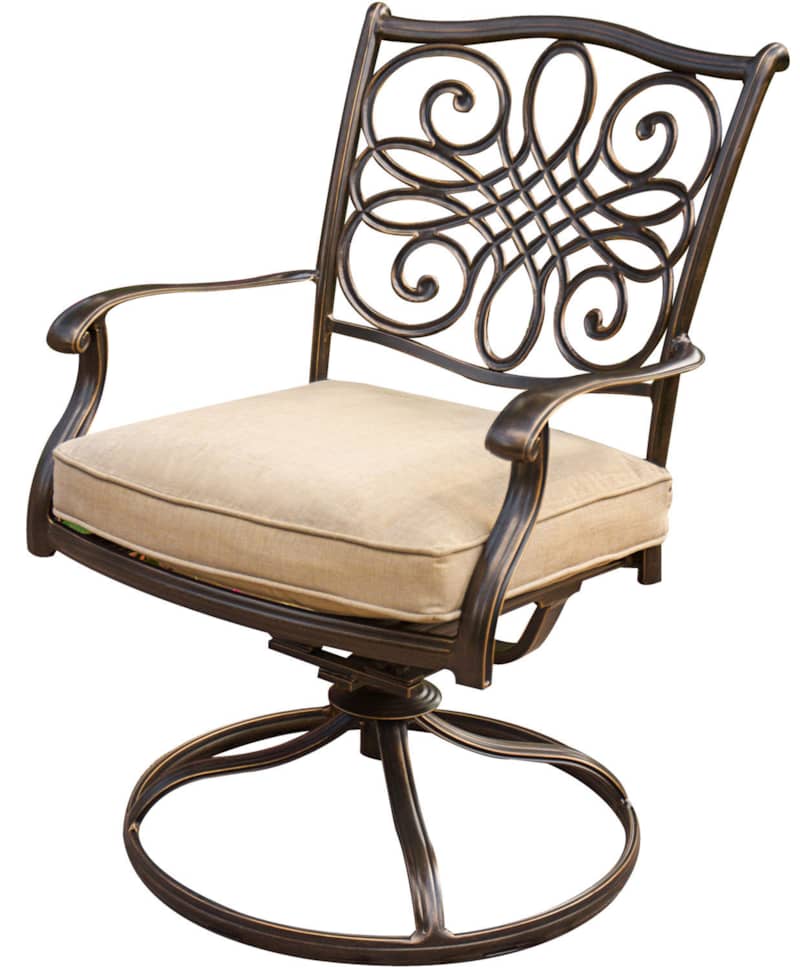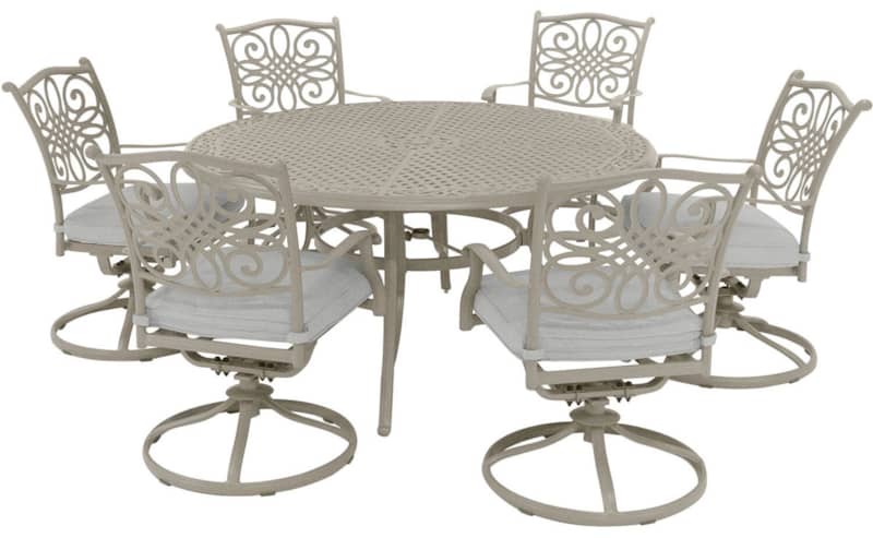 Hanover Traditions 11-Piece Outdoor Dining Set In Tan/Cast With 10 Swivel Rockers, 60×84″ Cast Table