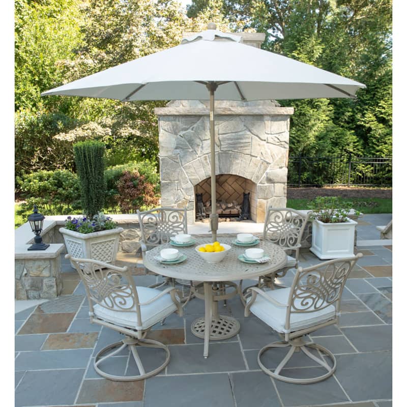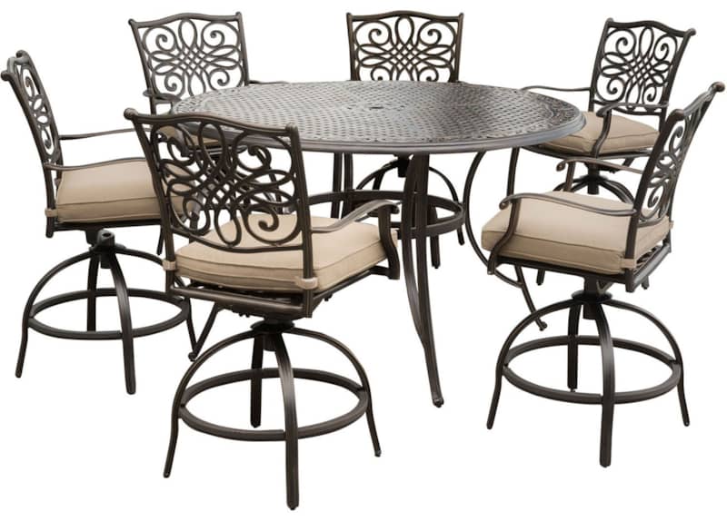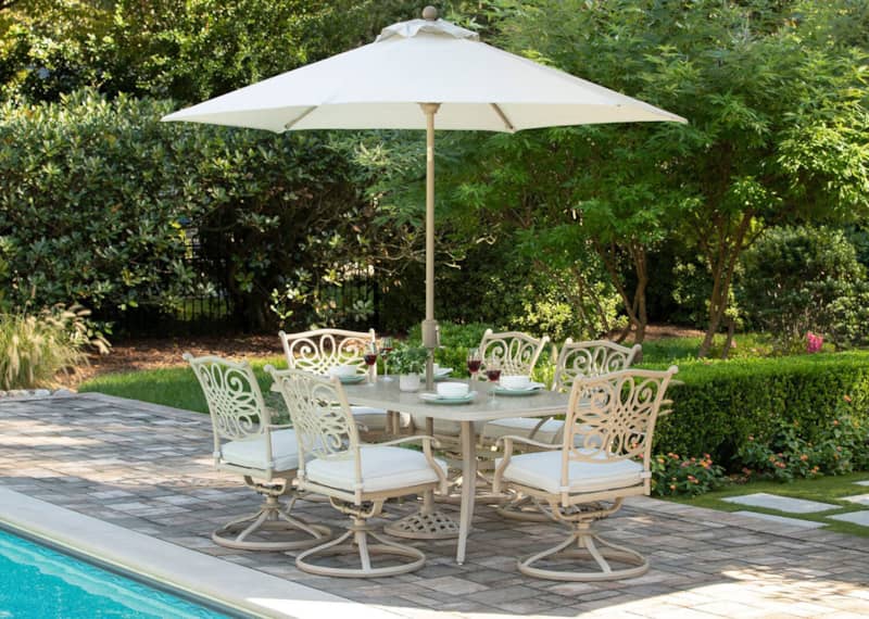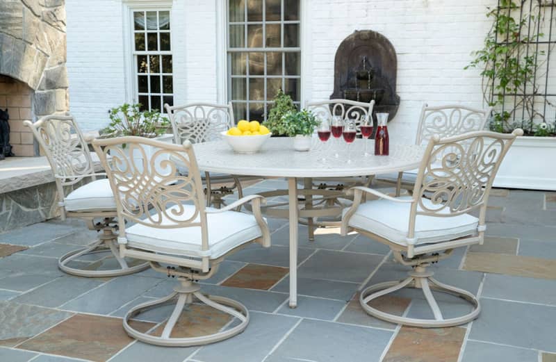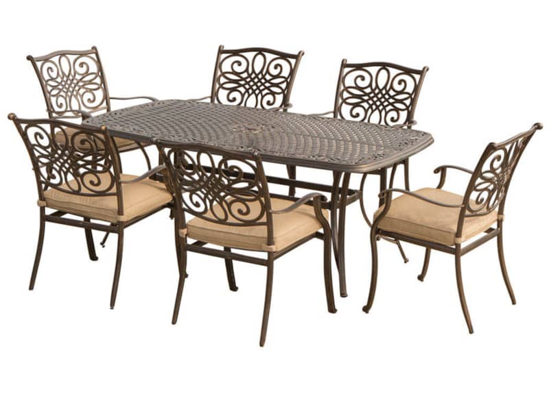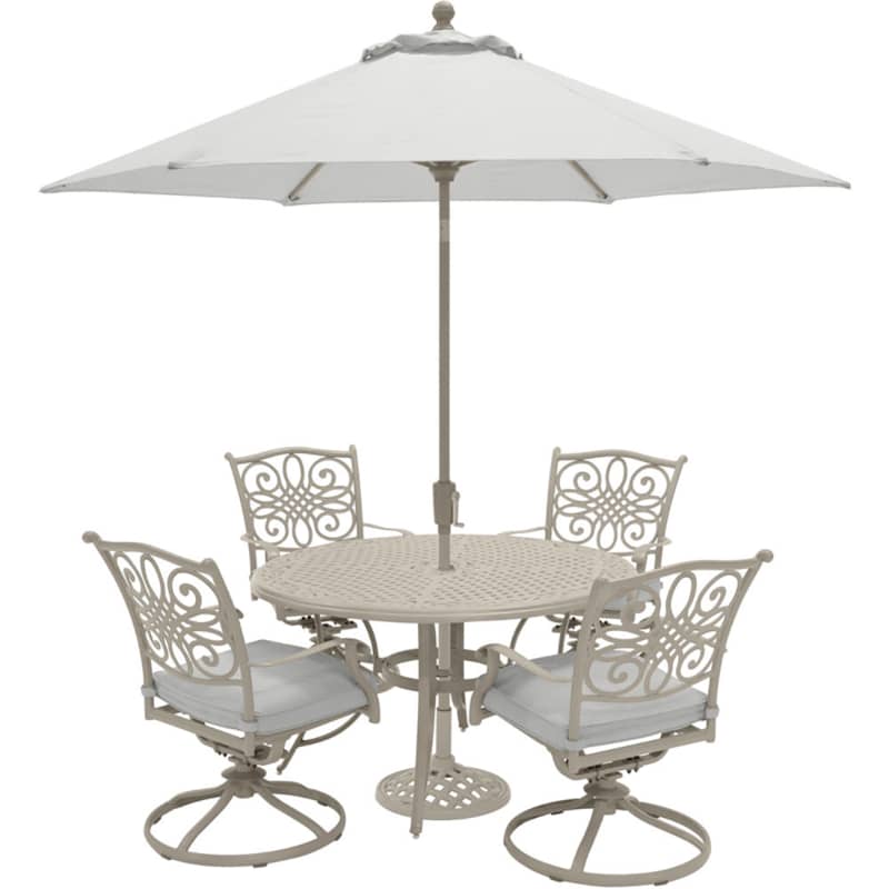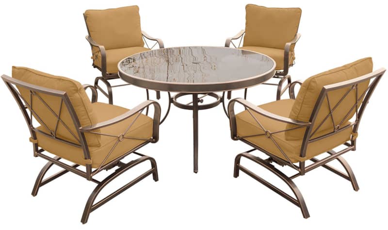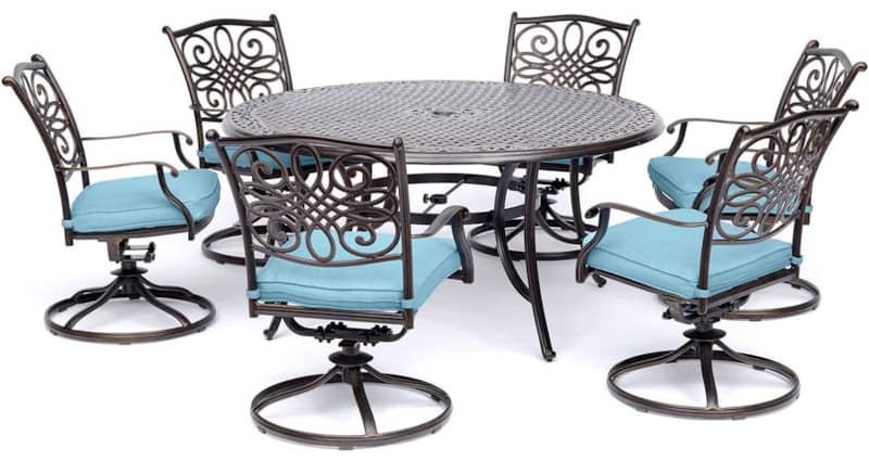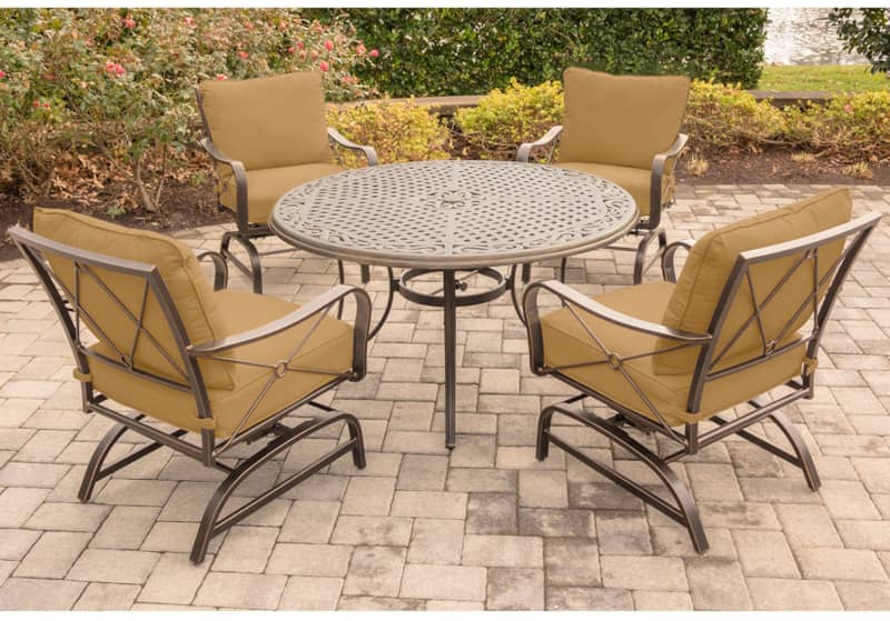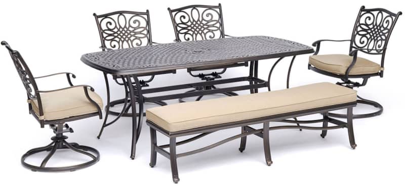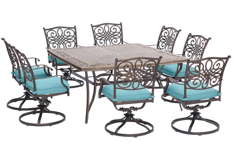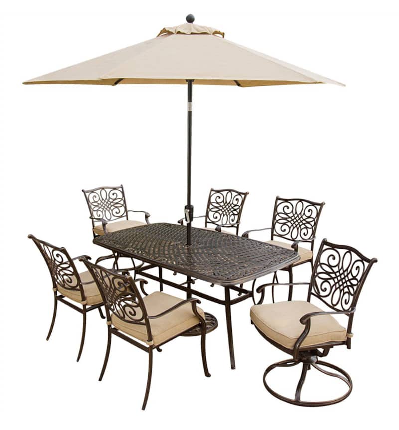 Hanover Traditions 11-Piece Outdoor Dining Set In Tan/Cast With 10 Swivel Rockers, 60×84″ Cast Table