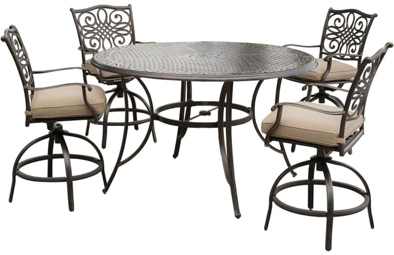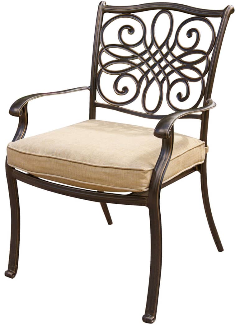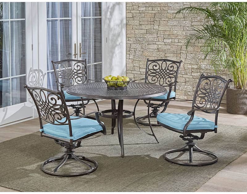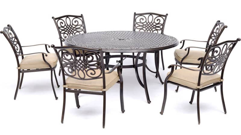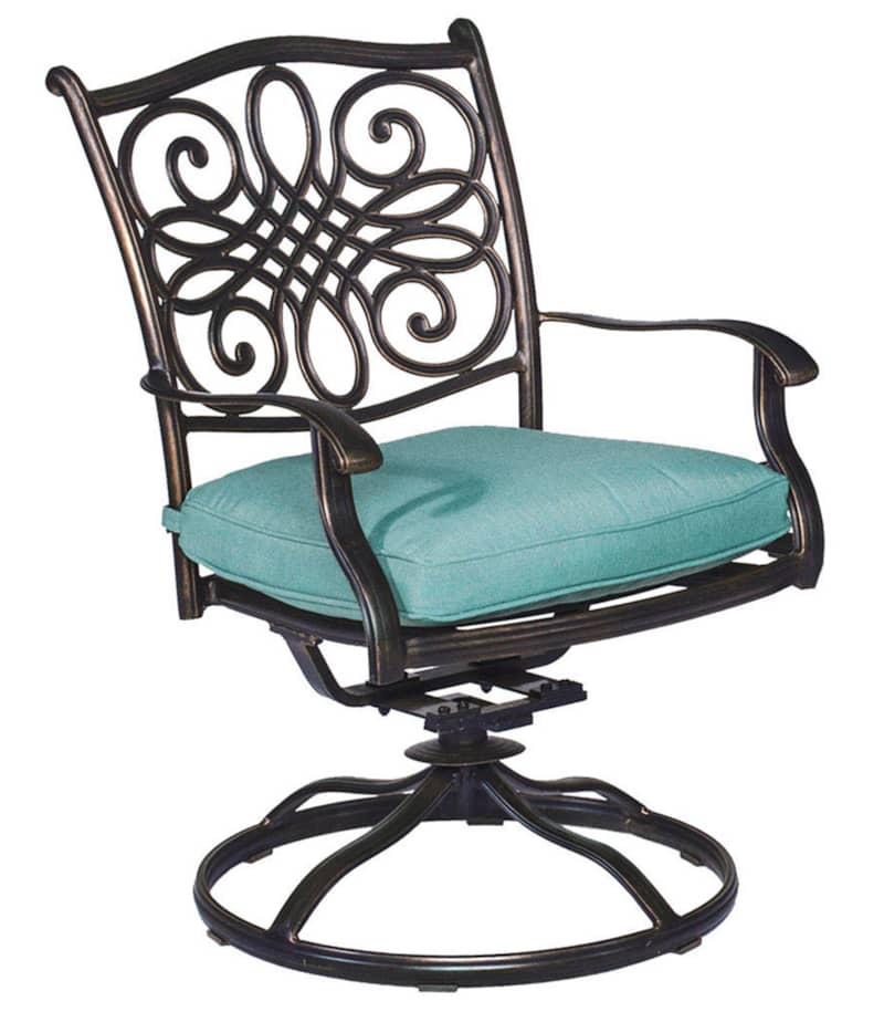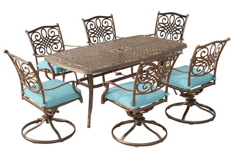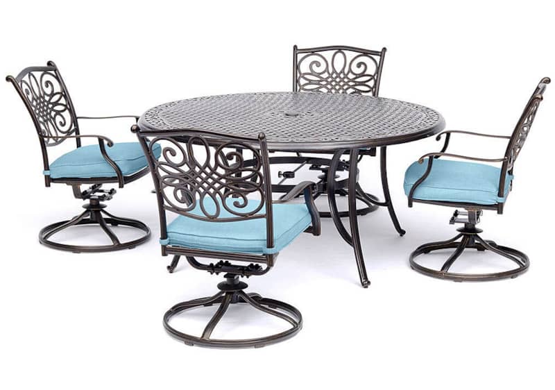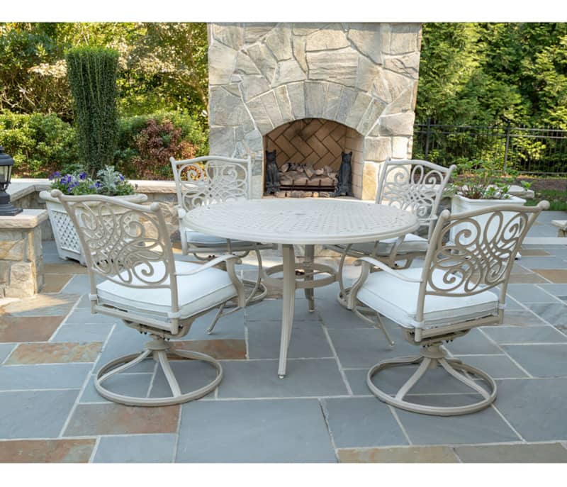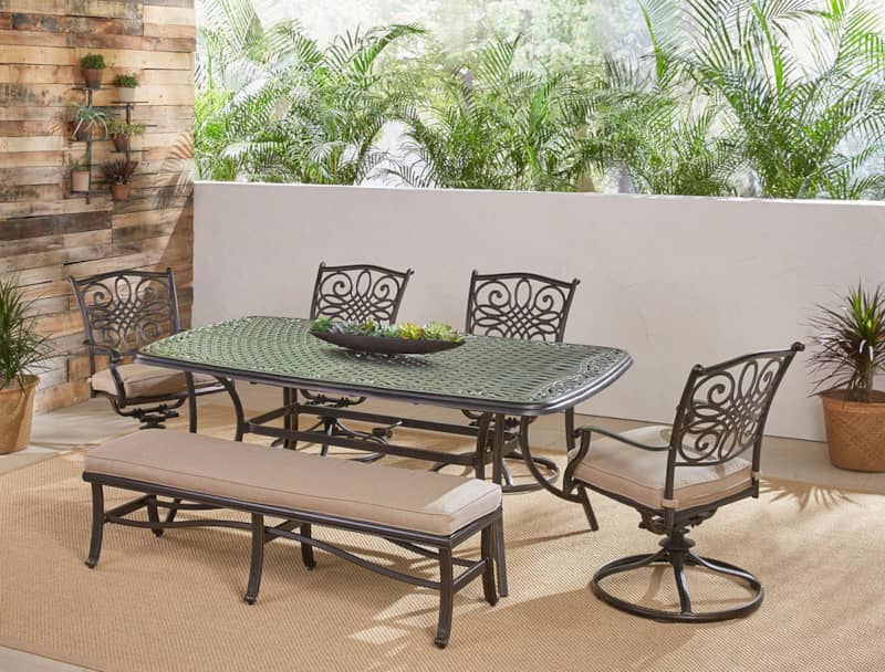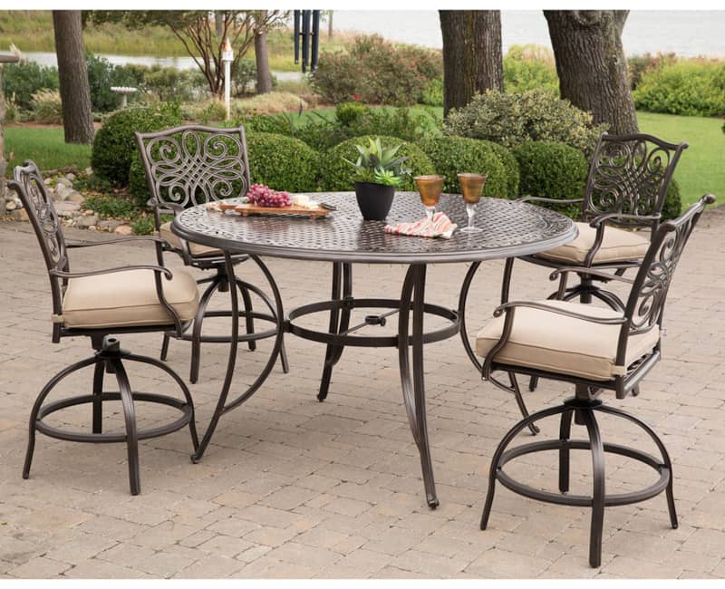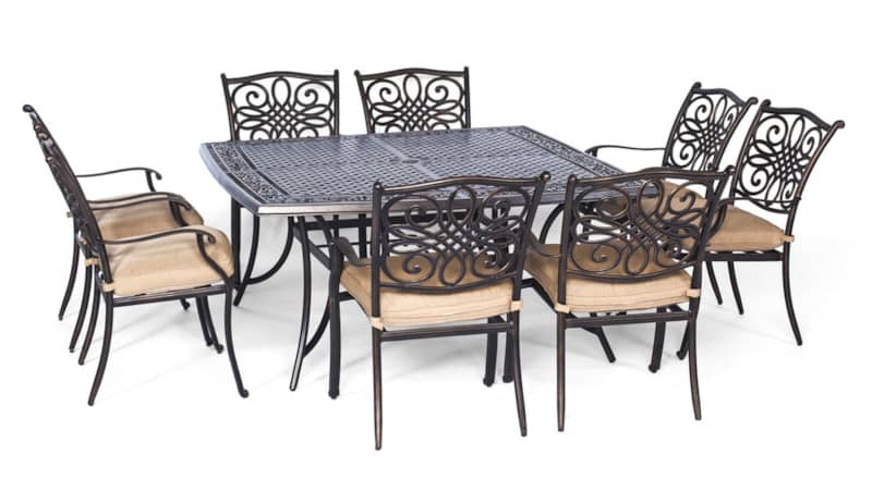 Hanover Traditions 11-Piece Outdoor Dining Set In Tan/Cast With 10 Swivel Rockers, 60×84″ Cast Table