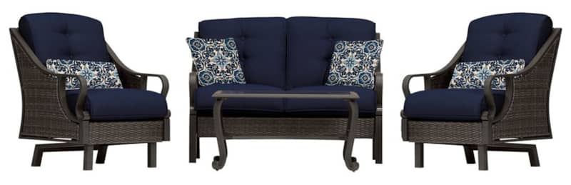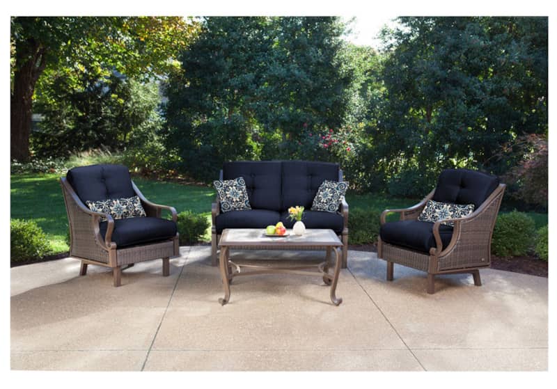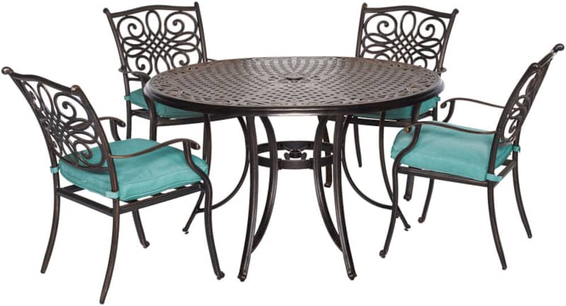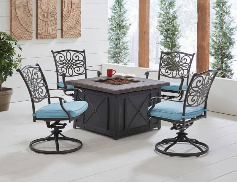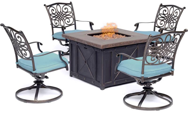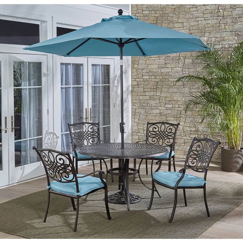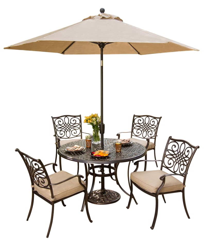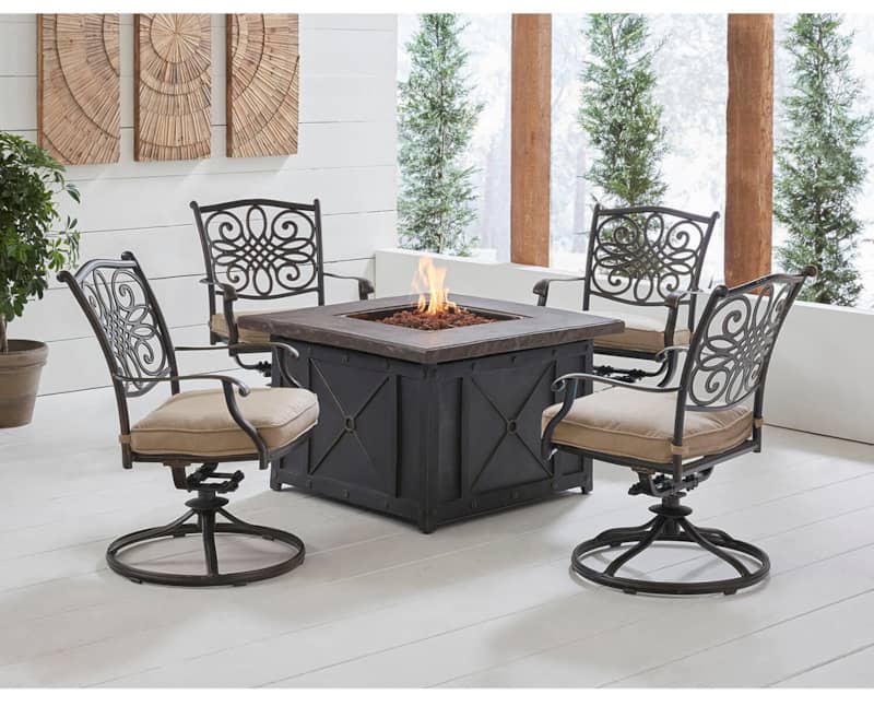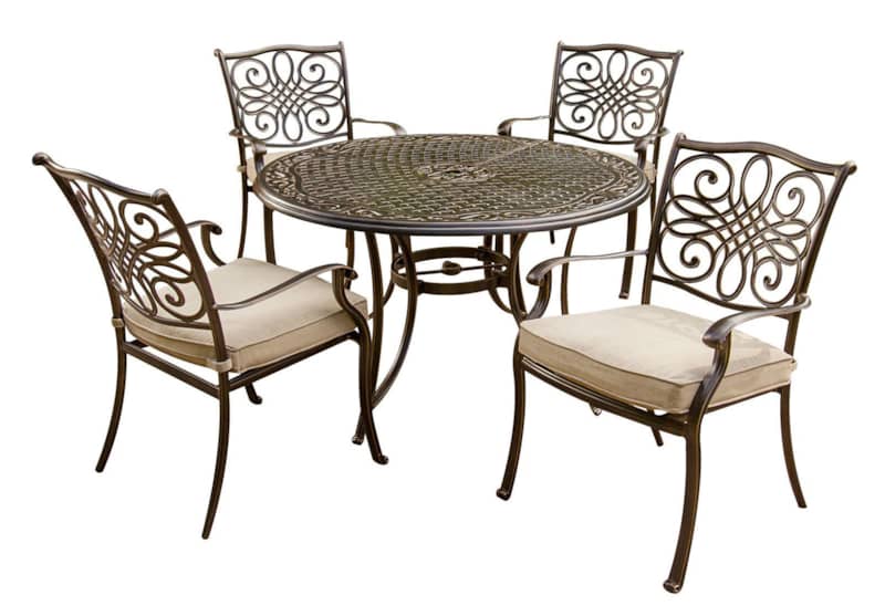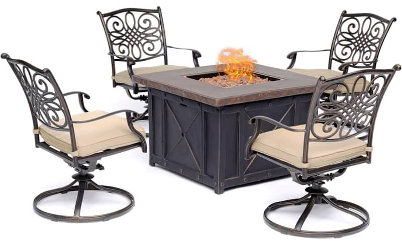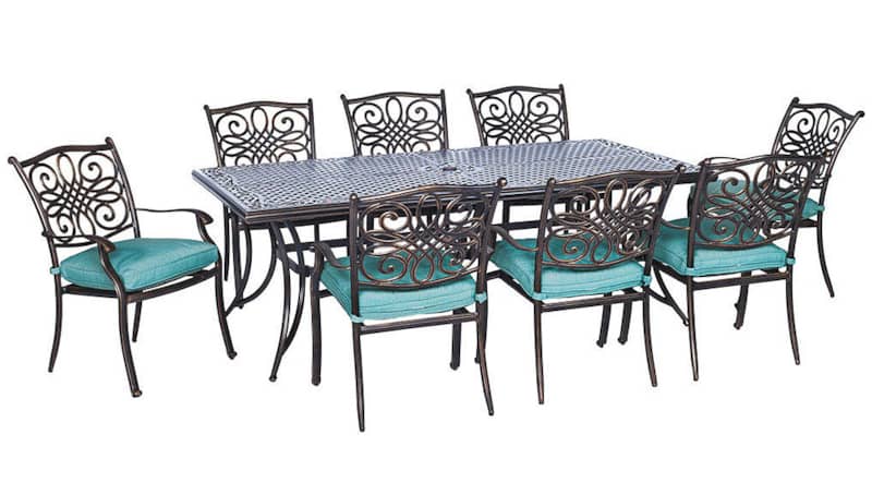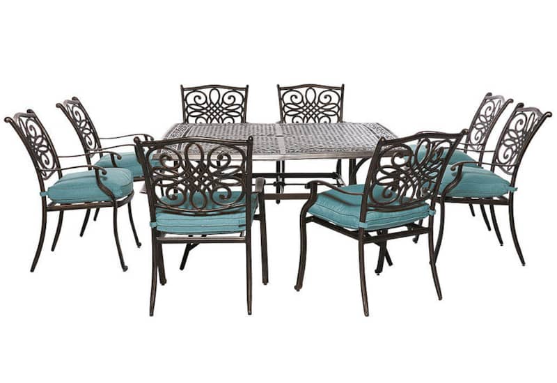 Hanover Traditions 11-Piece Outdoor Dining Set In Tan/Cast With 10 Swivel Rockers, 60×84″ Cast Table