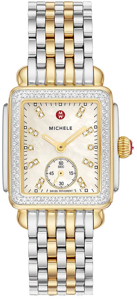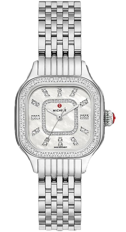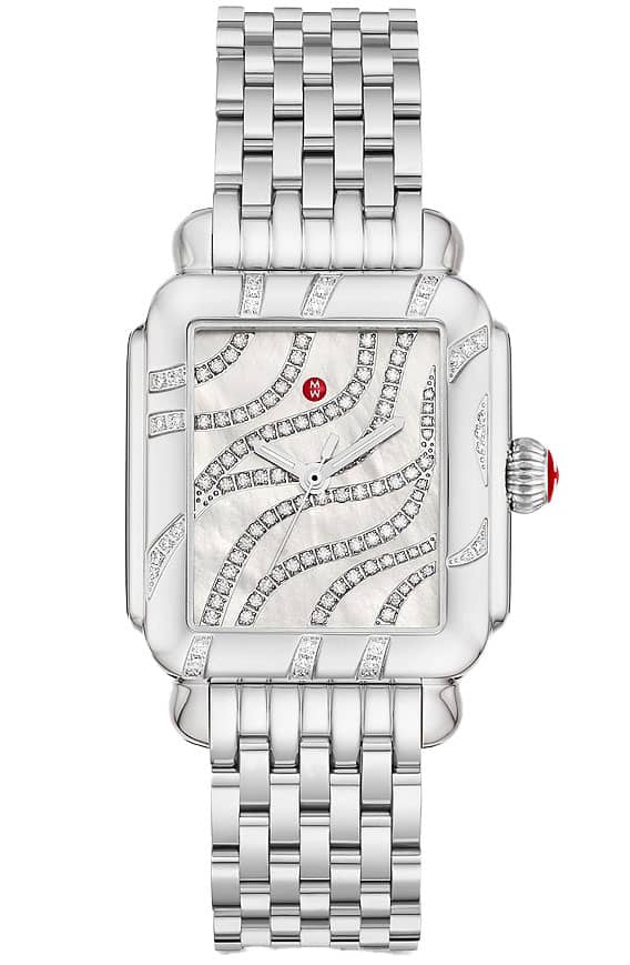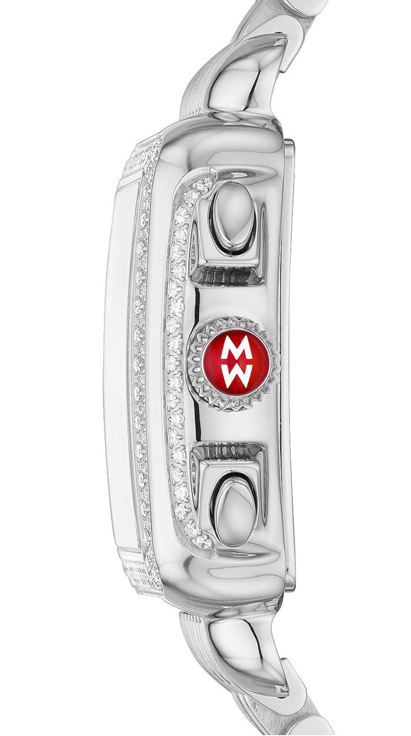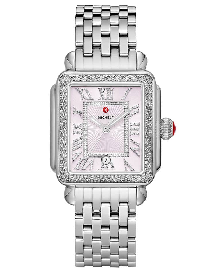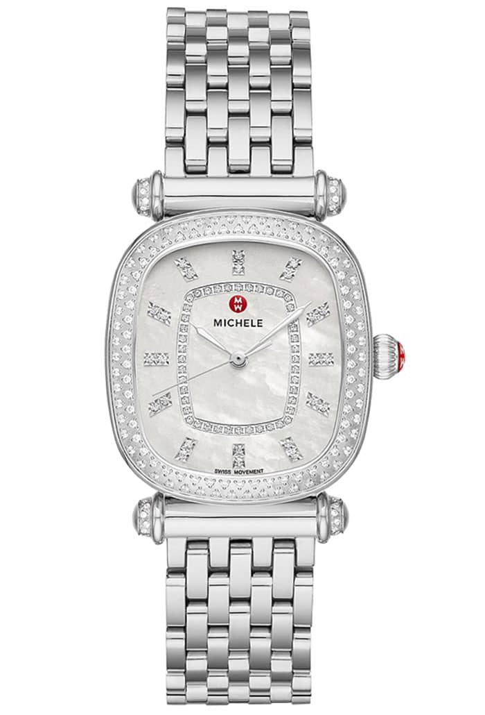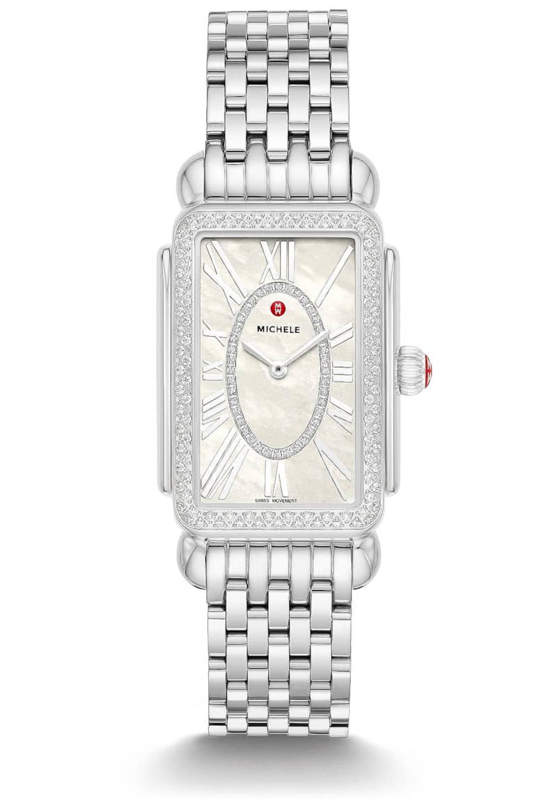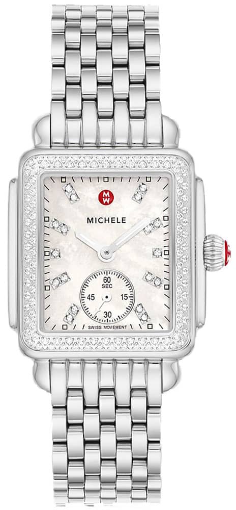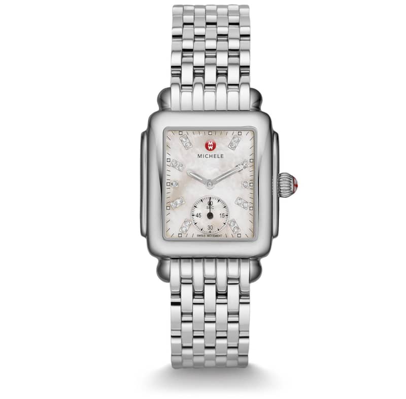Michele Deco Mid Diamond White MOP Dial Silver-Tone Stainless Steel Bracelet Watch, 29mm