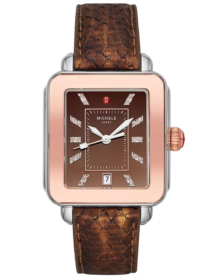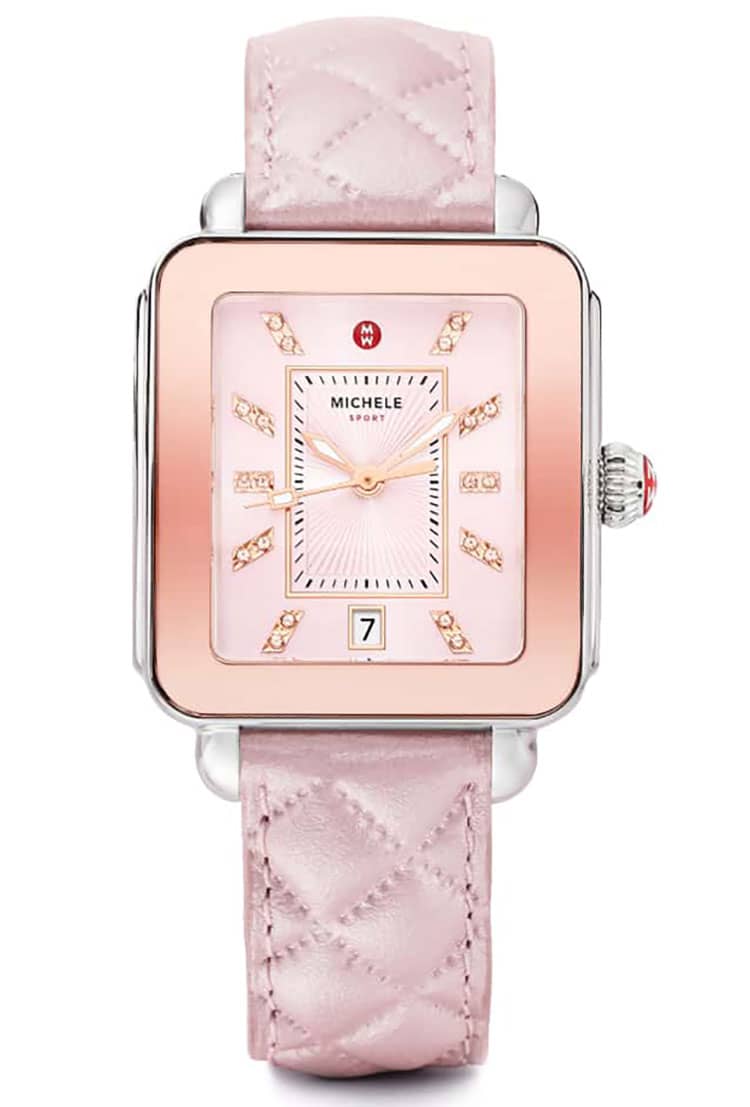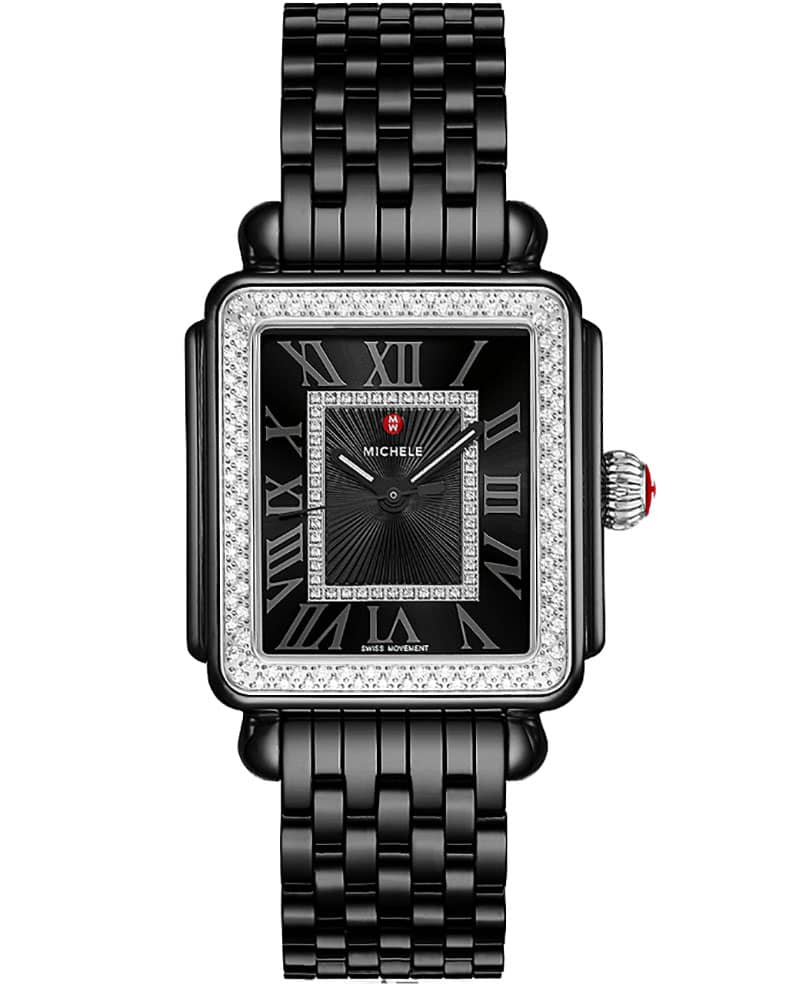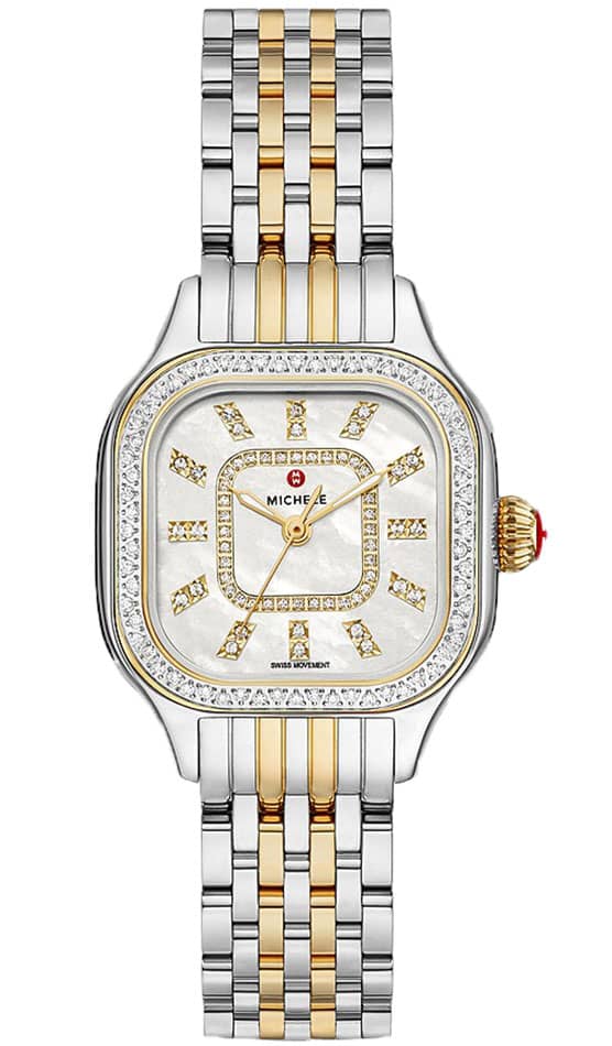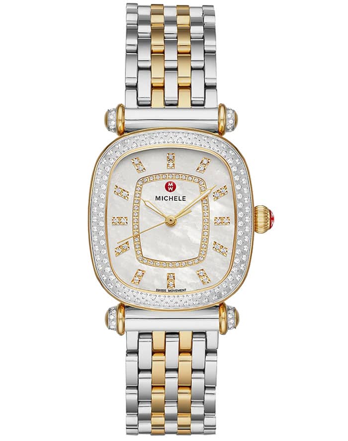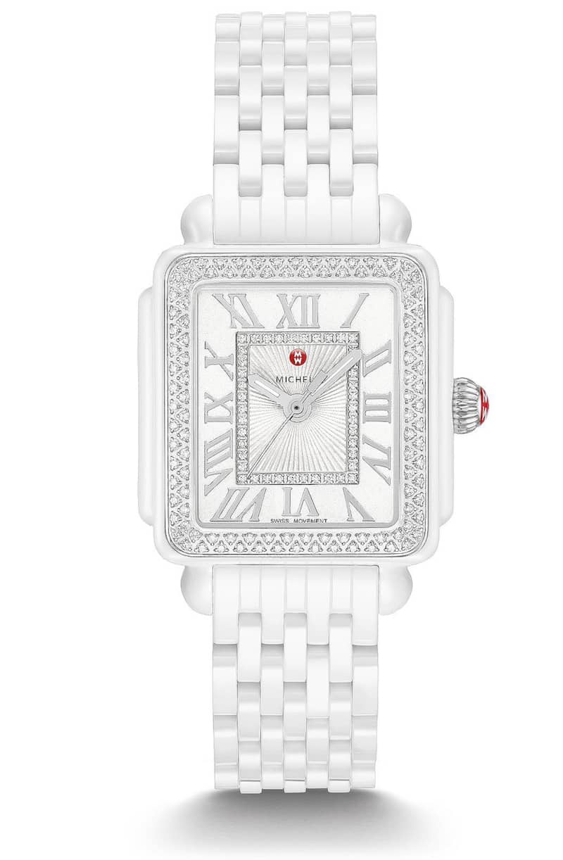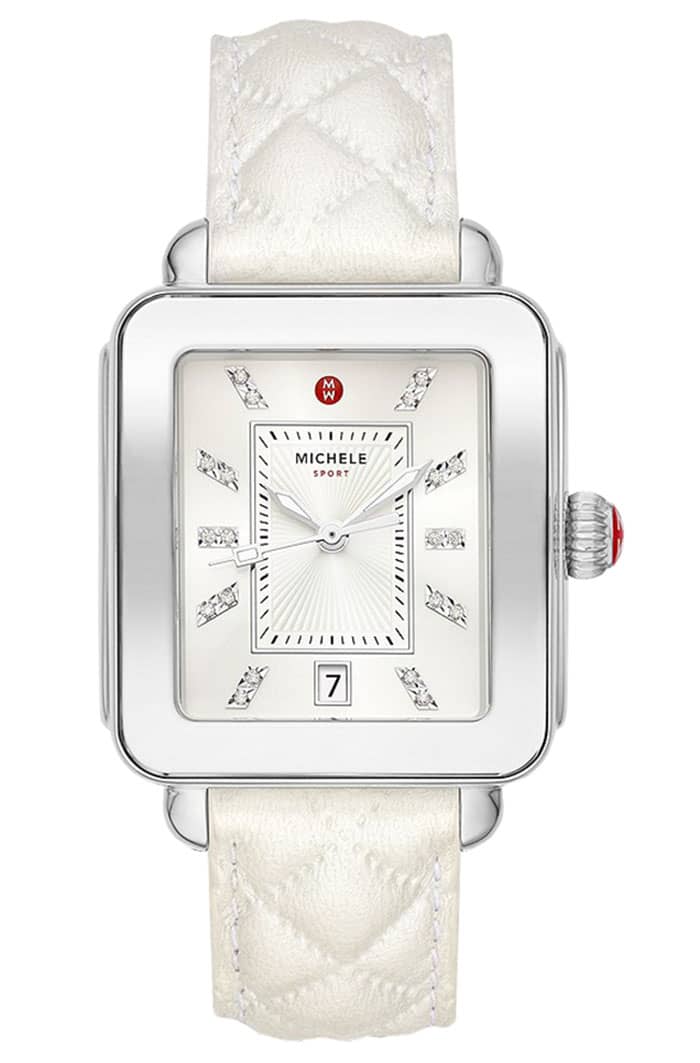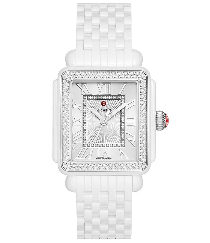 Michele Deco Mid Diamond White MOP Dial Silver-Tone Stainless Steel Bracelet Watch, 29mm