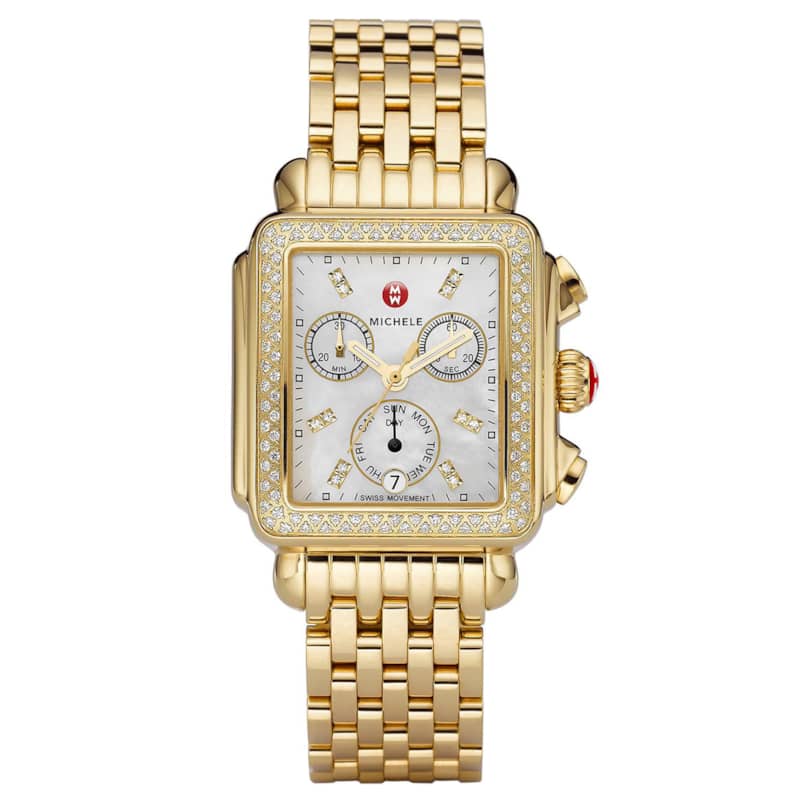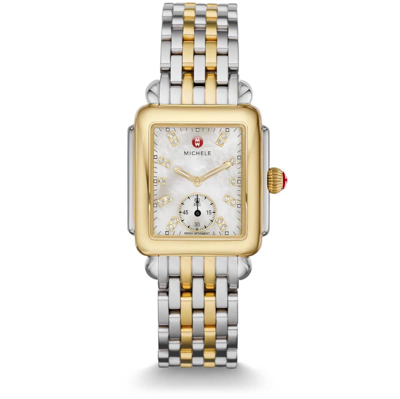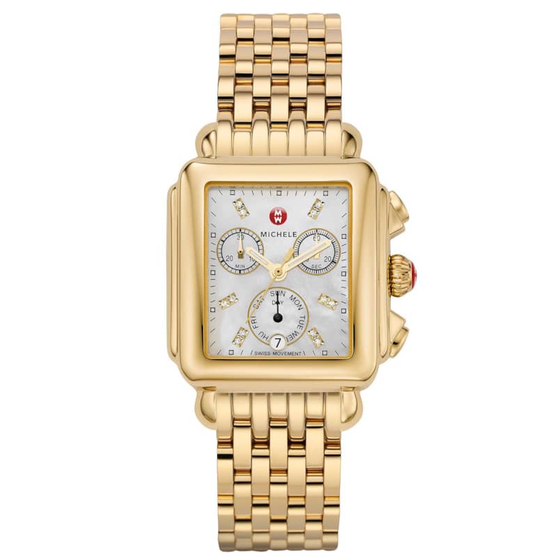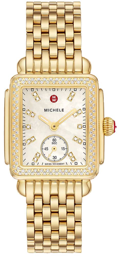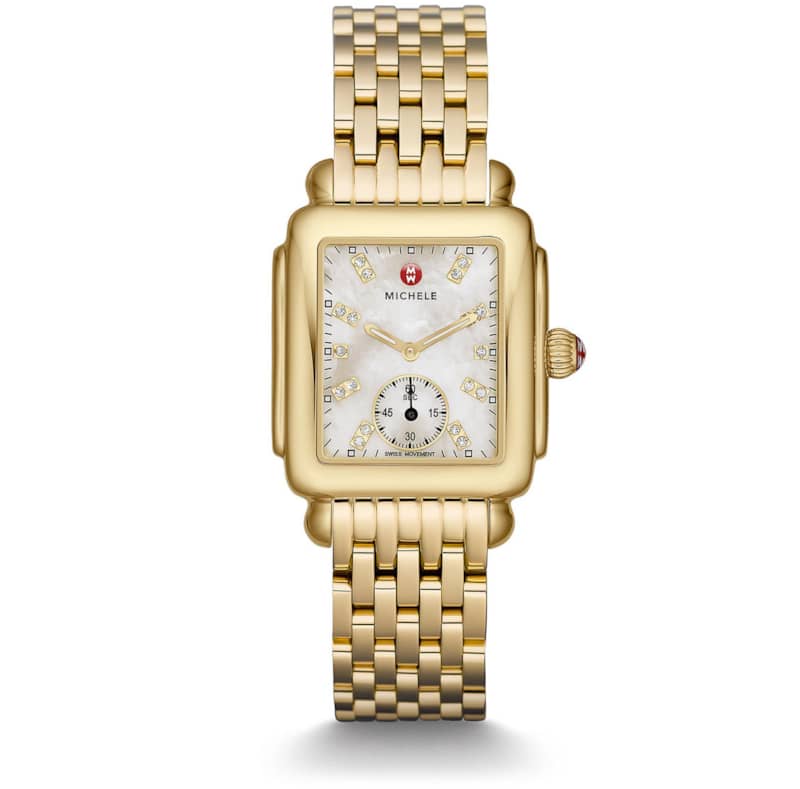 Michele Deco Mid Diamond White MOP Dial 18K Gold-Tone Stainless Steel Bracelet Watch, 29mm