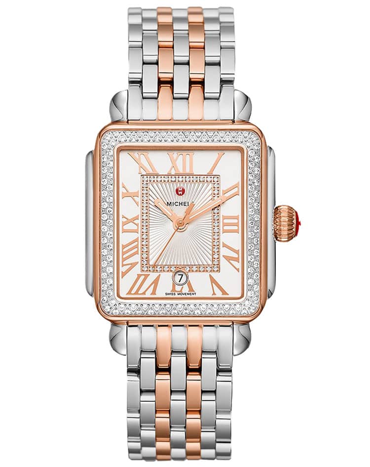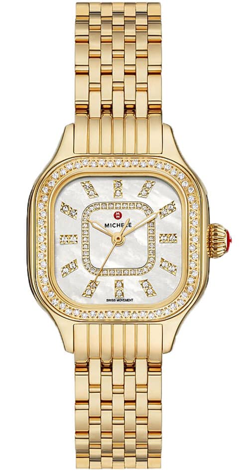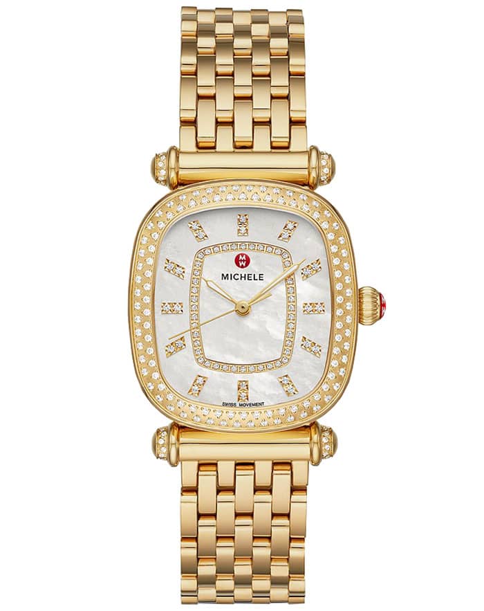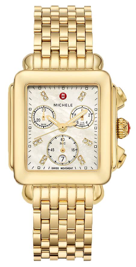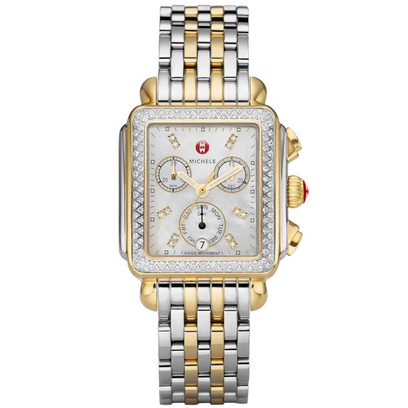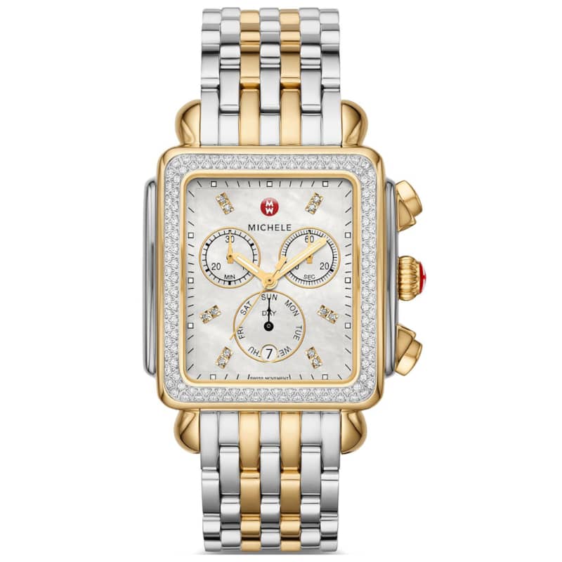 Michele Deco Mid Diamond White MOP Dial 18K Gold-Tone Stainless Steel Bracelet Watch, 29mm