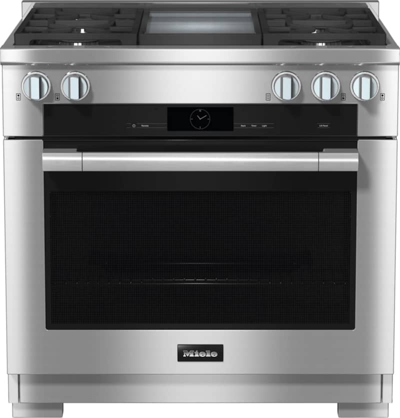 Miele HR 1936-3 G DF GD M Touch 36″ Clean Touch Steel Natural Gas Dual Fuel Range With Griddle