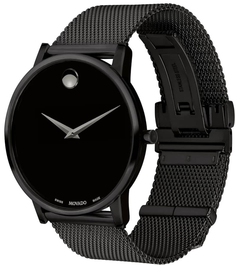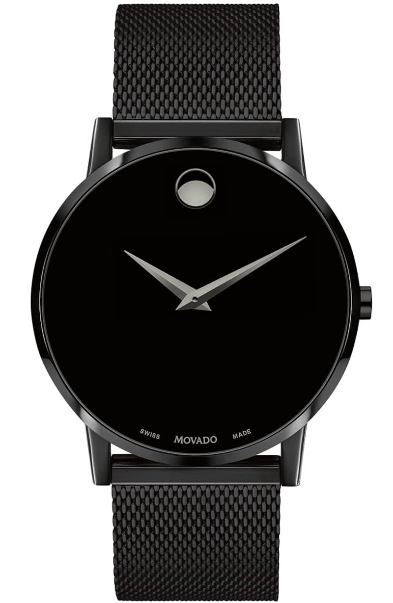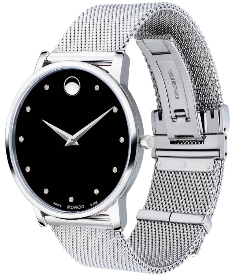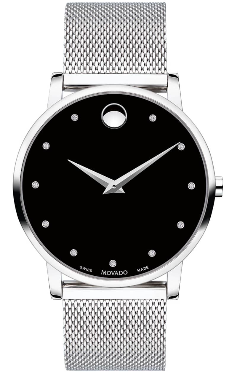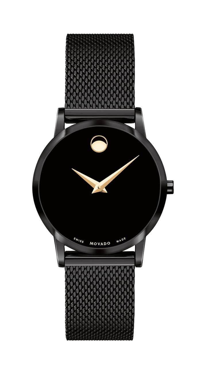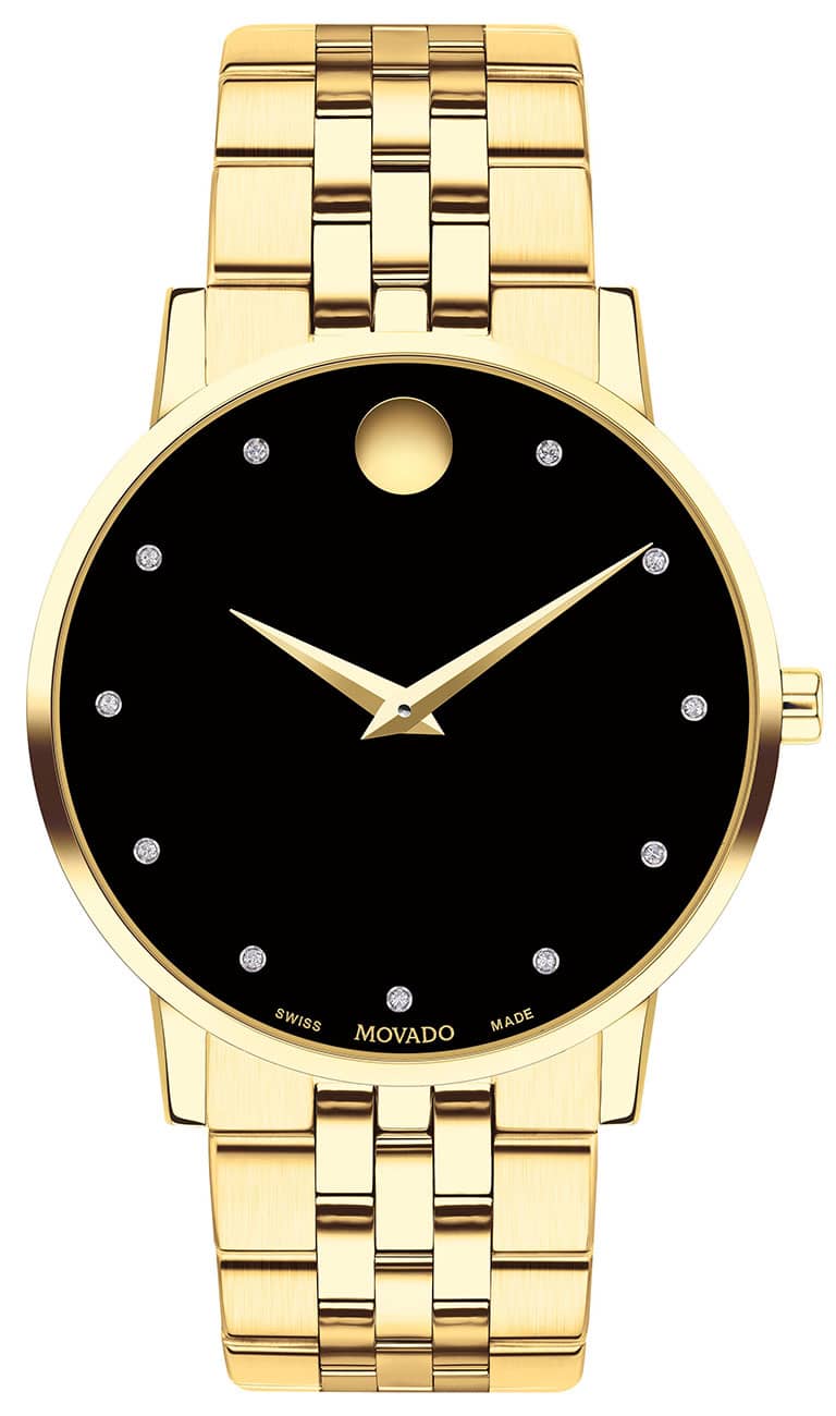 Movado Museum Classic Black Diamond Dial Yellow Gold PVD Stainless Steel Mesh Watch, 40mm