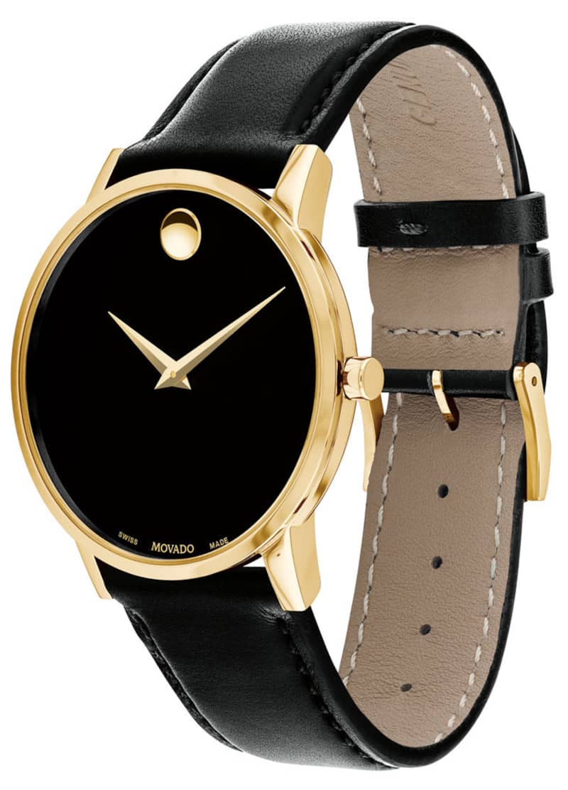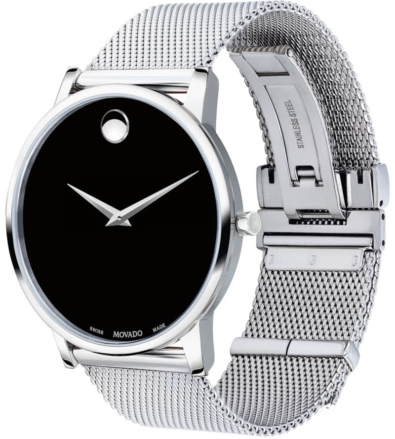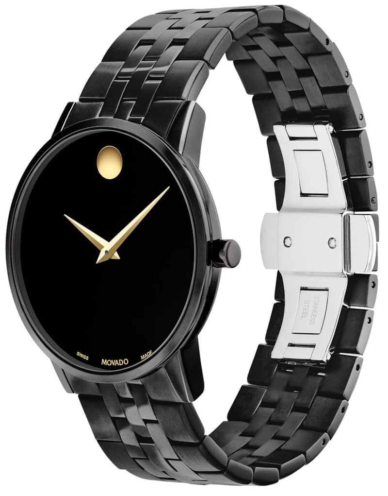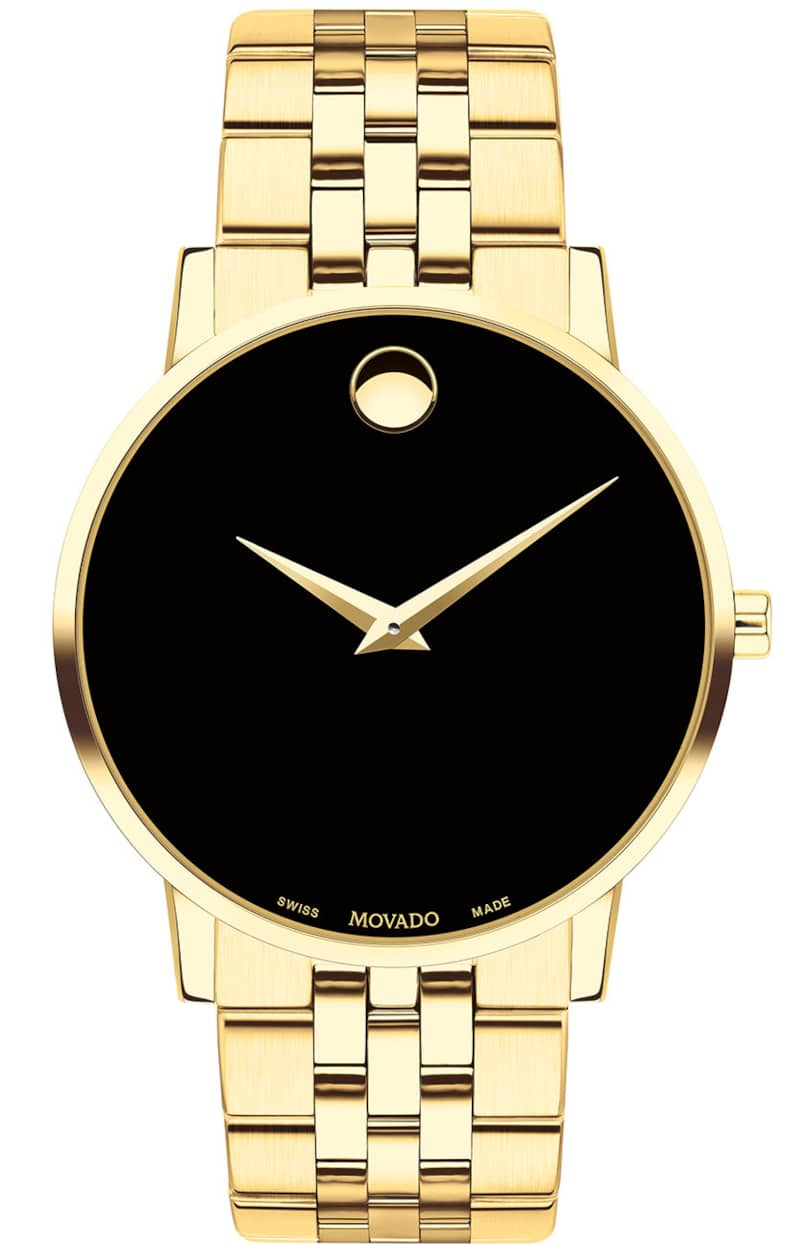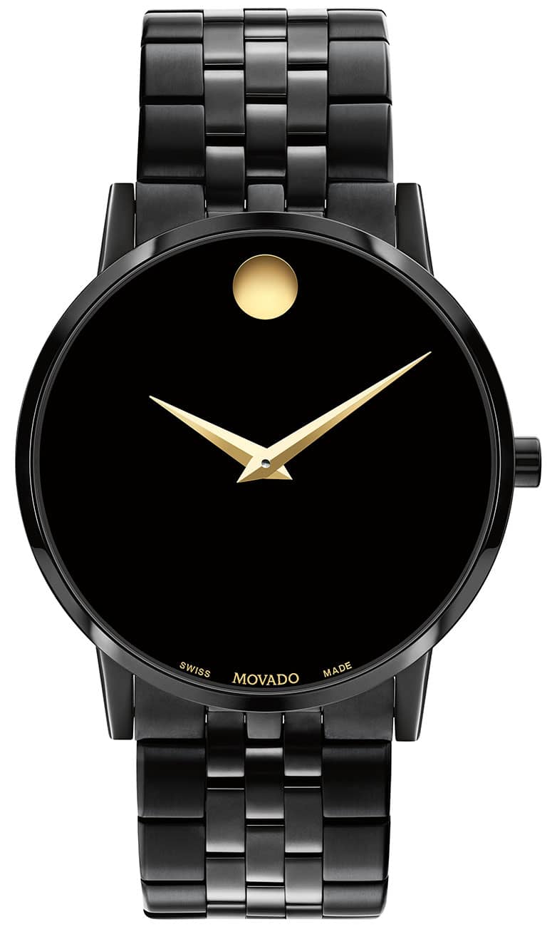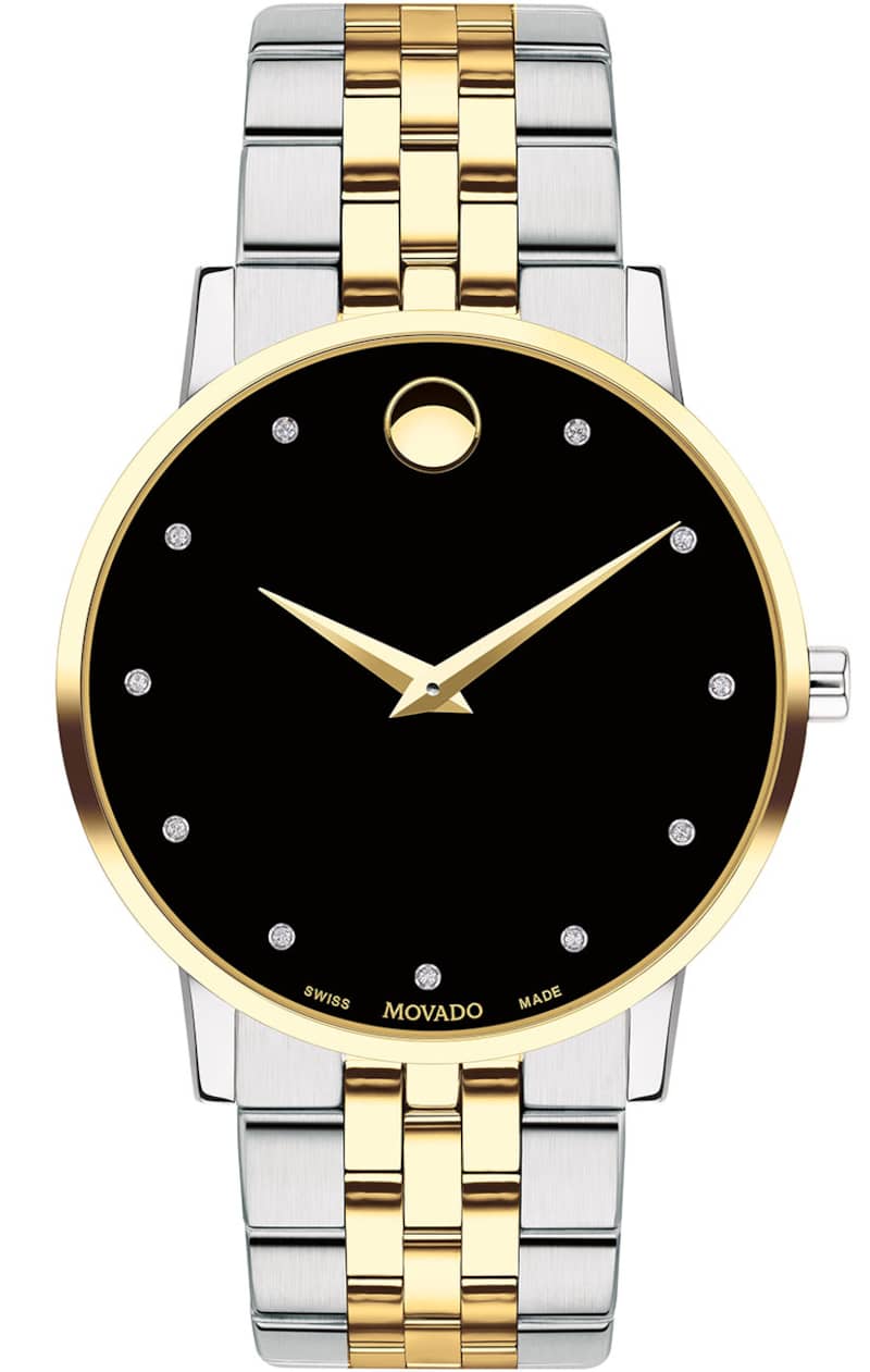 Movado Museum Classic Black Diamond Dial Yellow Gold PVD Stainless Steel Mesh Watch, 40mm
