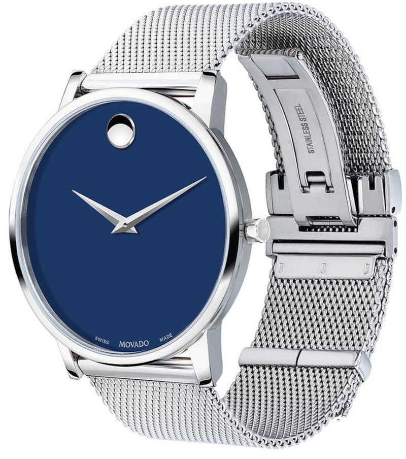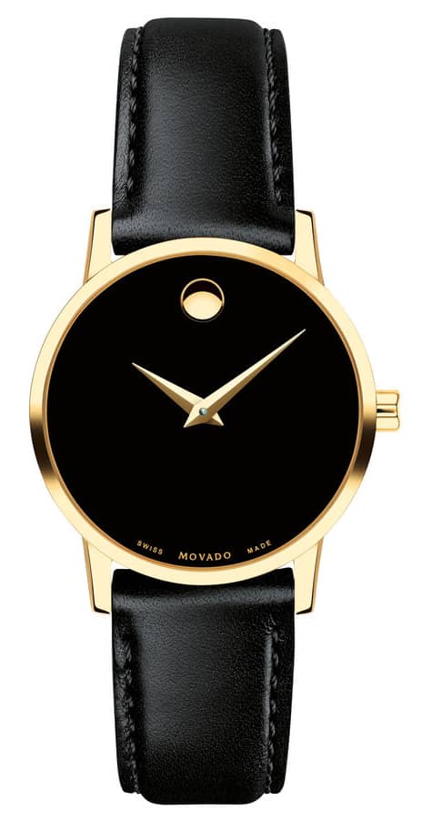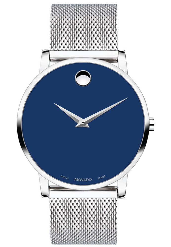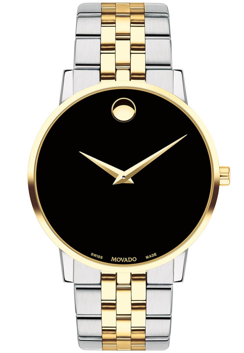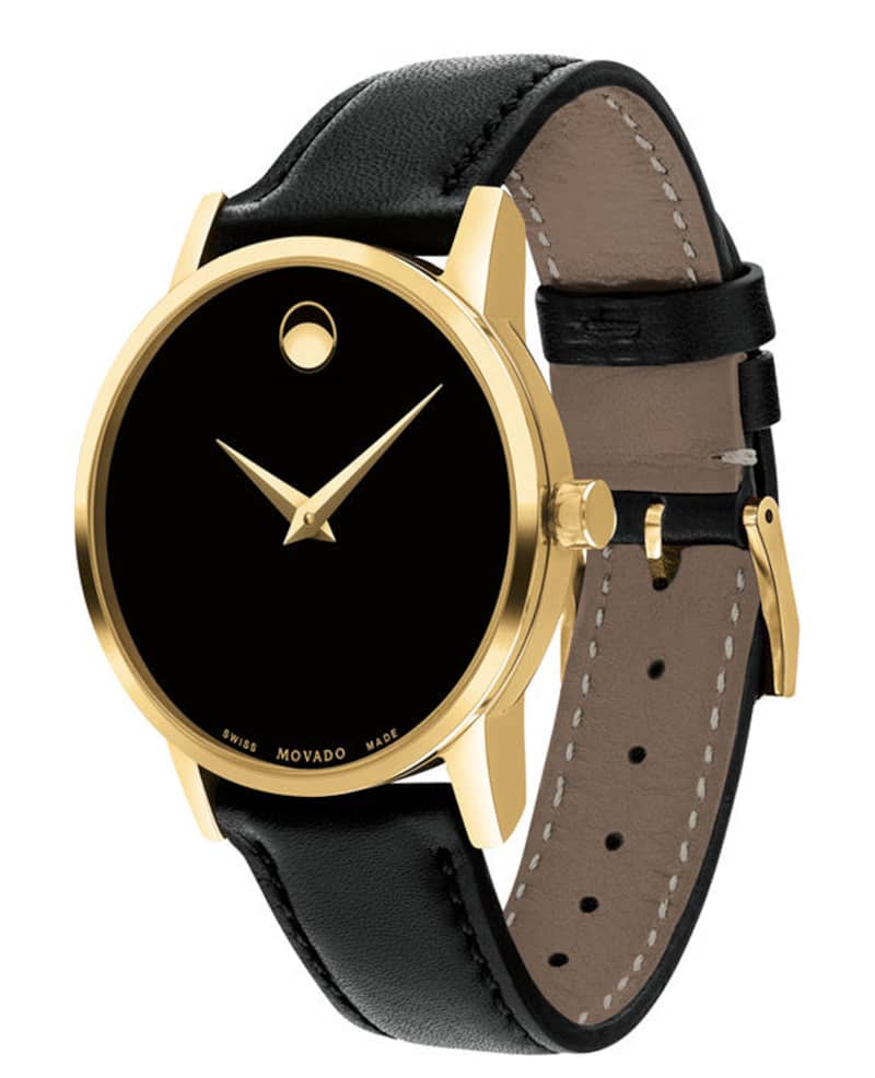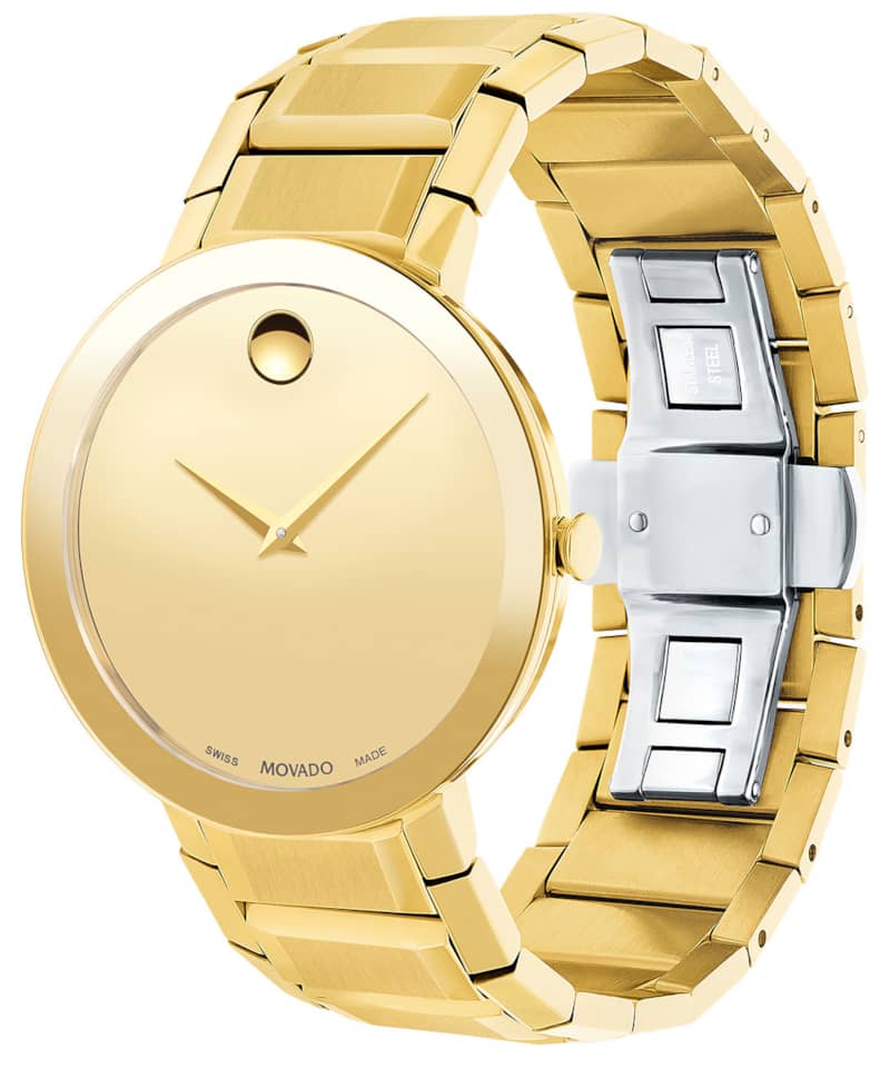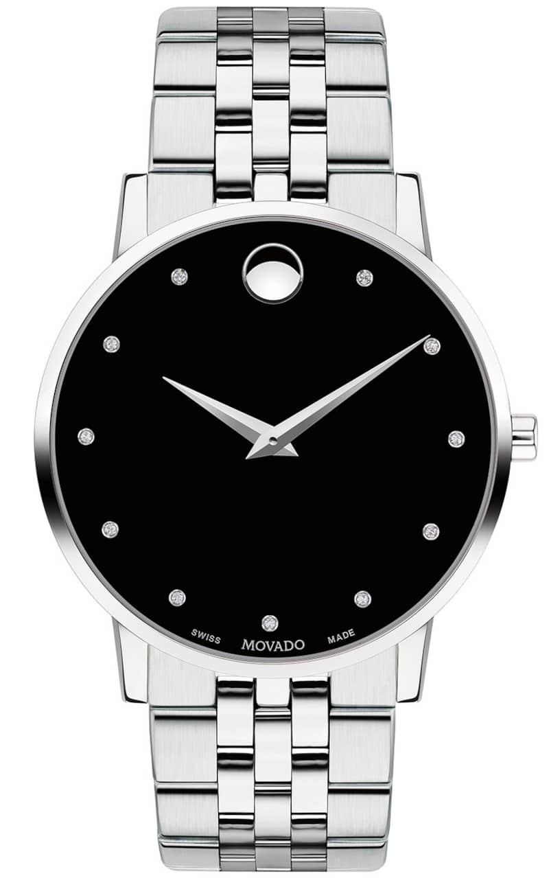 Movado Museum Classic Black Diamond Dial Yellow Gold PVD Stainless Steel Mesh Watch, 40mm