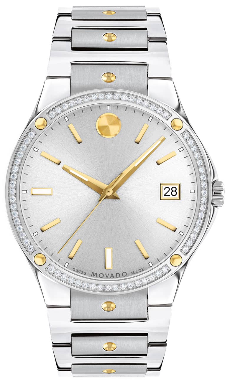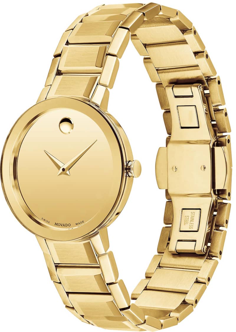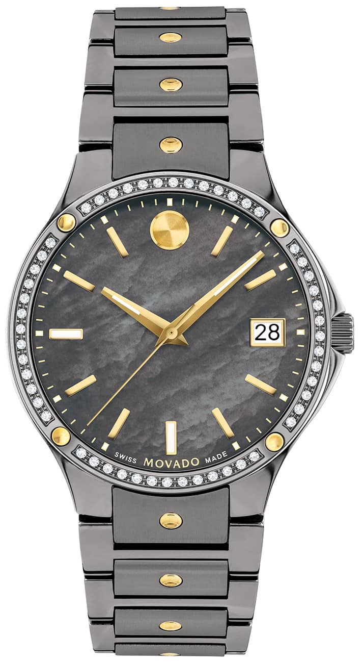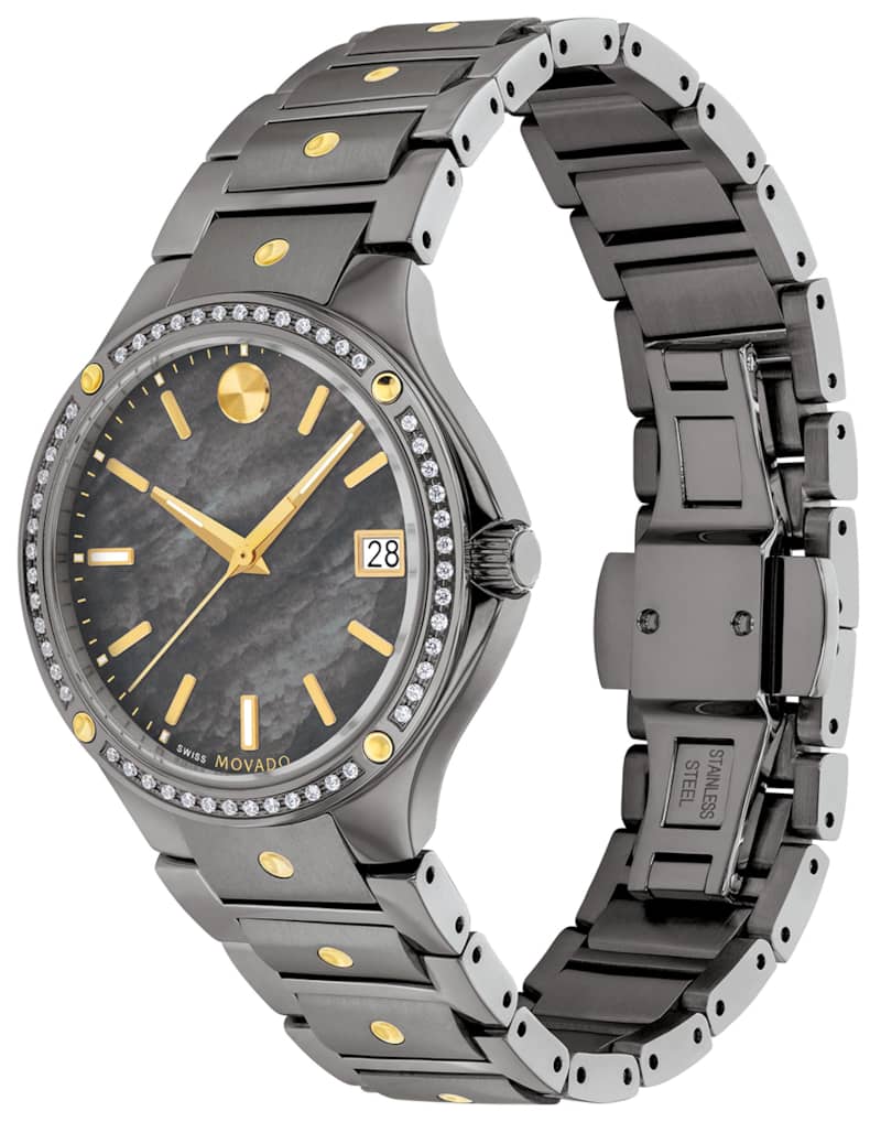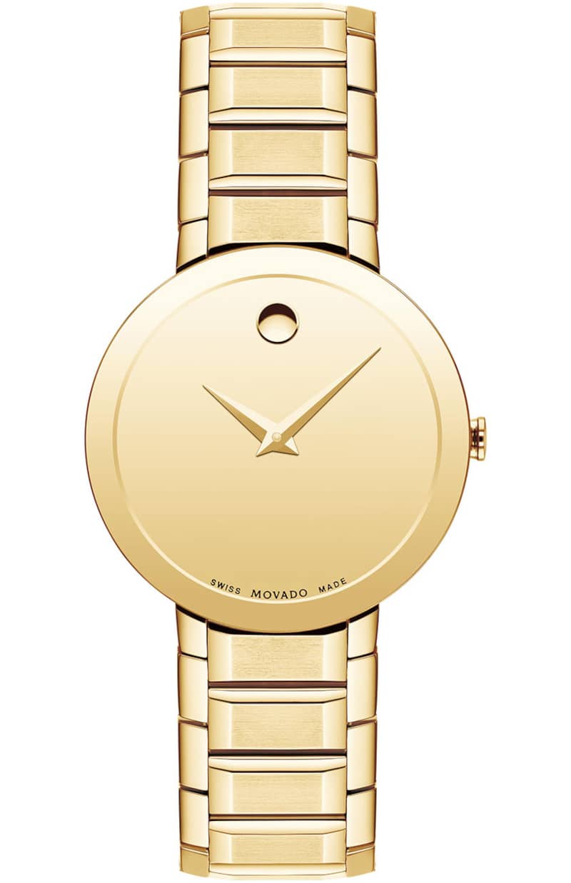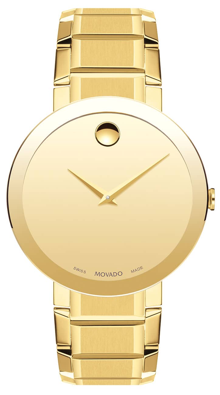 Movado Museum Classic Black Diamond Dial Yellow Gold PVD Stainless Steel Mesh Watch, 40mm