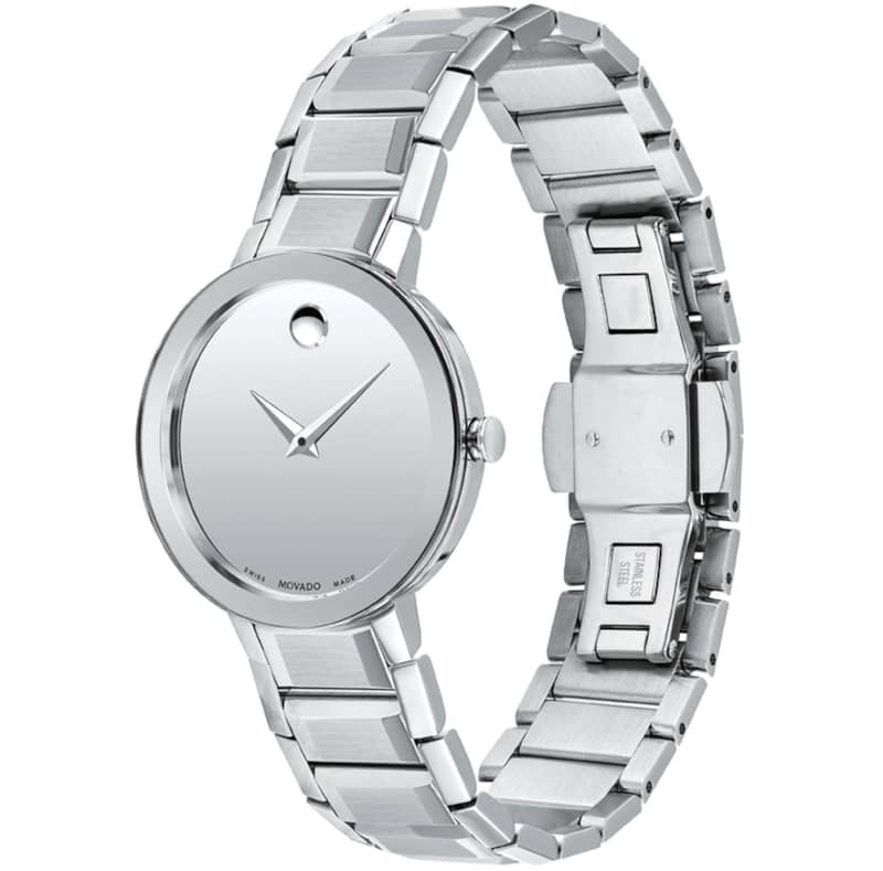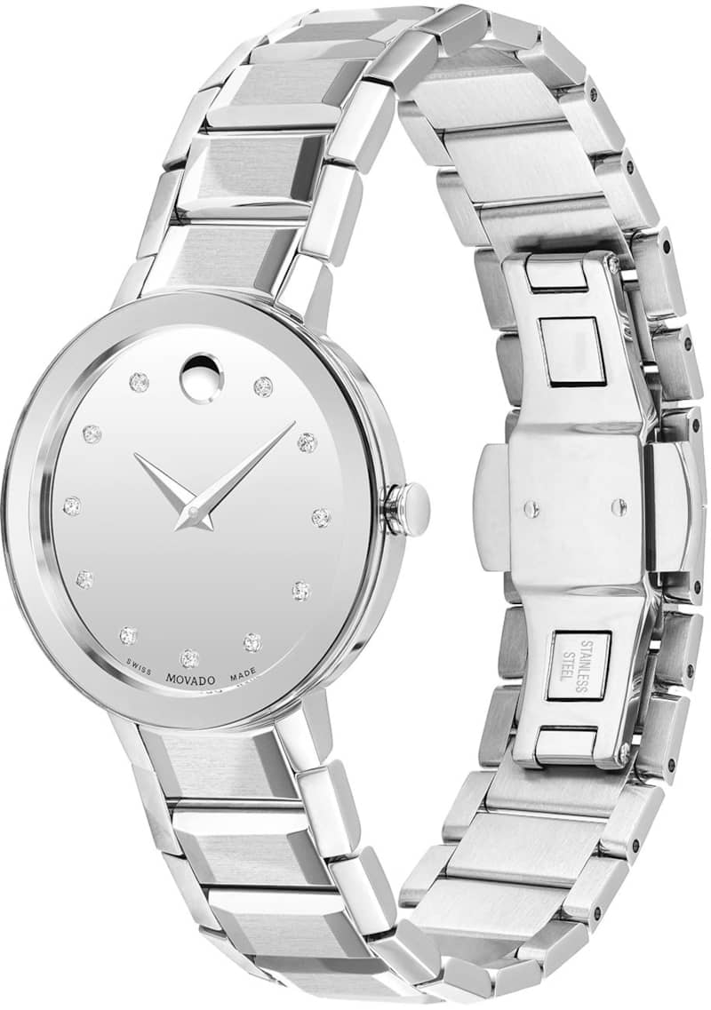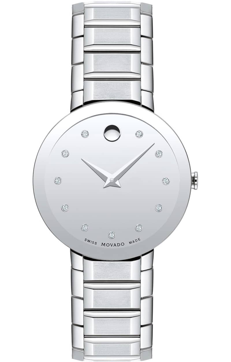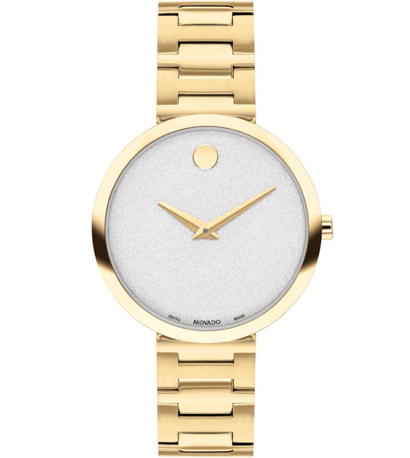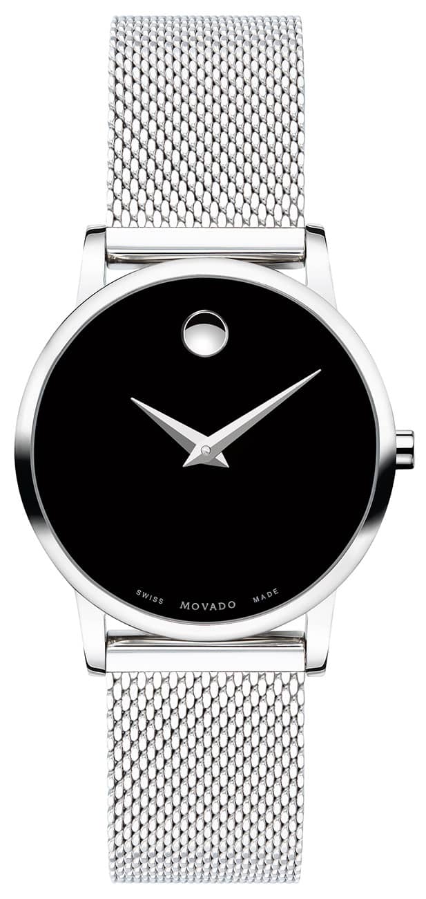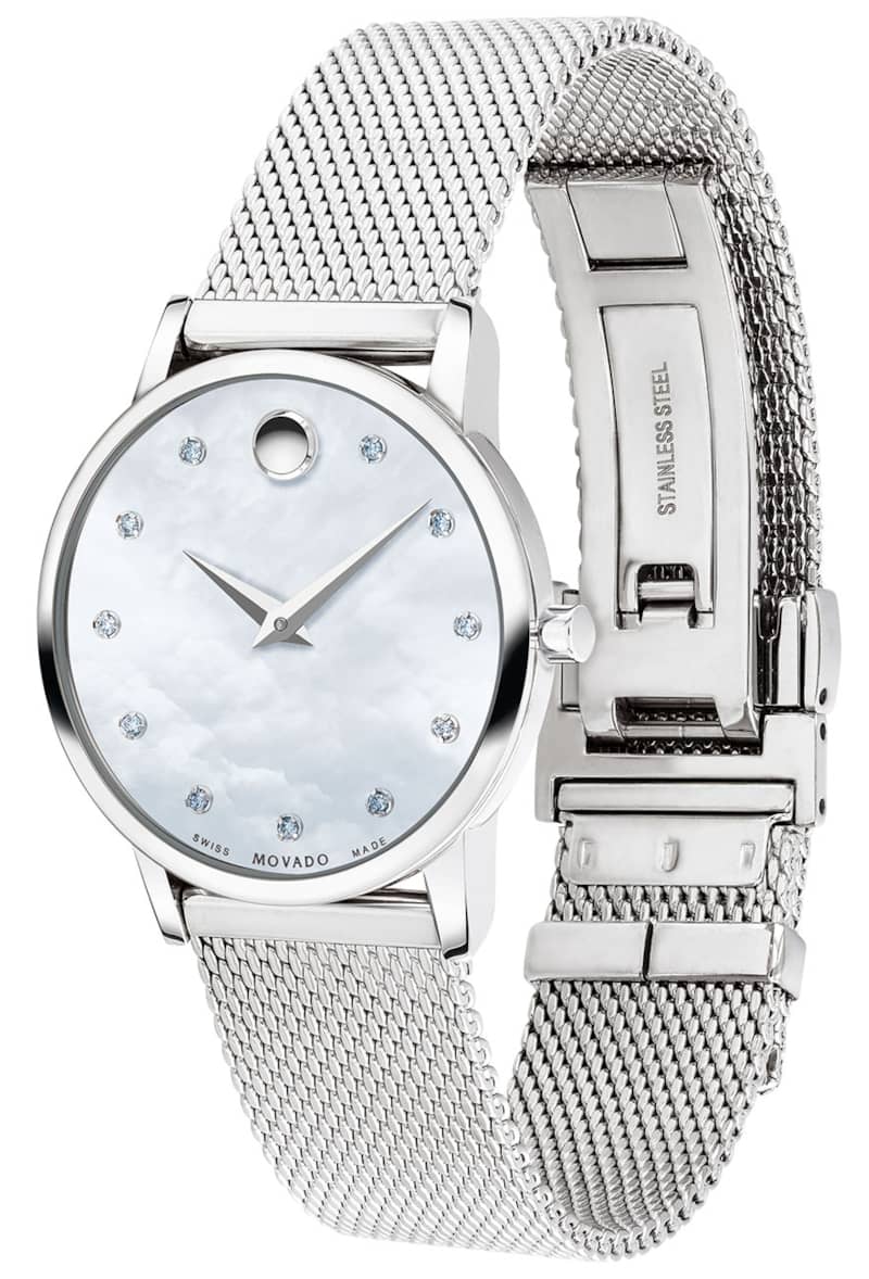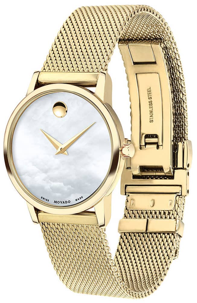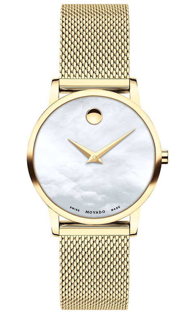 Movado Museum Classic White MOP w/ Diamonds Dial Rose Gold-Tone PVD Mesh Bracelet Watch, 28mm