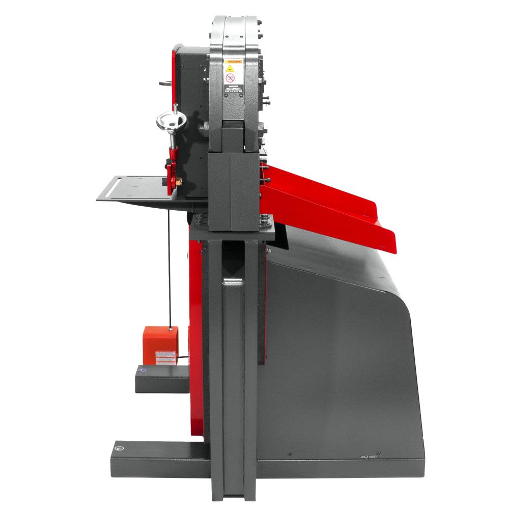 if you’re looking for versatility and power, the Edwards 100 ton jaws ironworker is perfect for your shop. Standard features include a punch assembly, a 14 In. wide flat bar shear, a high capacity angle shear and a universal open tooling station designed for optional tooling accessories allowing you to select the perfect tool for your needs. The optional hydraulic accessory pack allows your ironworker to act as a power source to our expanding line of innovative hydraulic accessory tools, such as the 10 ton tube/pipe bender, 20 ton shop press and 40 ton shop press.