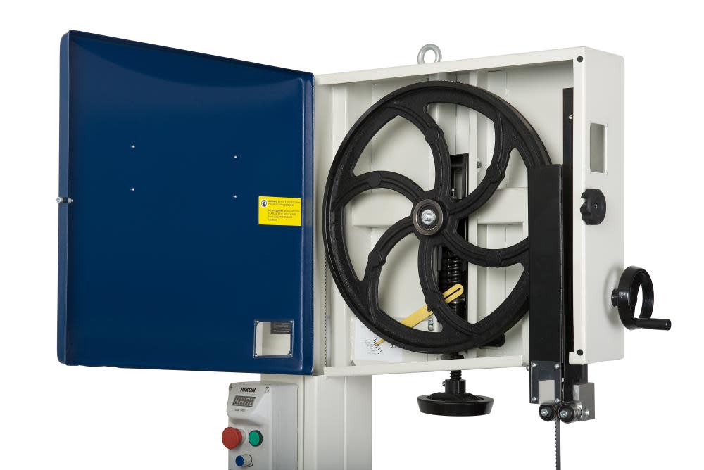 14 In. Handsaw #10-353 features an impressive 3 HP motor and the largest cutting capacity in this model range, which makes this saw ideal for use in re-sawing lumber, as well has handling normal shop work. Designed with extra user friendly and safety features – patent pending tool-less blade guide system, quick-adjust fence system and quick-lock trunnion system for fast table angle setting, plus, a keyed power switch (great for unauthorized use & security), emergency off foot switch pedal, door activated emergency stop micro switch, conveniently located blade tension release lever with the tensioning wheel under the top frame, large work table with two miter gauge ‘T’ slots, hinged blade guard, and clear sight windows for easier viewing when adjusting the blades. Includes rip fence with re-saw bar. Requires a 220 V 3-wire electrical plug to match your electrical receptacle.