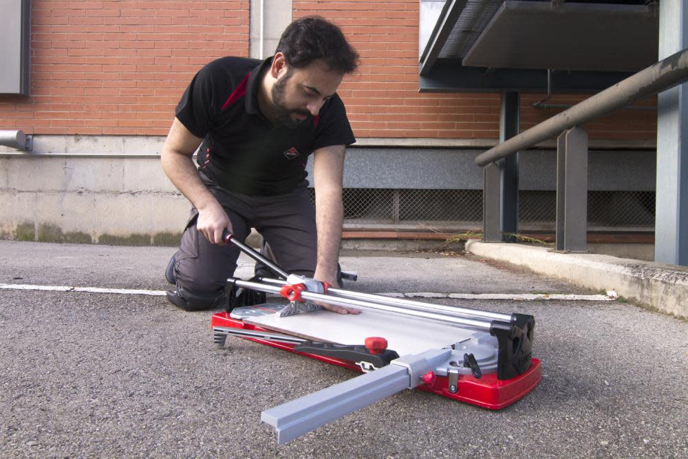 TR-700-S MAGNET is the ideal machine to cut porcelain tiles. Features 1764 lbs of breaking power and swivel square. This model will do a 28 In. straight cut & 20 In. diagonal cut. Multi point breaker for a perfect point to point diagonal cut. The magnet system locks the breaker, making it easier to score the ceramic tile and with better visibility. On the other hand, by simply moving the lever upwards, we set the breaker which will allow us to apply the maximum power and obtain a clean and precise cut.
