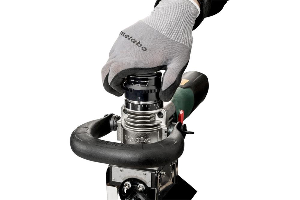 This metal beveling tool for chamfer heights up to 10 mm for weld seam preparation. It features a patented, tool free setting of the cutting depth in 0.1 In. steps, stop points for short setting times, and protection against unintentional adjustment of the cutting depth when working.