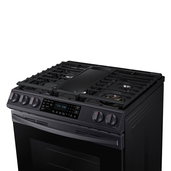 Samsung 6.0 cu. ft. Front Control Slide-in Gas Range with Air Fry & Wi-Fi in Black Stainless Steel