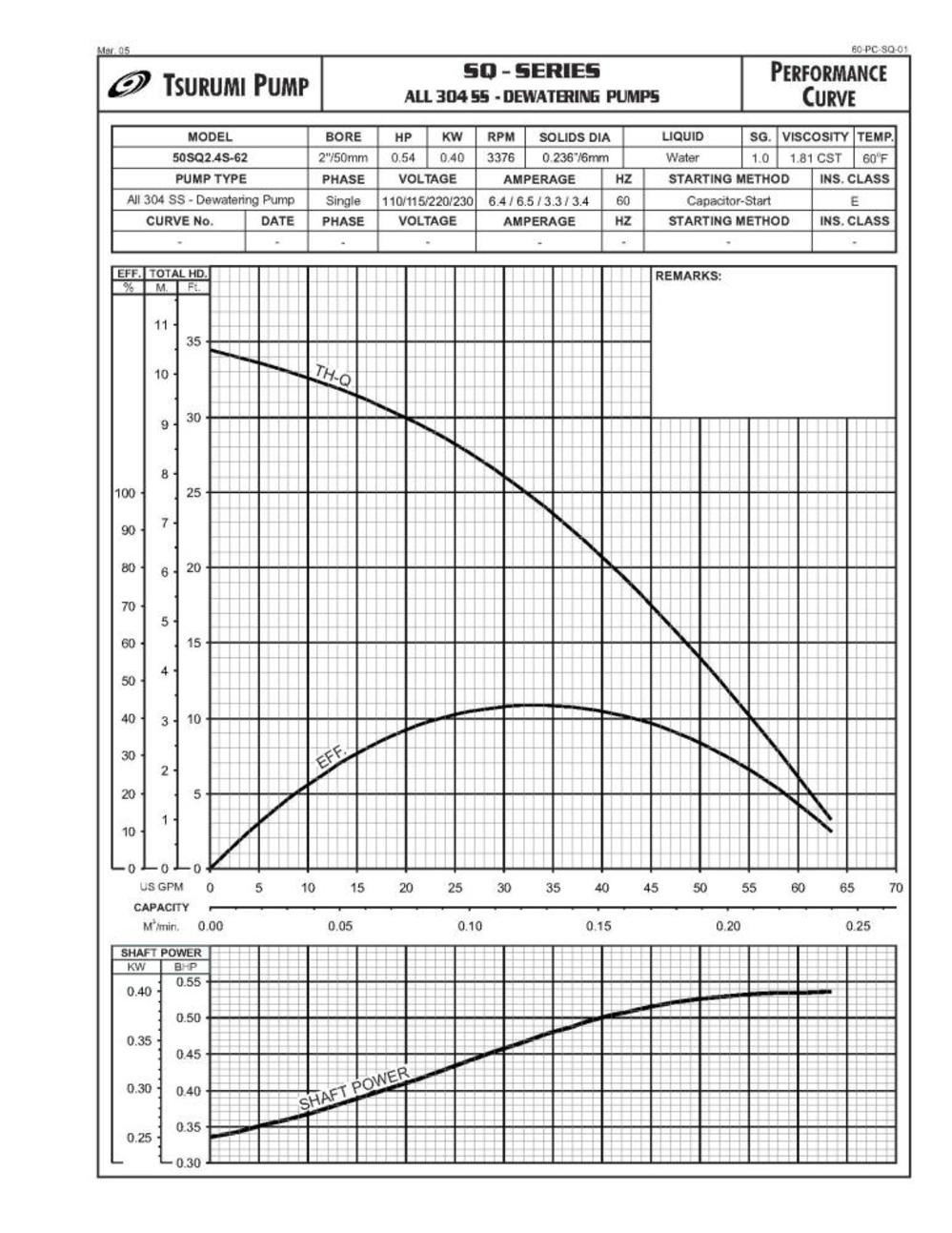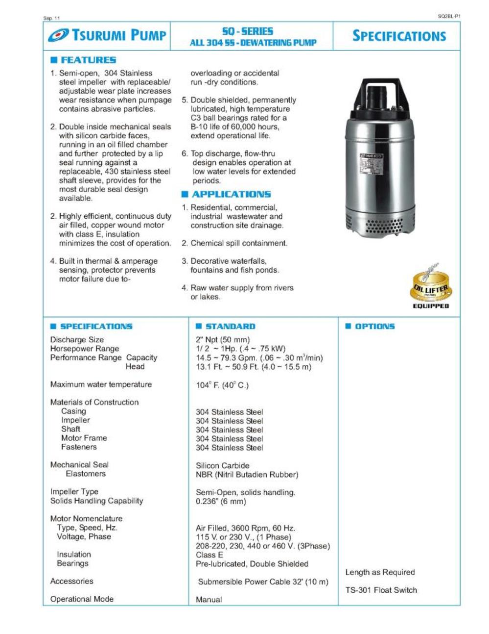 Tsurumi 50SQ2.4S is a submersible portable stainless steel corrosion-resistant pump designed for handling corrosive liquids.