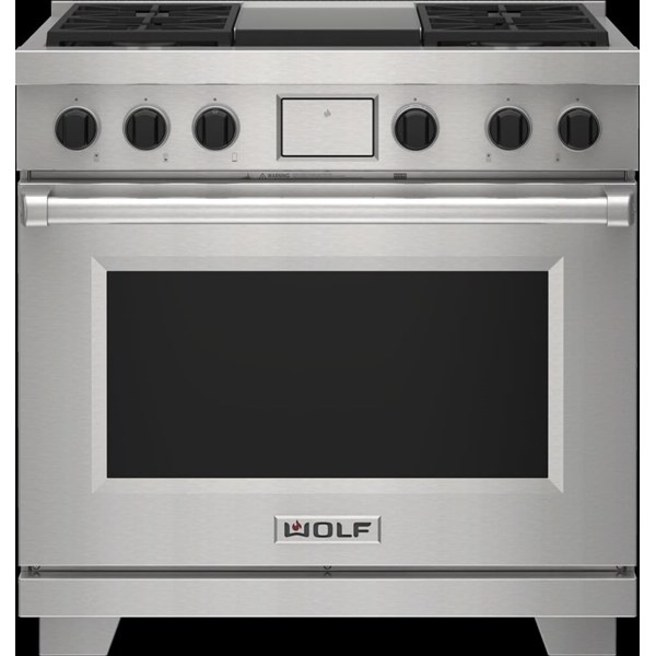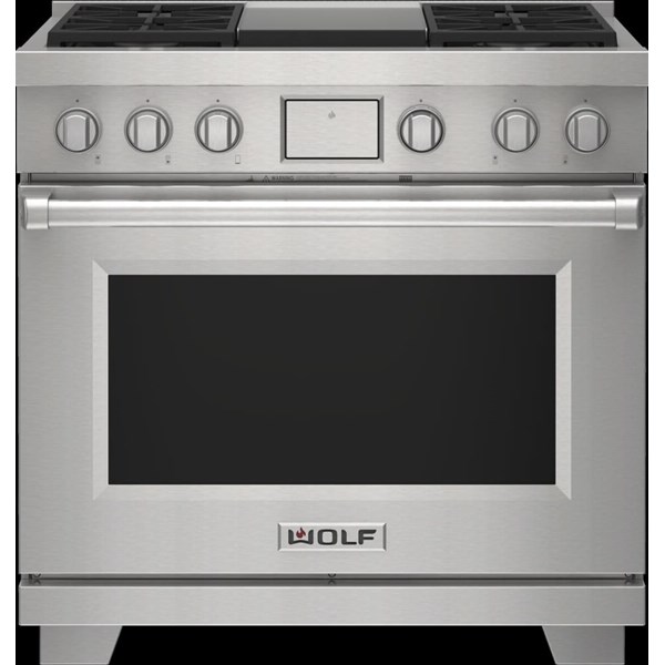 Wolf36″ Dual Fuel Range – 4 Burners and Infrared Griddle (LP)