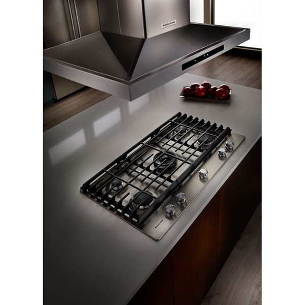 This 42-inch ventilation hood is ideal over an island cooktop or range. You’ll get a powerful motor to handle your most aromatic ingredients with a Whisper Quiet System that operates at levels that allow you to carry on a conversation. Plus, with auto speed sensing, the fan speed will adjust up or down depending on the level of power required.