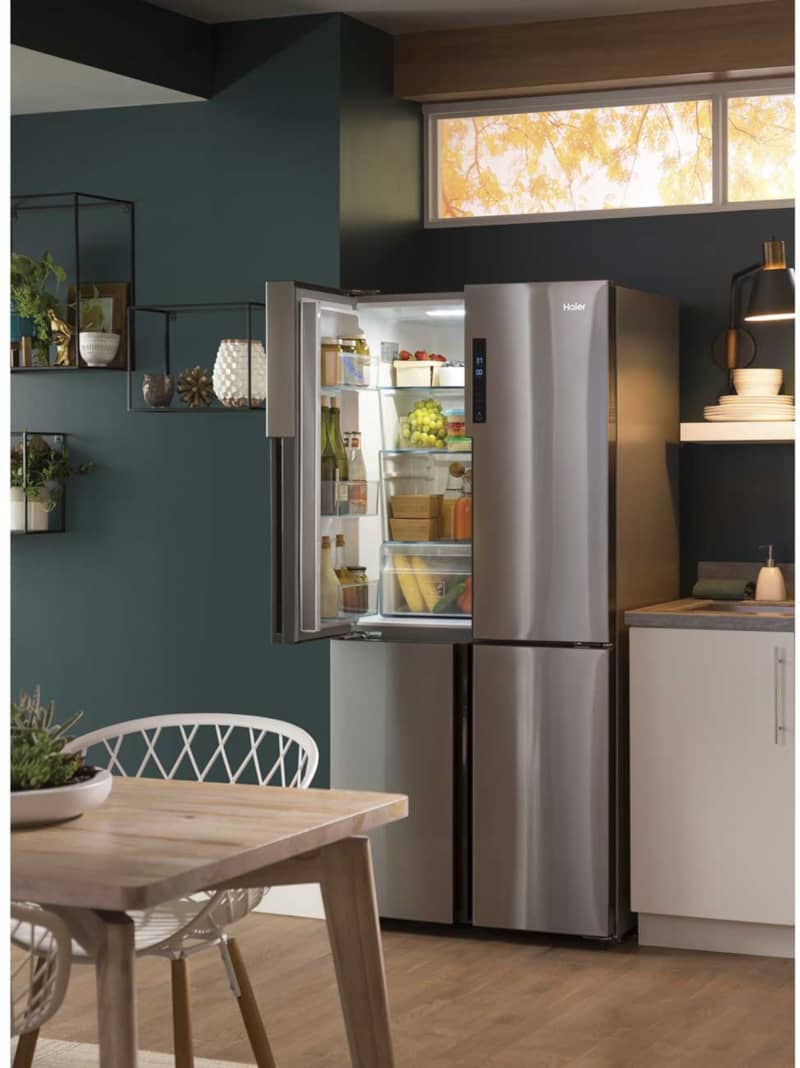 Haier 16.4 Cu. Ft. Fingerprint Resistant Stainless Steel Quad Door Refrigerator
