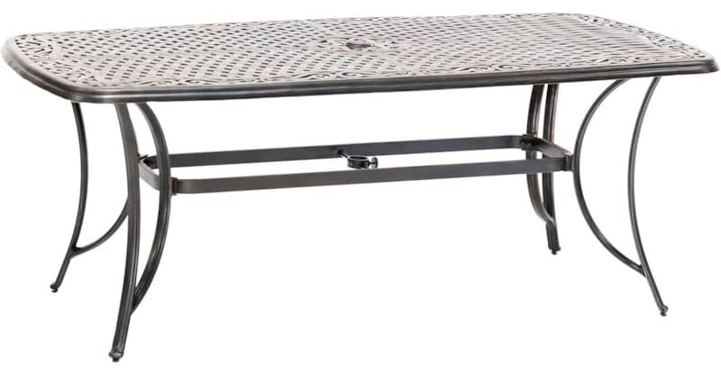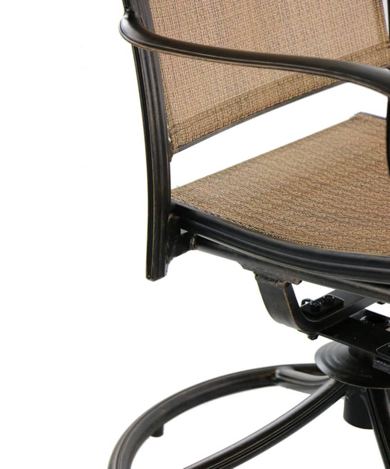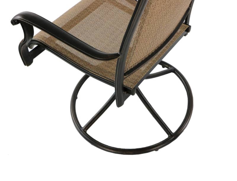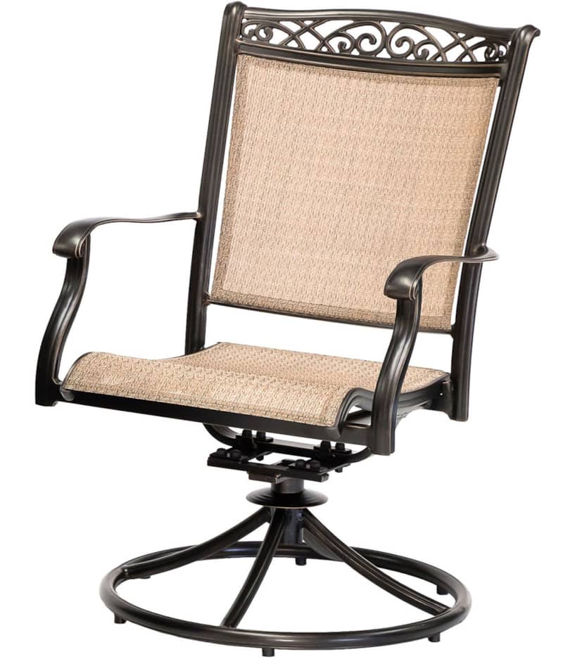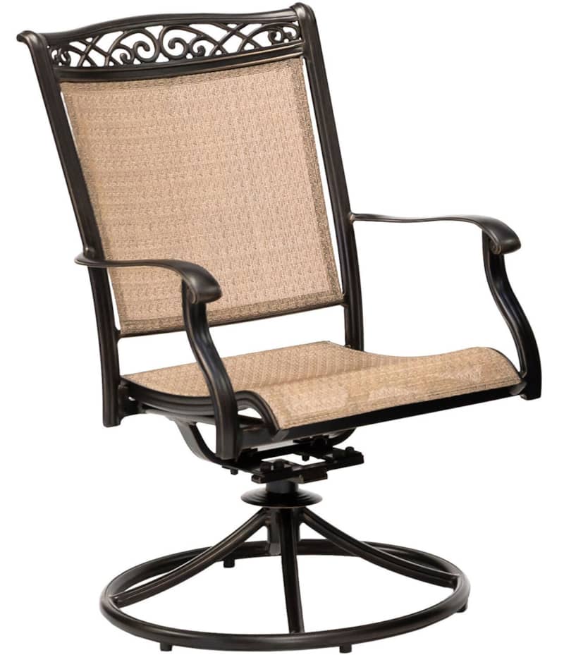 Hanover Fontana 7-Piece Outdoor Dining Set In Tan/Bronze With 6 Sling Swivel Rockers & 38×72″ Cast Table