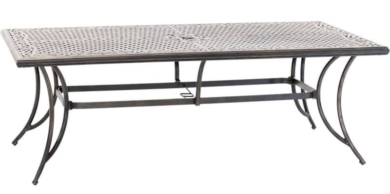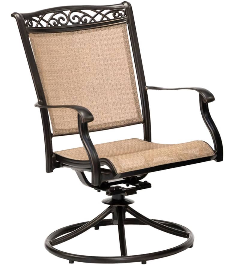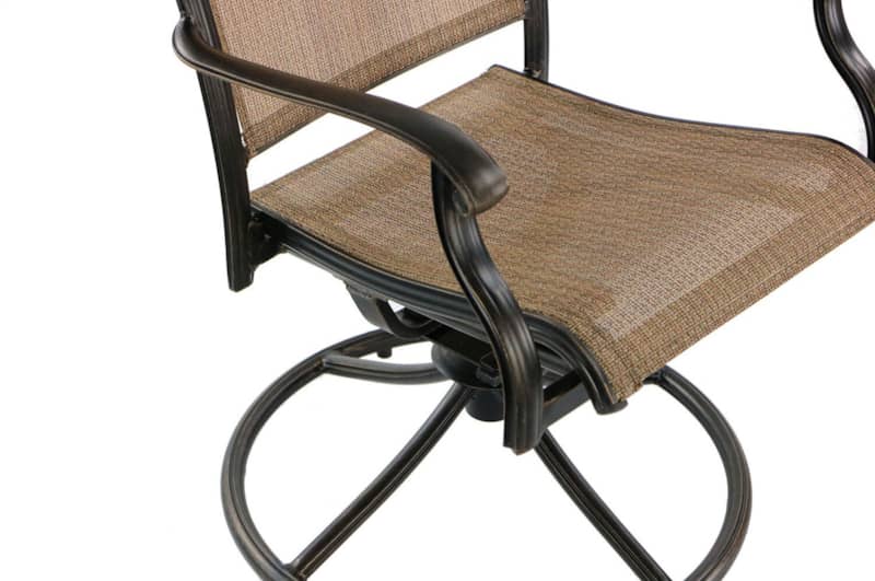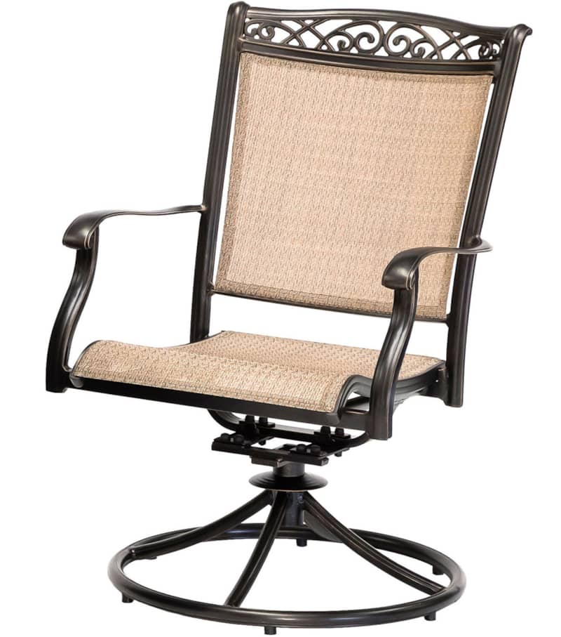 Hanover Fontana 9-Piece Outdoor Dining Set In Tan/Bronze With 8 Sling Swivel Rockers & 42×84″ Cast Table