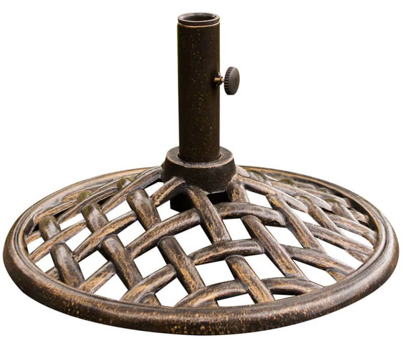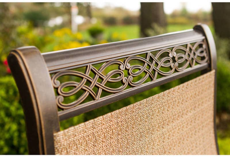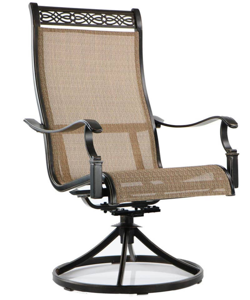 Hanover Manor 7-Piece Outdoor Dining Set With Six Swivel Rockers, A Cast-Top Dining Table, A 9 Ft. Umbrella And Umbrella Stand