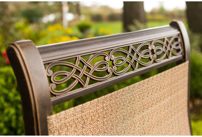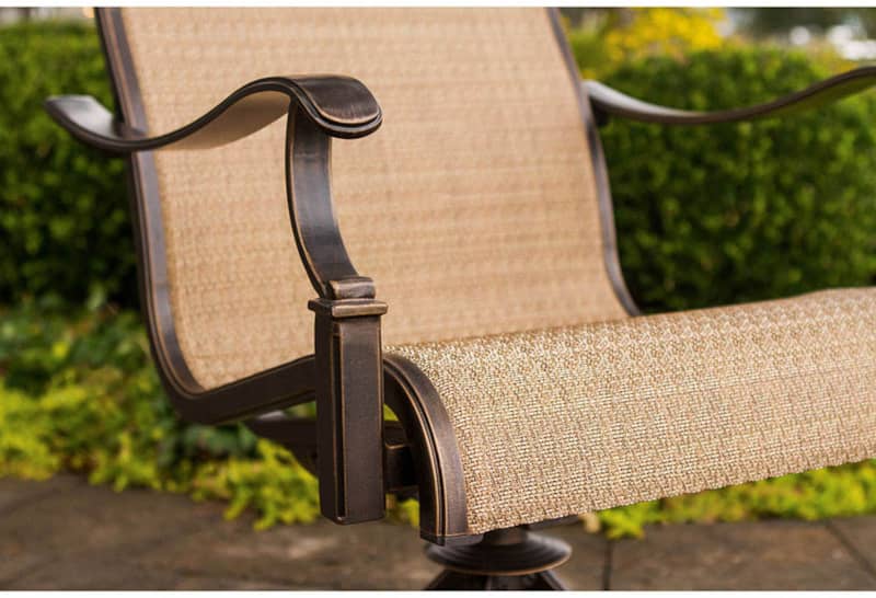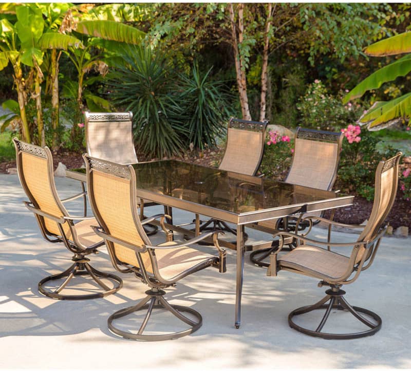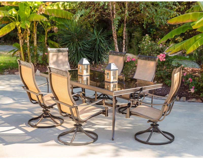 Hanover Monaco 7-Piece Dining Set With Six Sling-Back Swivel Rockers And One Extra Large Glass-Top Dining Table