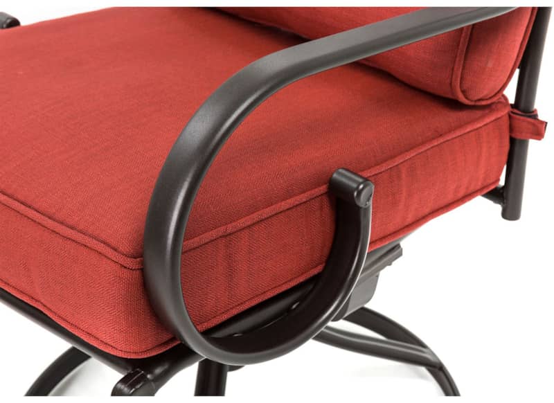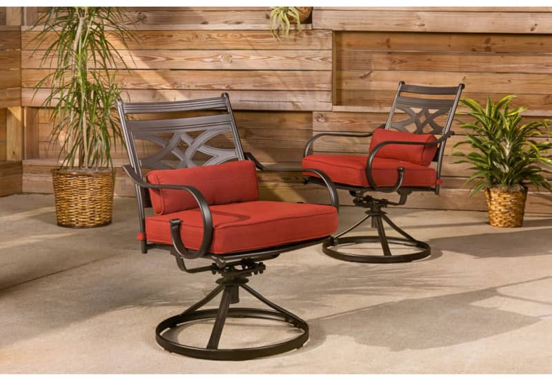 Hanover Montclair 5-Piece Outdoor Dining Set In Chili Red/Brown With 4 Swivel Rockers, 40″ Square Dining Table