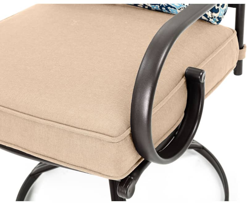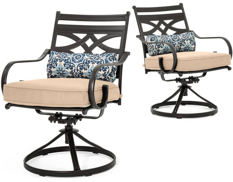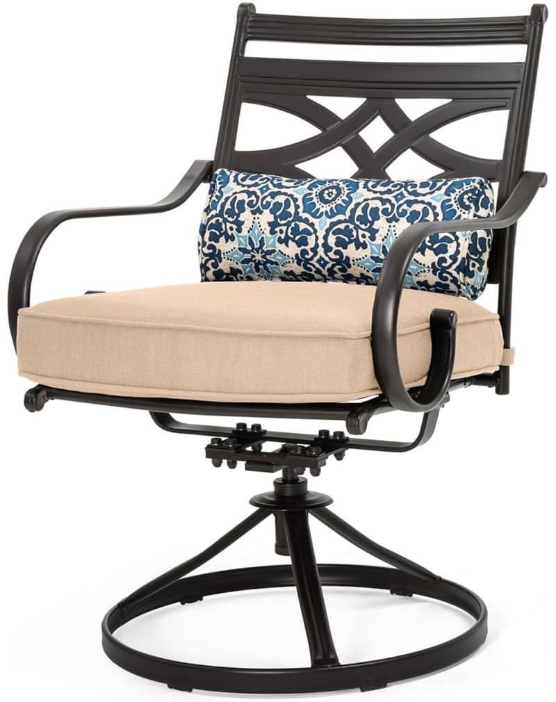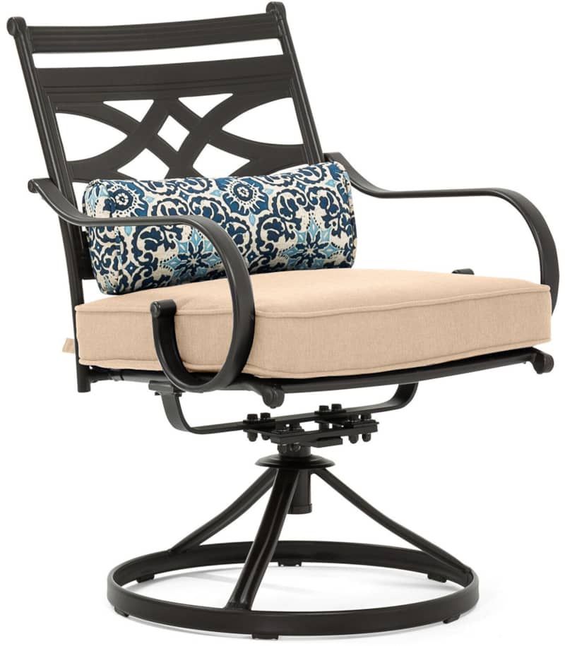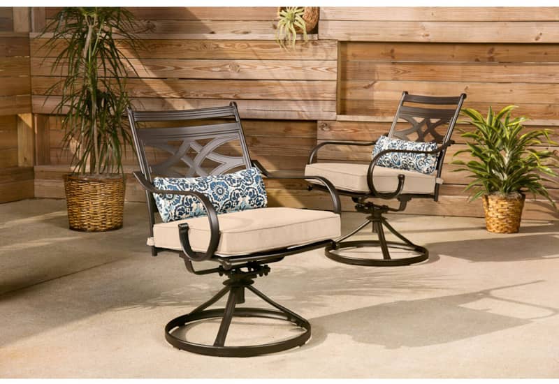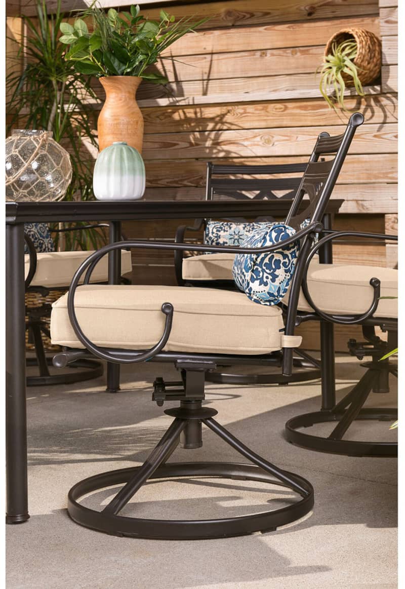 Hanover Montclair 5-Piece Outdoor Dining Set In Tan/Brown With 4 Swivel Rockers, 40″ Square Dining Table
