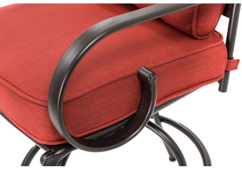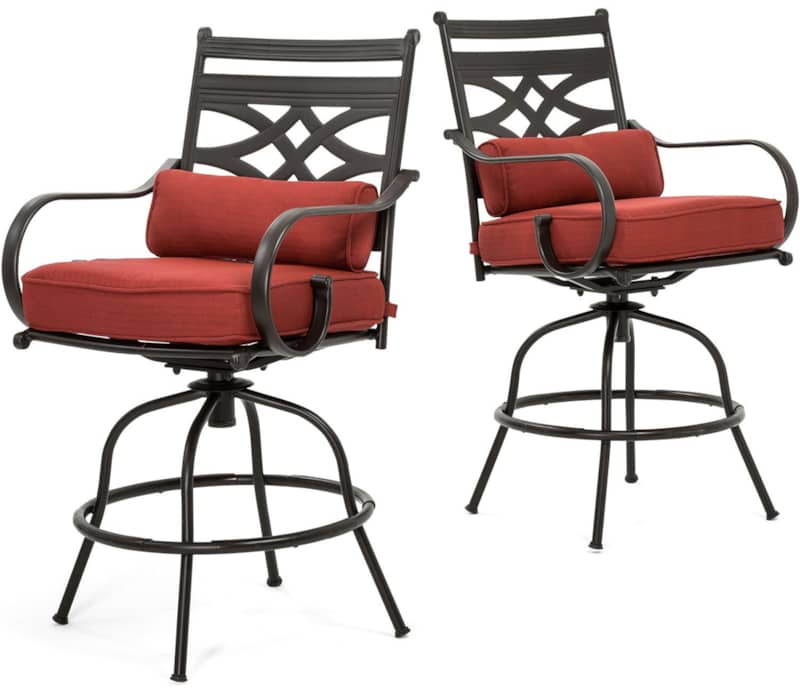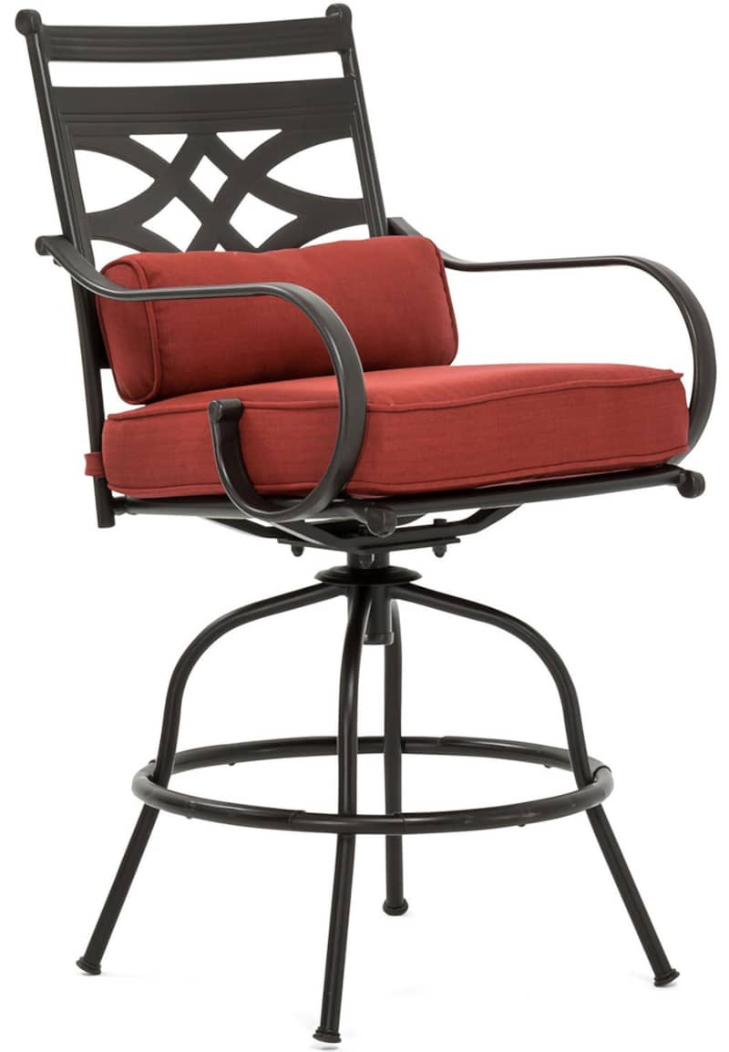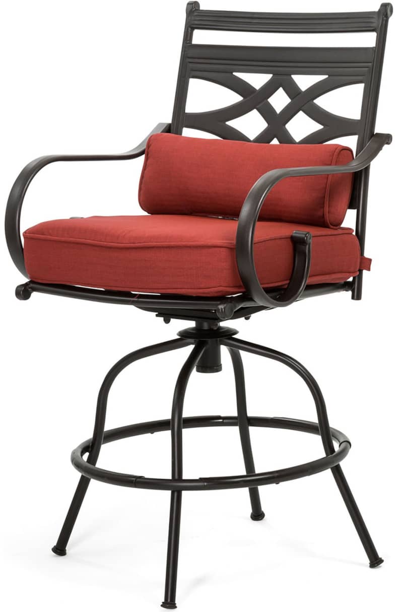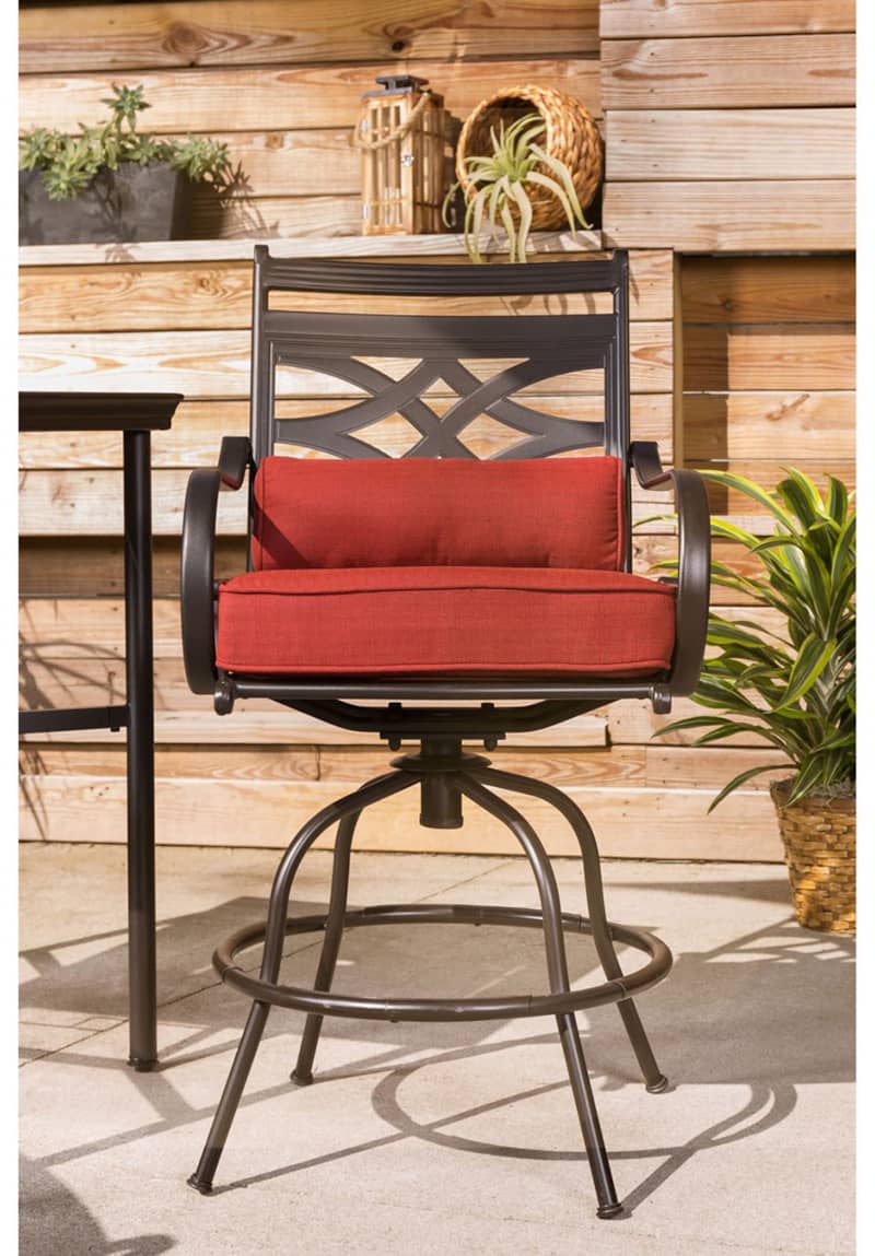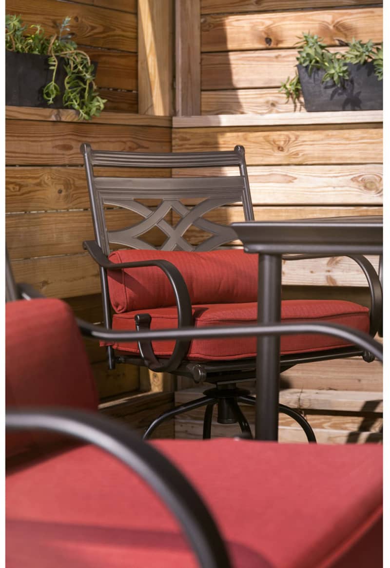 Hanover Montclair 5-Piece Outdoor High Dining Set In Chili Red/Brown With 4 Swivel Chairs, 33″ Square High Dining Table