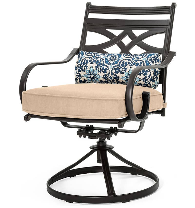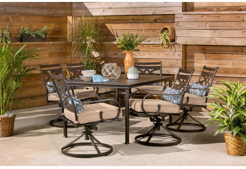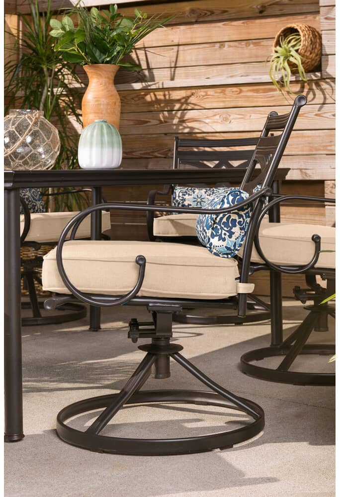Hanover Montclair 7-Piece Dining Set In Country Cork With 6 Swivel Rockers And A 40″ x 67″ Dining Table