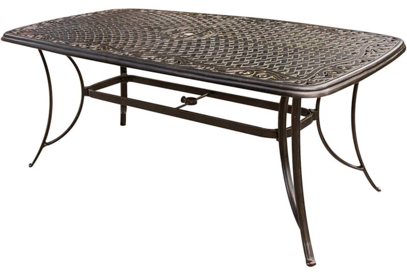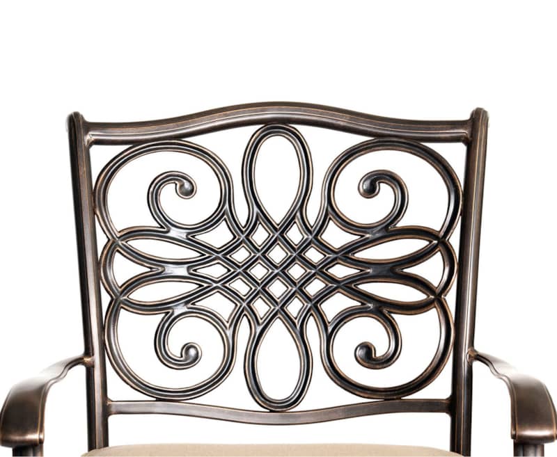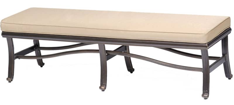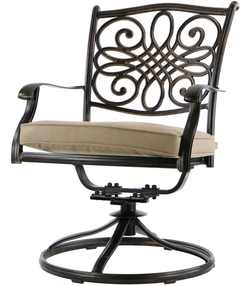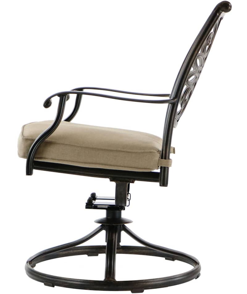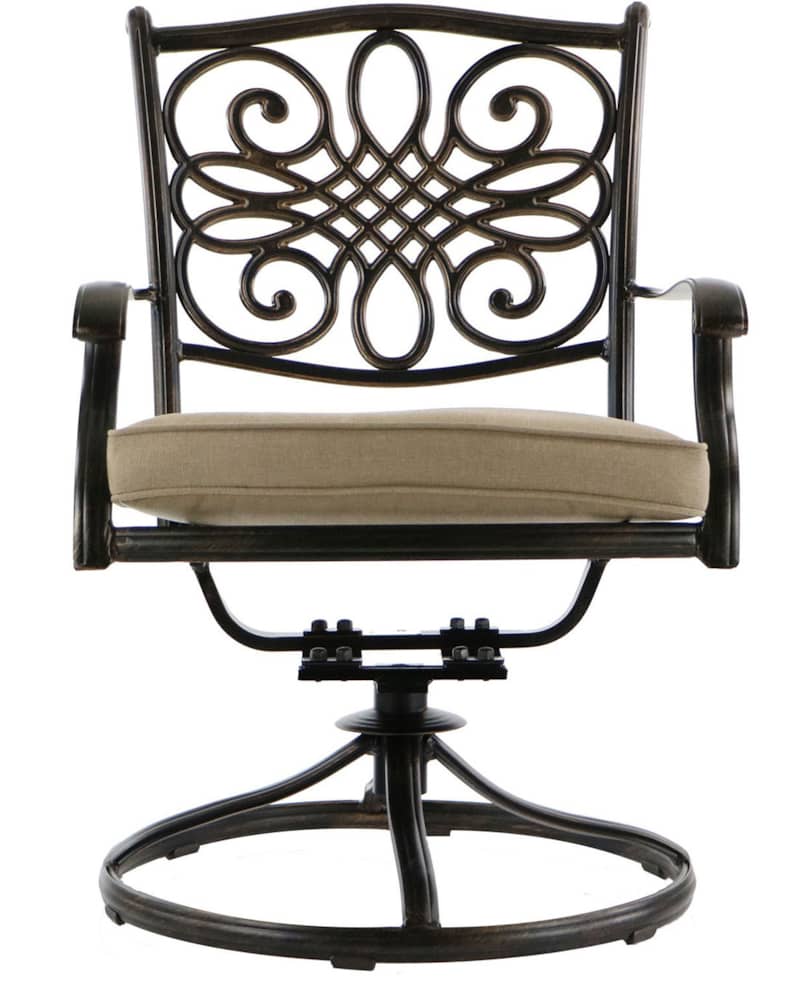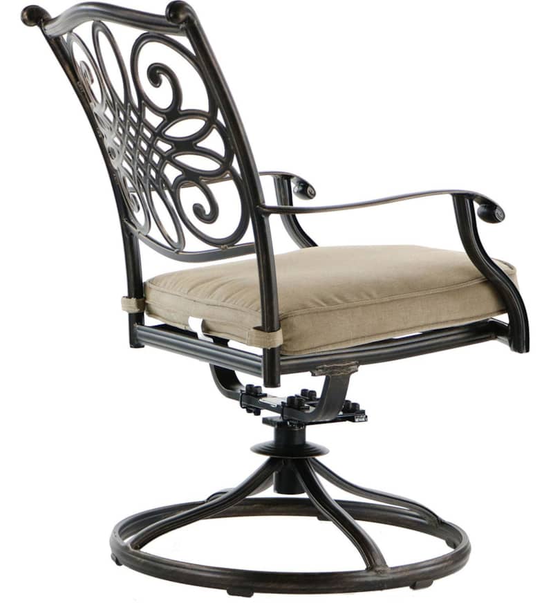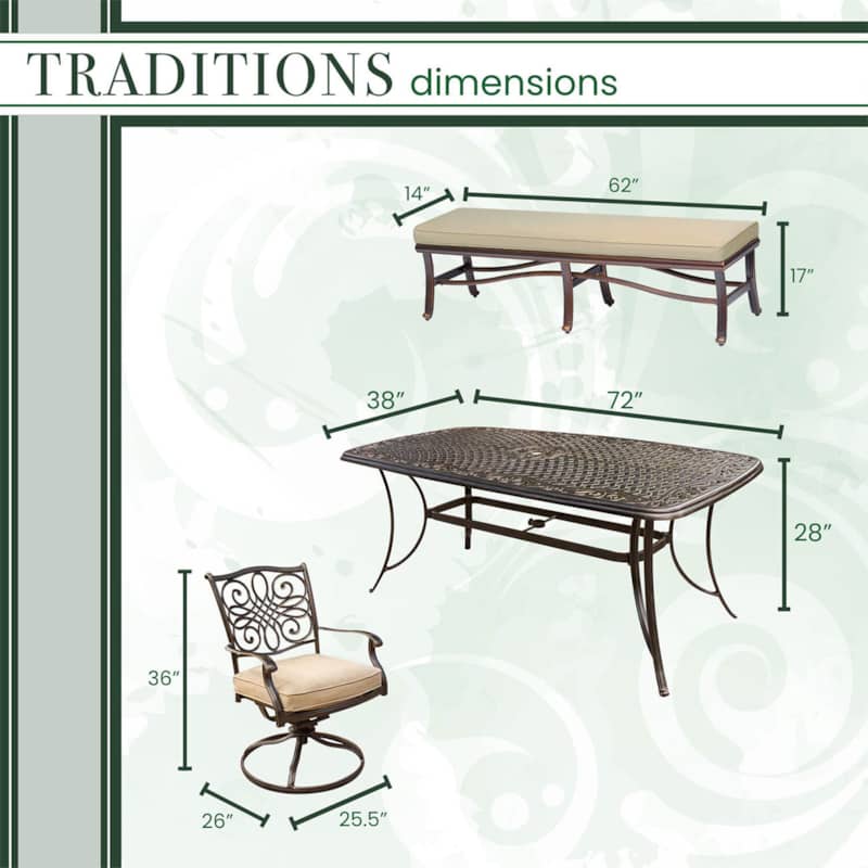 Hanover Traditions 6-Piece Outdoor Dining Set In Tan/Cast With 4 Swivel Rockers, Backless Bench, 38×72″ Cast Table
