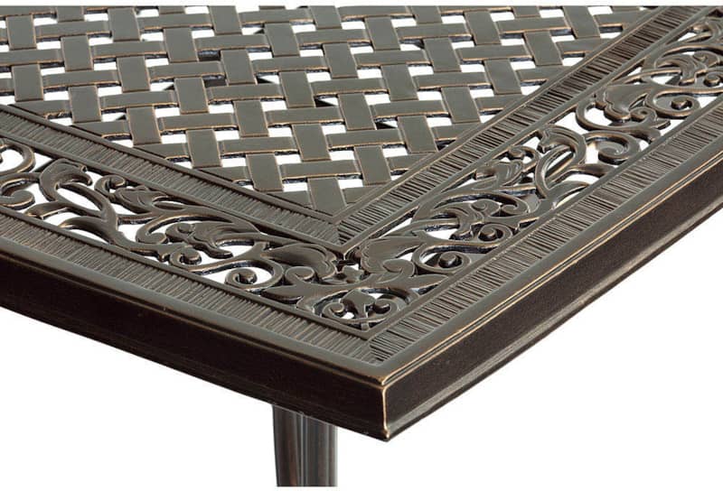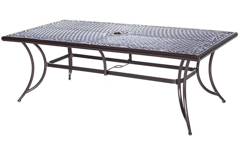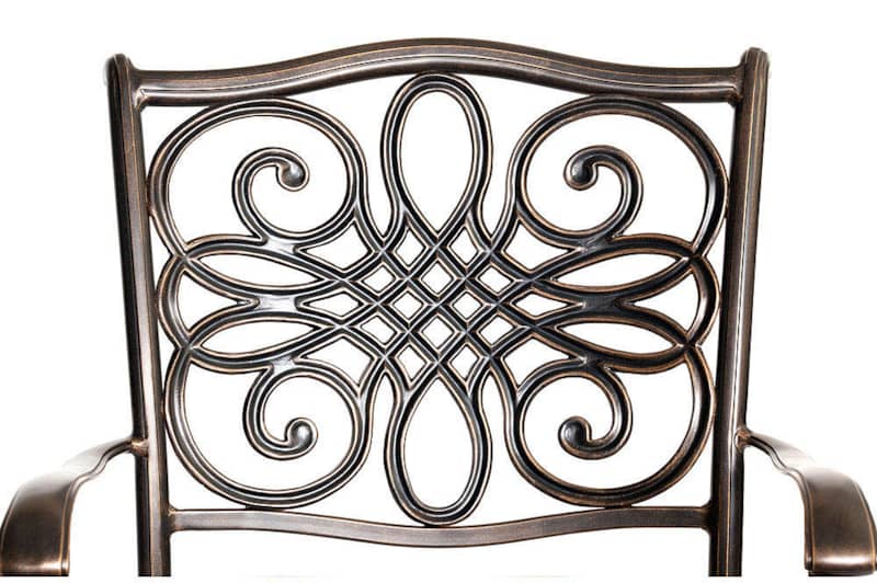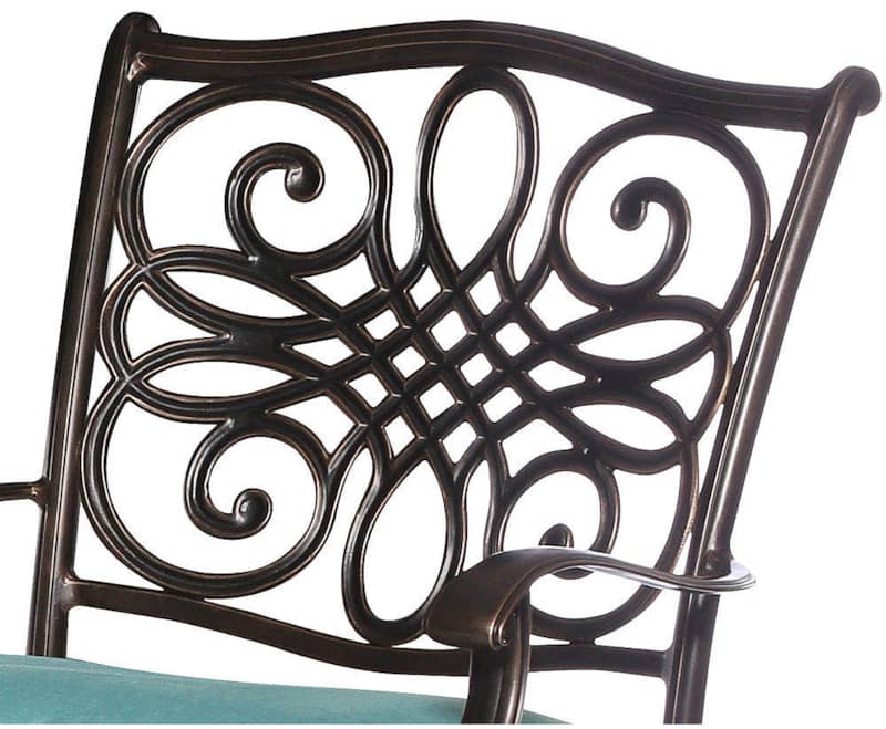 Hanover Traditions 9-Piece Dining Patio Set – TRADDN9PC-BLUTake your meal outdoors with the Traditions 9-Piece Dining Set from Hanover Outdoor. This set includes eight stationary dining chairs, eight seat cushions, and one large 42 x 84 in. cast-top dining table. The oversized dining table offers ample room for food and beverages as well as a generous amount space for seating guests. The chairs and table are durably constructed with heavy-duty aluminum frames and elegant cast details. Thick foam cushions are also included for each seat, ensuring comfort throughout the meal. They are treated to resist water, stains, and UV fading while maintaining their original shape. Designed for many years of enjoyment, this 9-Piece Dining Set will provide a natural alternative to entertaining indoors and will accommodate your family and guests with the best dining under the sun. Features