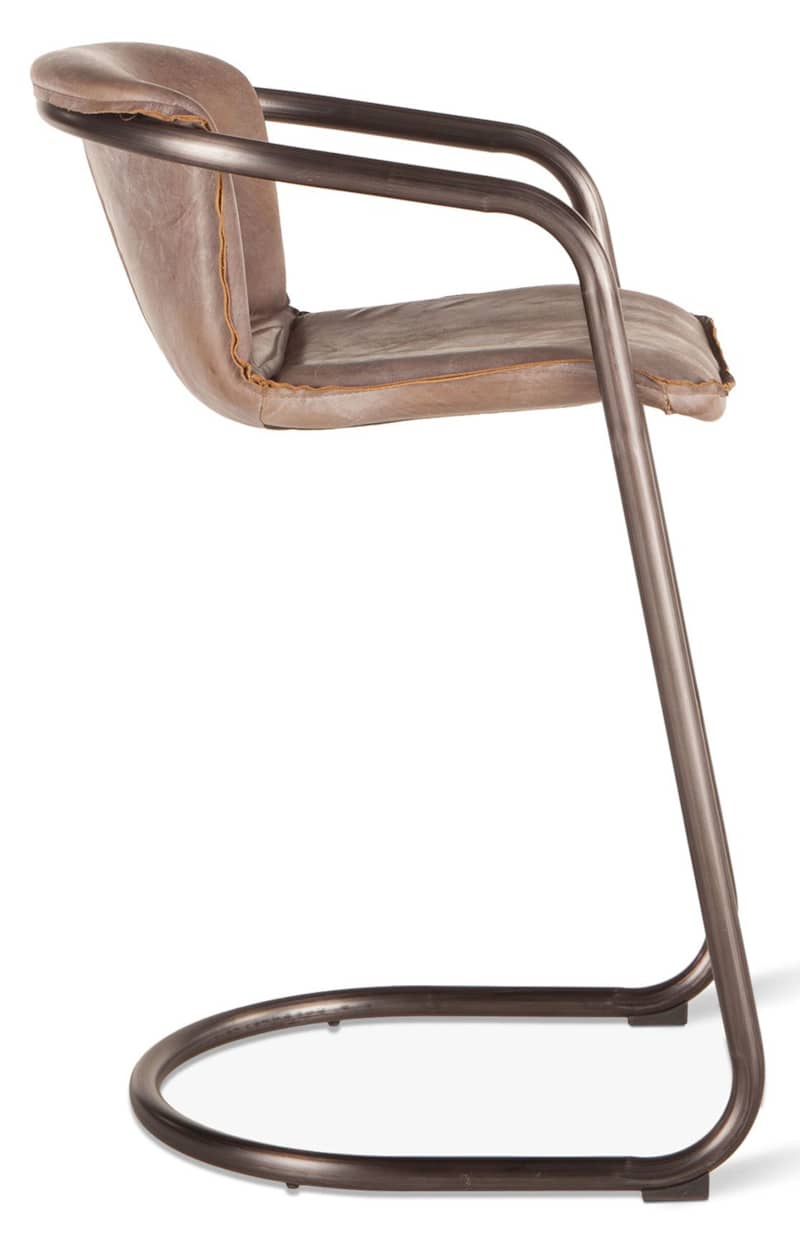 Home Trends & Design GPF-BC22JB Portofino Leather Bar Chair In Jet Brown And Brushed NickelOur Portofino collection of retro-inspired chairs and sofas will add vintage charm to your dining room, kitchen, or living room. The distressed jet brown leather seat has a soft feel for ultimate comfort, while the exposed trim provides vintage flair. The U-shaped steel frame and legs in rustic, brushed gunmetal finish includes levelers with caps to protect all types of flooring. Combine with your favorite bar-height gathering table for a casual dining space or add a few to your eat-in bar for the perfect work space. This pre-assembled bar chair is ready-to-use and of the finest quality, and with its classic design and elegance, it will make an effortless addition to any home. Features
