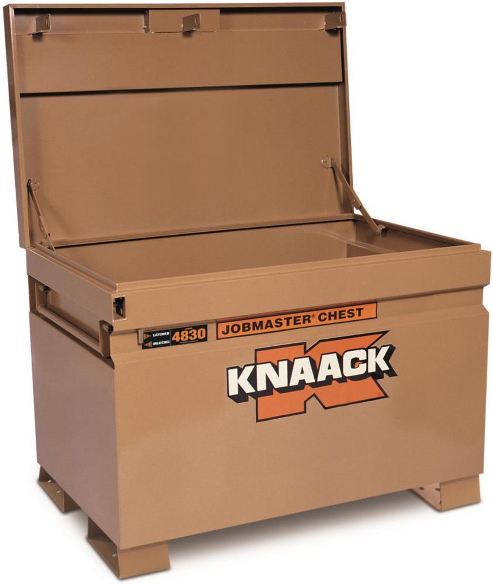 The KNAACK® JOBMASTER® Chest 25.25 cubic feet is an excellent choice for professionals and amateurs who want to quickly transport their items from location to location and keep them safe. Its WATCHMAN® IV Lock System along with the three-point latch and the full-length welded piano hinge helps to prevent theft. Measuring 30 inches wide, 48 inches long and 34 1/4 inches tall (61 1/4 inches tall when open), this portable storage chest has a 25.25 cubic foot capacity, providing plenty of space. The four-way skids make transporting the chest easy and convenient, and it uses the model 21 accessory tray. Access to power cords is made easier thanks to the weatherproof Power Pass® Electrical Pass-Thru grommet. The baked powder-coat finish prevents the Knaack storage chest from accumulating wear and tear.