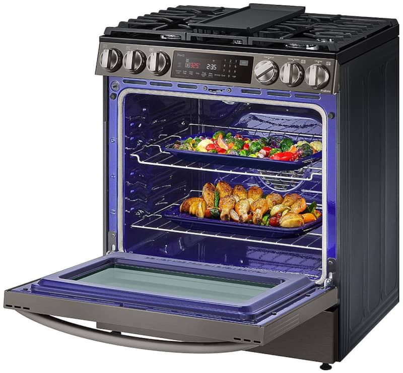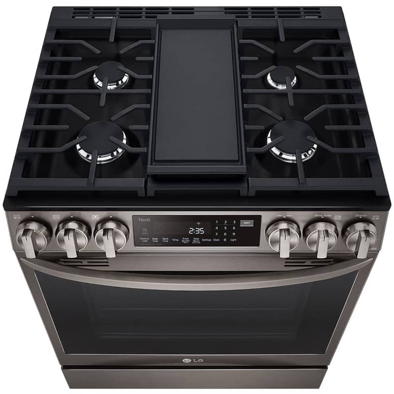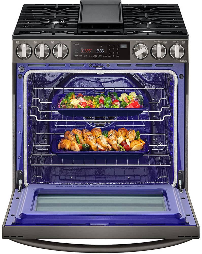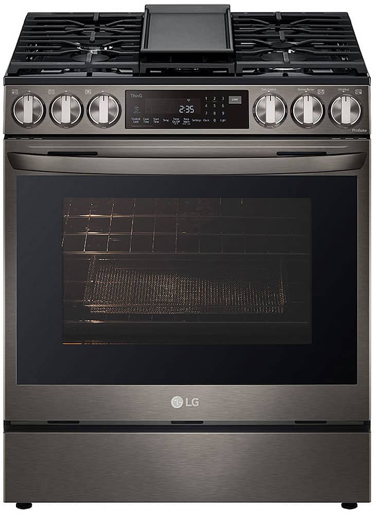 LG LSGL6335D 6.3 Cu. Ft. PrintProof Black Stainless Steel Smart Wi-Fi Enabled ProBake Convection InstaView Gas Slide-In Range With Air FryBuilt-in Air Fry plus ProBake Convection® make this InstaView® slide-in range ready for whatever’s on the menu Features Multifunctional Cooking