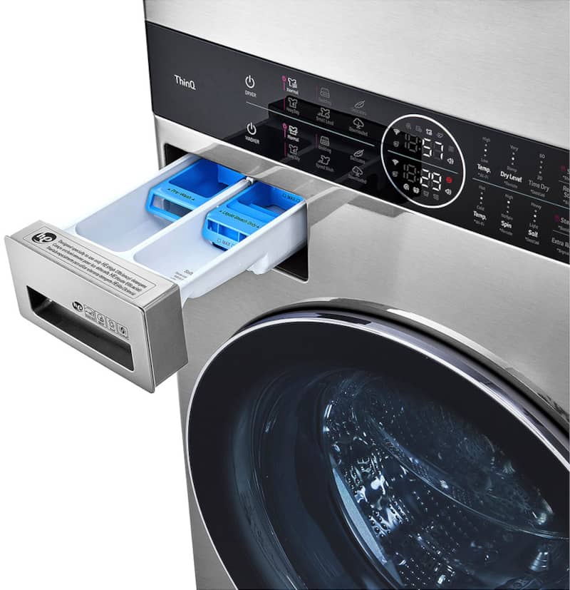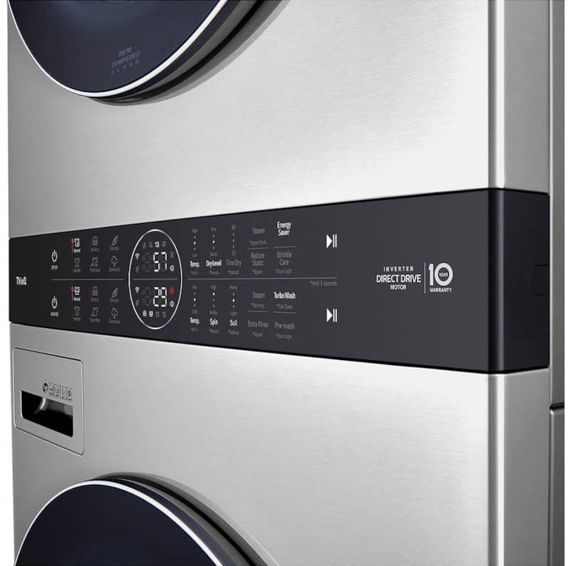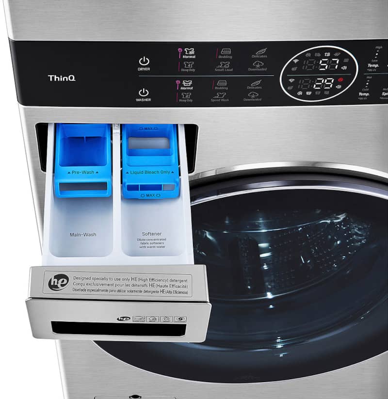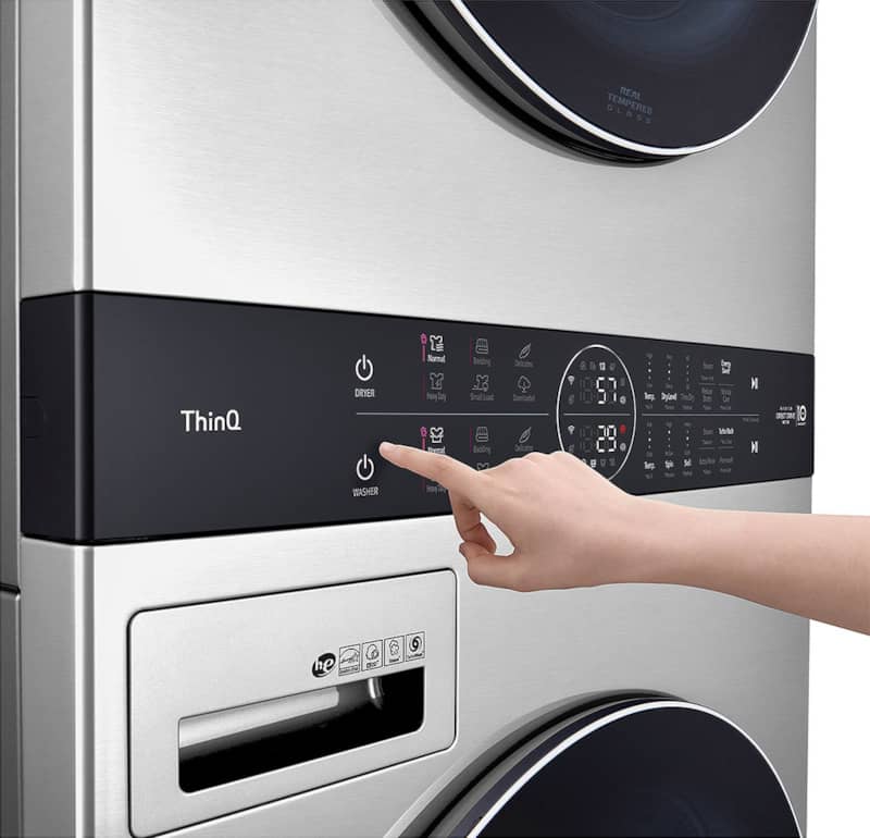 LG Studio WSGX201HNA 27″ Noble Steel WashTower With Center Control Ultra Large Capacity 5 Cu. Ft. Washer And 7.4 Cu. Ft. Gas Dryer ComboFeatures