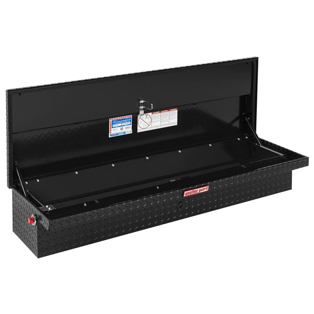 Lo-side boxes mount over the bed rails of your truck and keep critical tools and parts at your fingertips. The model 179-5-01 aluminum lo-side box features a diamond plate pattern with black Armor-tuf® powder coat finish ensures years of dependability and has a storage capacity of 4.3 Cu. Ft. easy installation utilizes mounting brackets that do not require drilling into the rails.