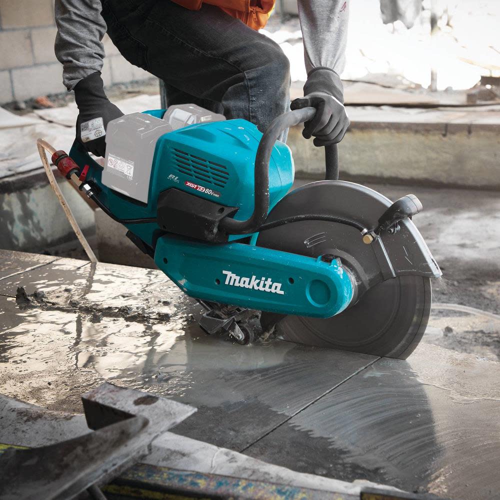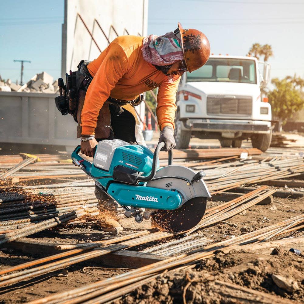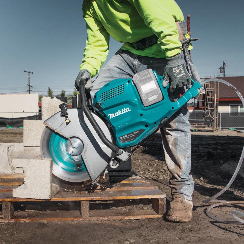 The 80V max (40V max X2) XGT® Brushless 14″ Power Cutter with AFT® and Electric Brake (GEC01) has the power to cut through various masonry and metal materials with all the benefits and convenience of cordless operation. The 14” wheel diameter allows for single pass cuts up to 5” deep in various masonry and metal materials. Model GEC01Z is “tool only”, batteries and charger are sold separately.