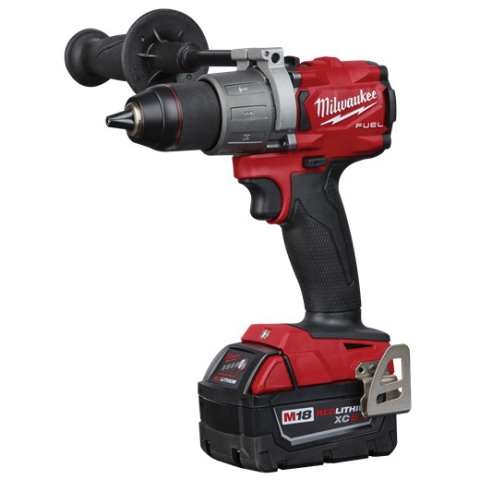 Our M18 FUEL™ 1/2 in hammer drill is the industry’s most powerful brushless battery powered drill, delivering up to 60% more power. Its cordless body is up to 1.5 shorter and up to two times faster under heavy load than other models. The all-metal ratcheting chuck is the best-in-class giving users increased bit grip strength and corrosion resistance. The POWERSTATE™ brushless motor was purposely built for the brushless drill to provide up to 60% more power than the competitive set. Built-in REDLINK PLUS™ intelligence ensures optimal tool performance and provides overload protection to prevent damage to the tool and battery during heavy applications while still maintaining compatibility across the entire M18™ system. The REDLITHIUM™ High Output™ HD 12 battery pack delivers more work per charge and more work over the life of the pack than competitors. In addition to the drill, this kit comes with two M18 REDLITHIUM XC 5.0 battery packs, one M18/M12 multi-voltage rapid charger, a side handle, belt clip, belt holder and a durable carrying case.