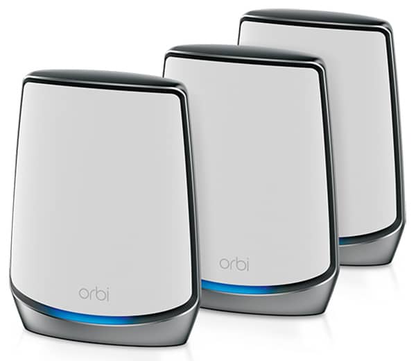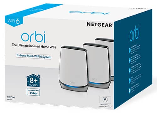 Netgear RBK853100NAS Orbi Tri-Band WiFi 6 Mesh System 3 PackOur most popular mesh WiFi solution. Cover up to 7,500 sq. ft. with blazing-fast, powerful WiFi with speeds of up to 6Gbps for over 100 devices. No more dead zones or buffering – just smooth, reliable whole home WiFi. Key Features