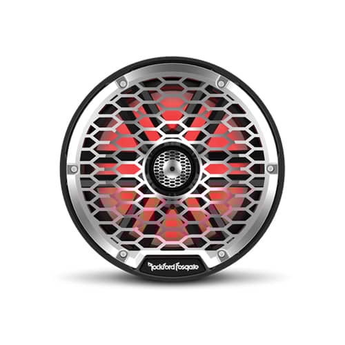 Rockford Fosgate M2-8B 8″ Color Optix Black Marine 2-Way Speakers (Pair)The M2-8 Color Optix™ 2-way 8” speakers deliver loud, clear, accurate sound, and light the way for your journey! The speakers connect with the Rockford Fosgate Color Optix™ Controller and RF Connect App, allowing you to customize your own color patterns. The Element Ready™ design and IPX6 certification makes them truly purpose-built for marine or motorsport applications where protection from damaging UV rays and water spray is essential. The M2 series of Element Ready™ speakers are designed to pair with the Rockford Fosgate Color Optix™ Controller and RF Connect App through its Deutsch™ and Amphenol™ connectors integrated into the speaker. This combined with their IP67 certification make these speakers Element Ready™ and truly purpose built for marine applications. To complete your sound experience, the M2 speakers are complimented by 10-inch Infinite Baffle subwoofers, also controlled through the Color Optix™ lighting system. Key Features
