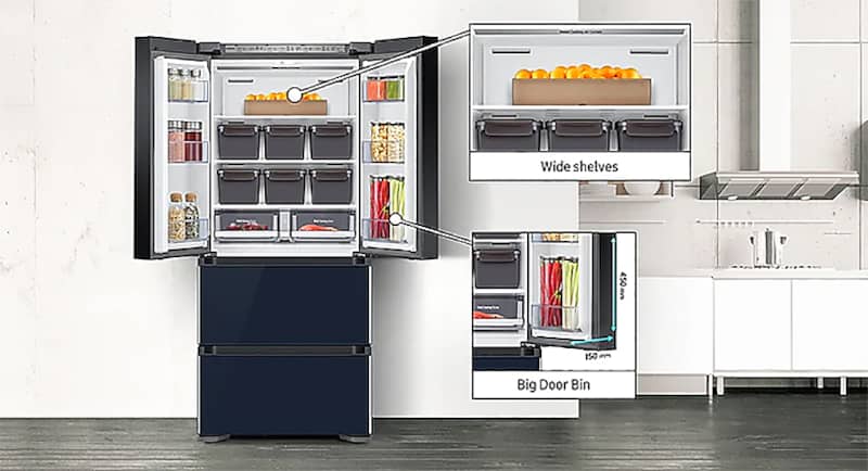 Samsung RQ48T94B277 17.3 Cu. Ft. White-Navy Glass Smart Kimchi & Specialty 4-Door French Door RefrigeratorFeatures