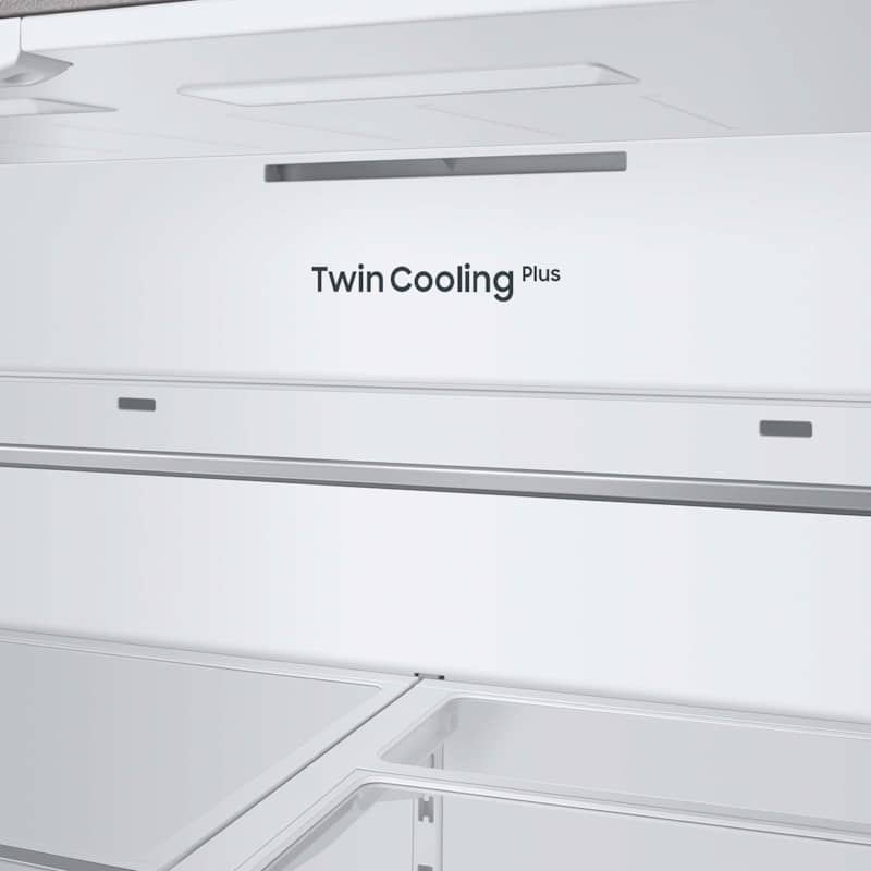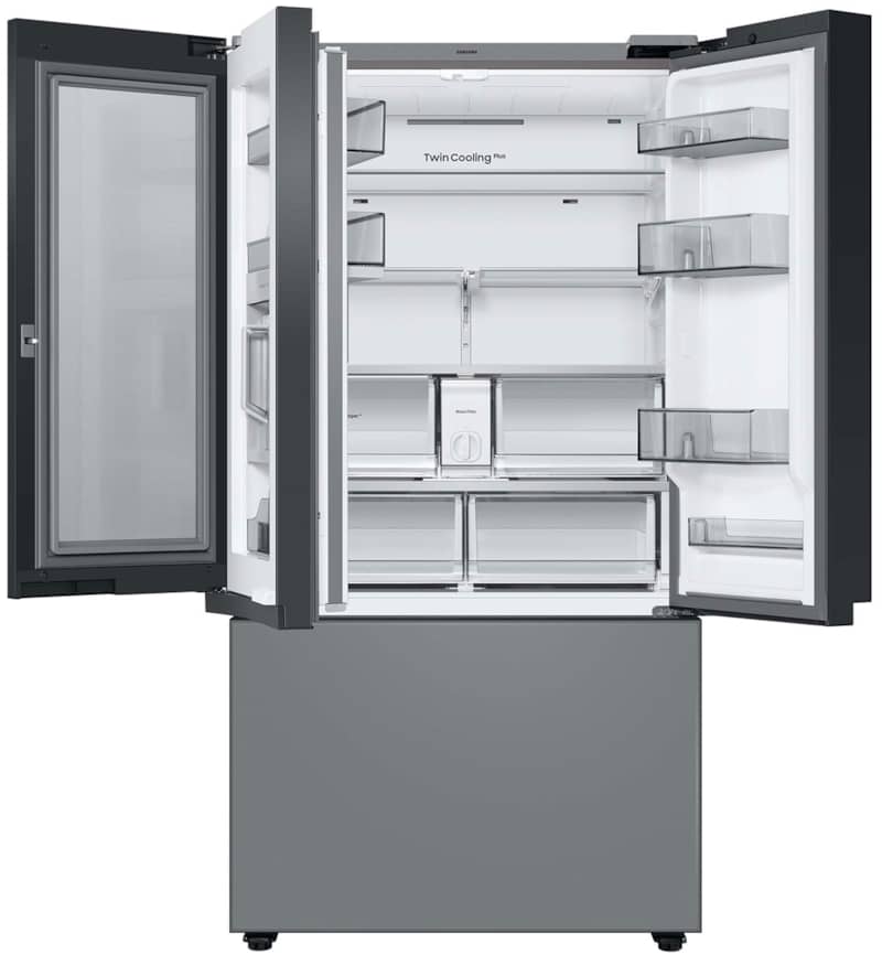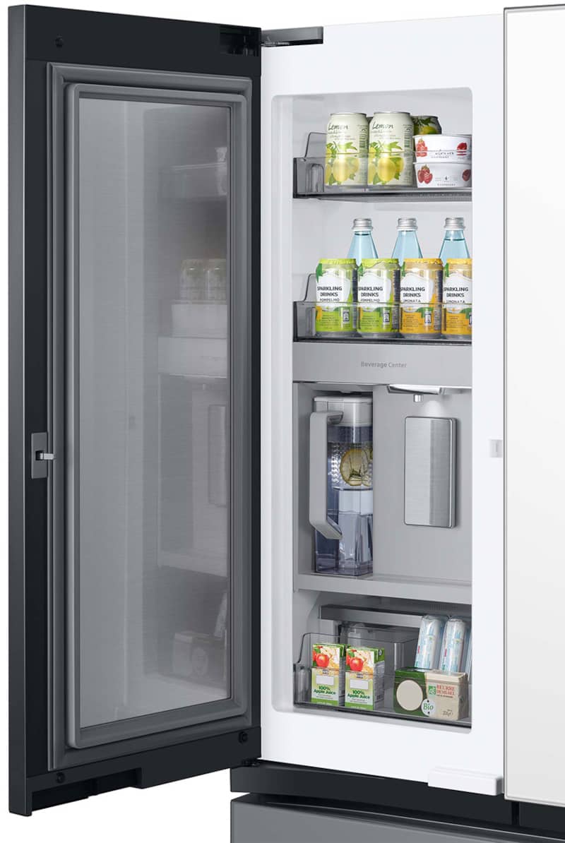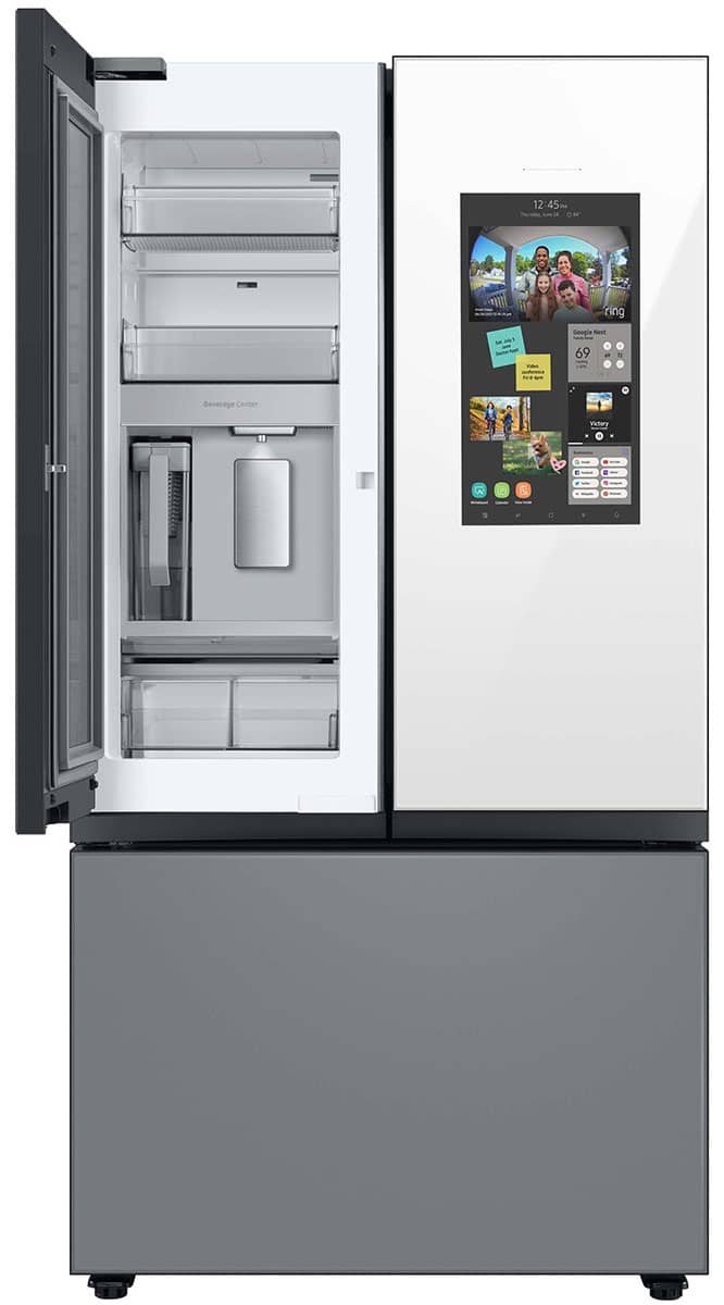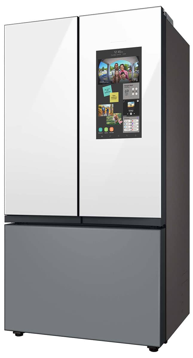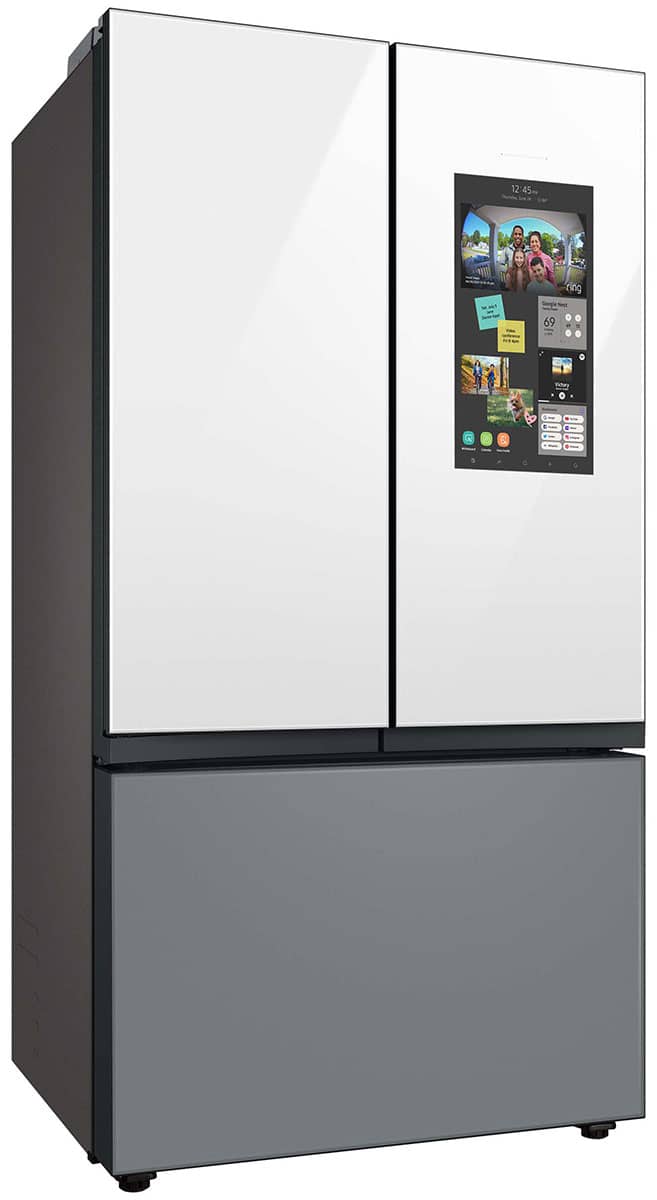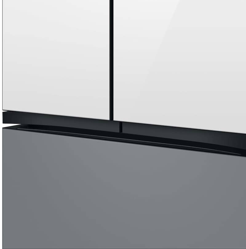 Samsung 24 Cu. Ft. White Glass Top And Family Hub Panels With Matte Gray Glass Bottom Panel BESPOKE Counter-Depth 3-Door French Door Refrigerator