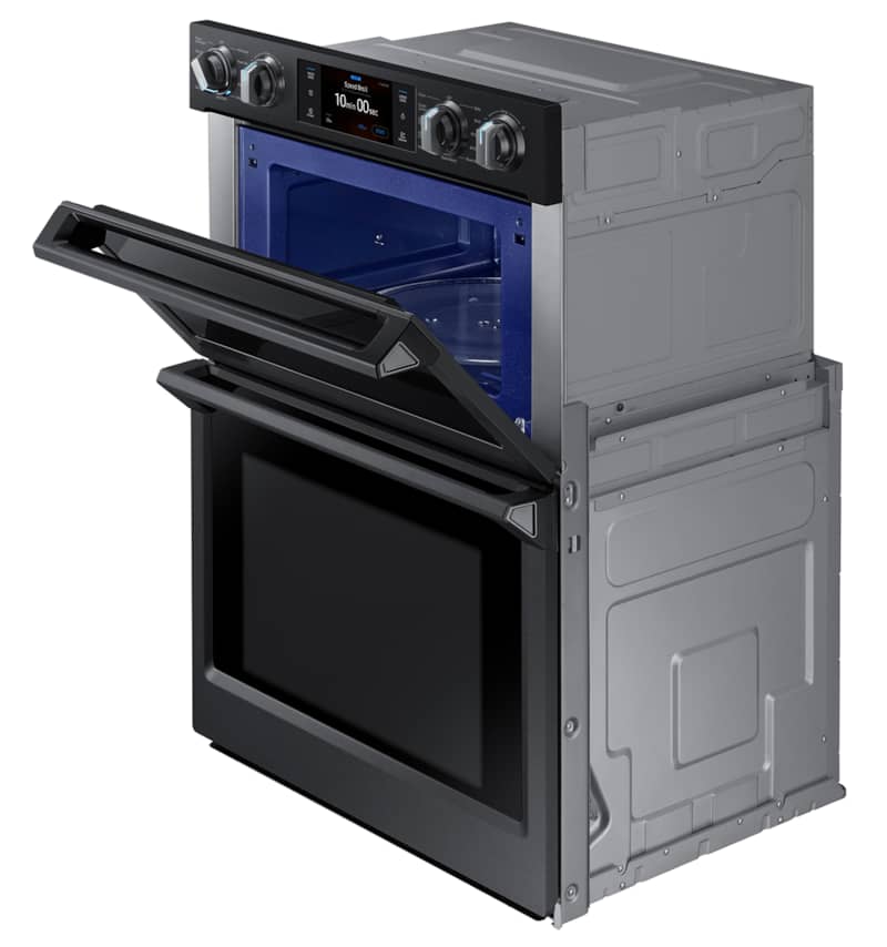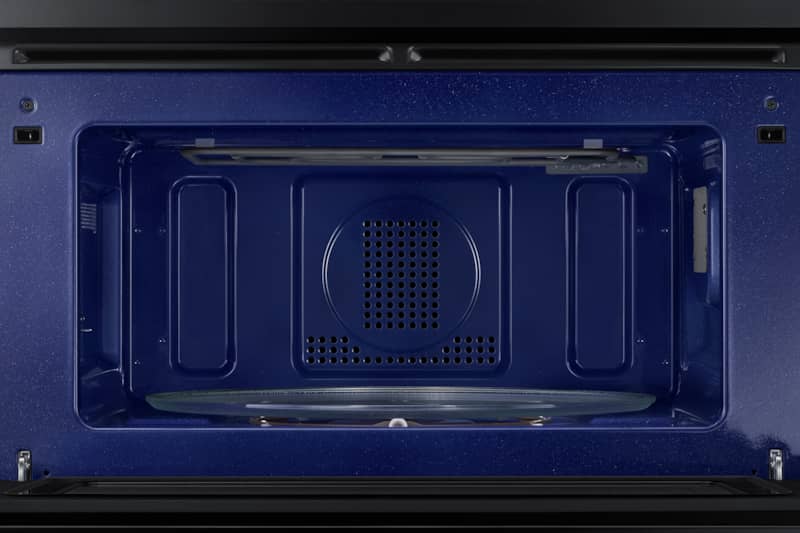 Samsung NQ70M7770DG 30″ Fingerprint Resistant Black Stainless Steel Built-In Microwave Combination Wall OvenThis smart microwave combination wall oven with Flex Duo™ technology lets you cook two dishes at different temperatures and an easy-fill tray for adding moisture at precise times. Features
