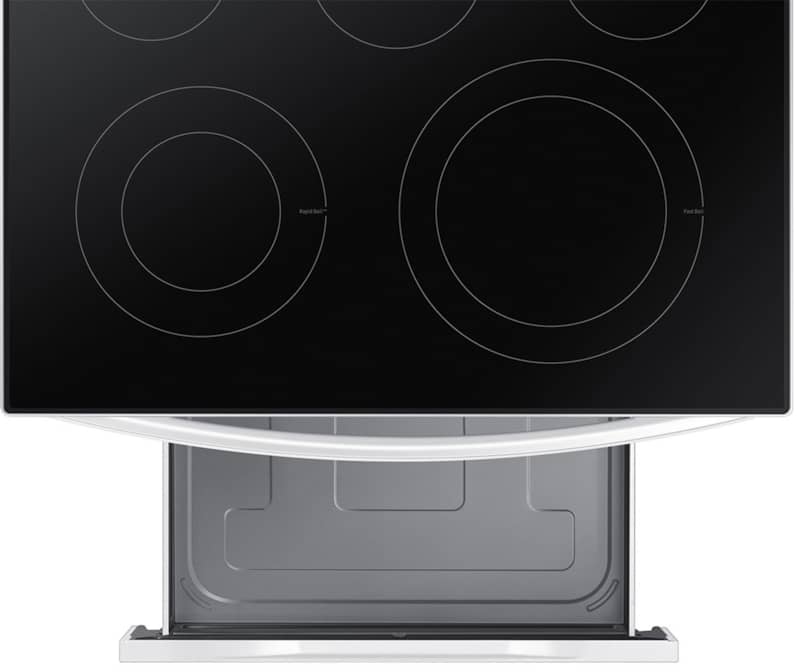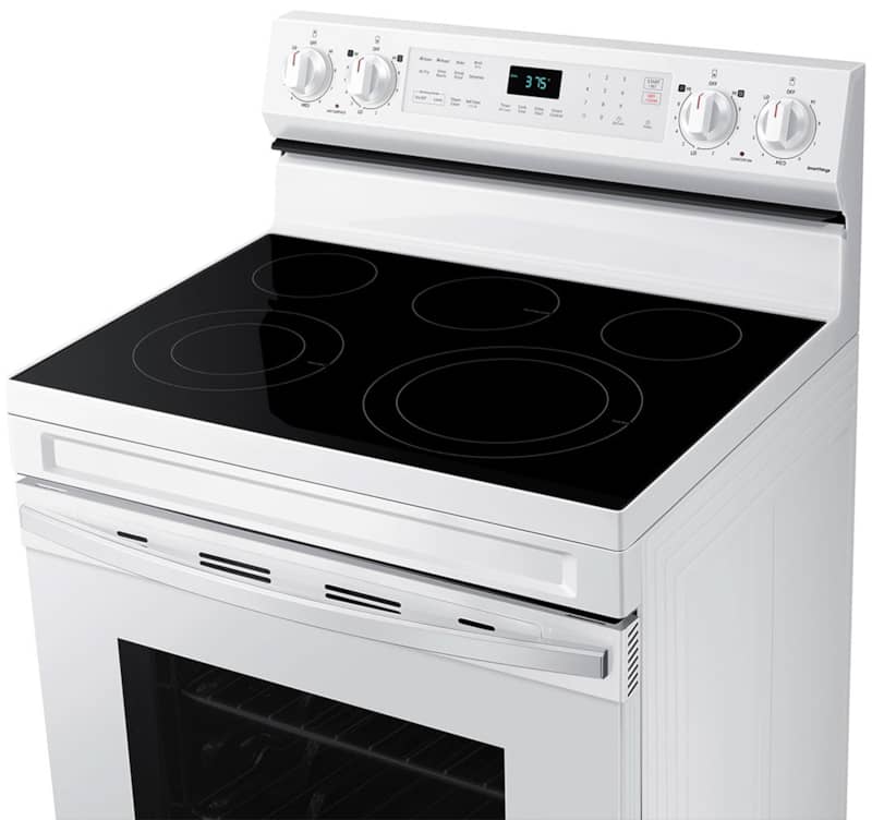 Samsung NE63A6511SW/AA 6.3 Cu. Ft. White Smart Freestanding Electric Range With No-Preheat Air Fry & ConvectionNote: The manufacturer does not include a power cord with this item due to different outlet configurations. Check your outlet configuration to determine which cord is required then click the accessories tab above to purchase the correct one for your home. If you are still unsure, contact any of Abt’s Sales Specialists at 888.228.5800. Elevate the look of your kitchen with the new Smart Freestanding Electric Range. Our Stainless Steel design elegantly wraps around cooktop sides and up through the slim control panel. Upgraded technology makes cooking simple and fun. Features