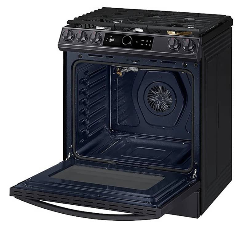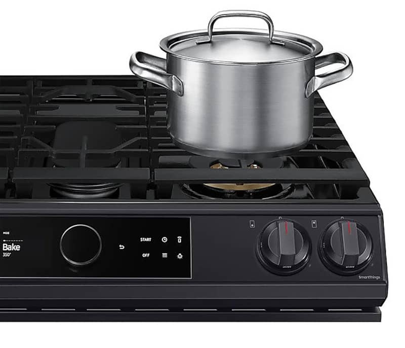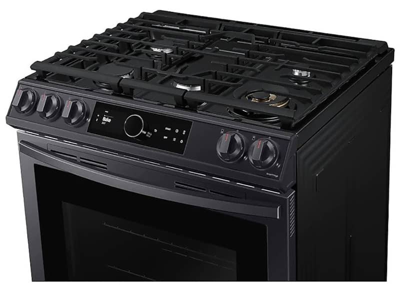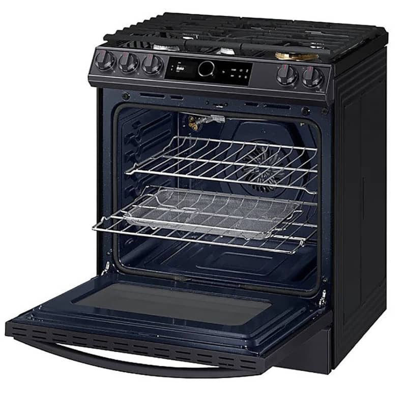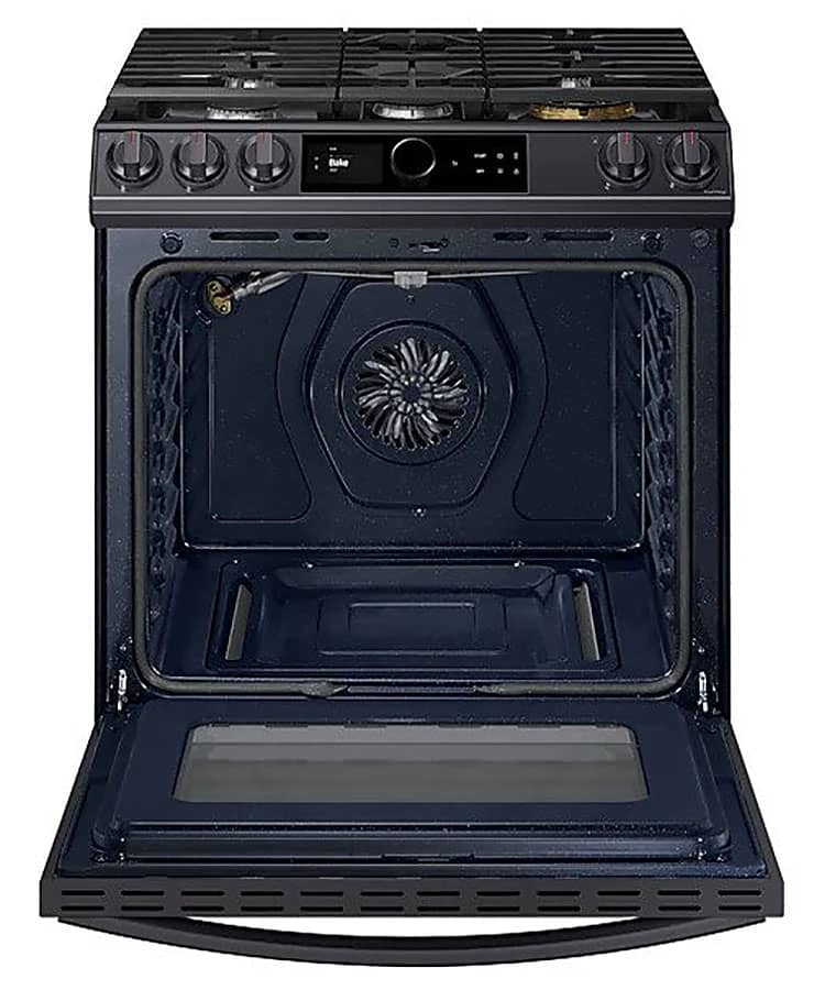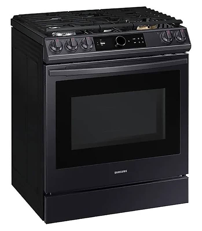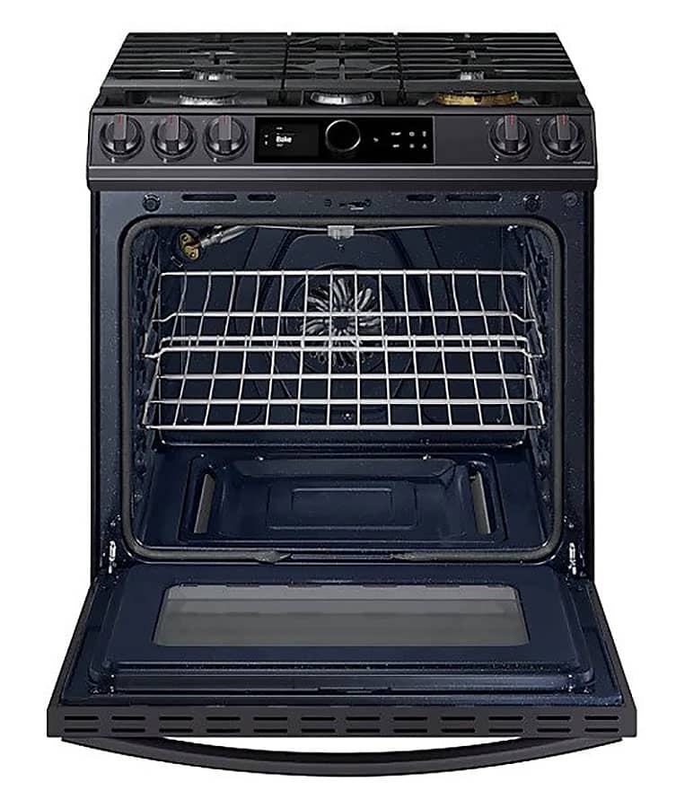 Samsung NX60T8711SG/AA 6 Cu. Ft. Fingerprint Resistant Black Stainless Steel Slide-In Gas Range With Smart Dial, Air Fry & Wi-FiThe new Samsung Front Control Slide-in Gas Range with Smart Dial and Air Fry is fully Wi-Fi connected and voice enabled, giving you the tools you need to simplify the cooking experience in the kitchen. Features Smart Dial