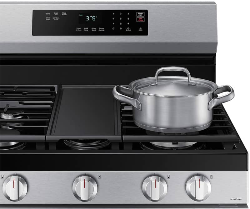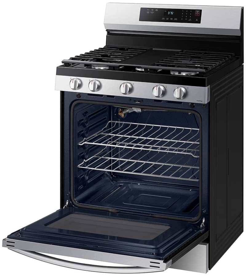Samsung 6 Cu. Ft. Stainless Steel Smart Freestanding Gas Range With 18K BTU Dual Ring Power Burner And Self Clean