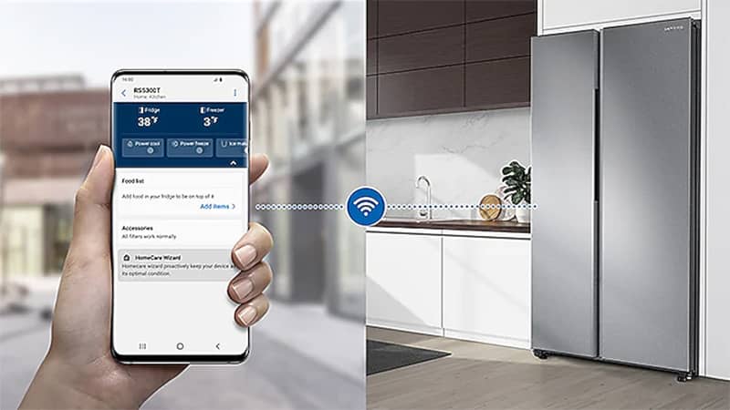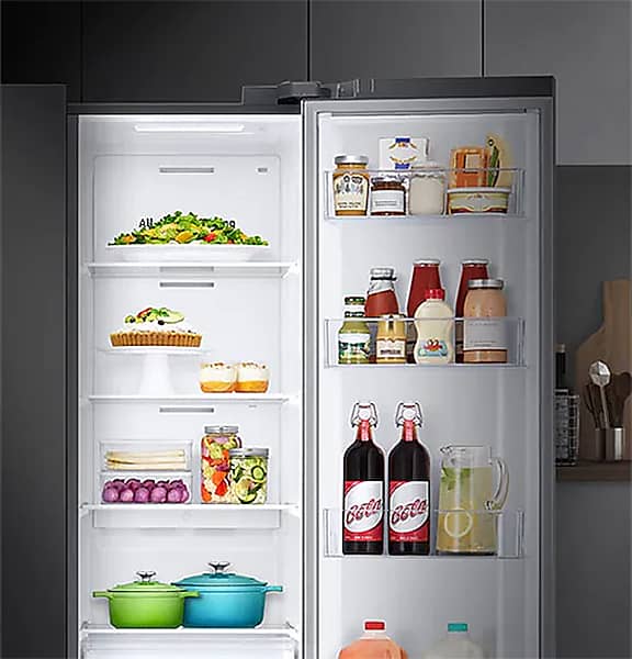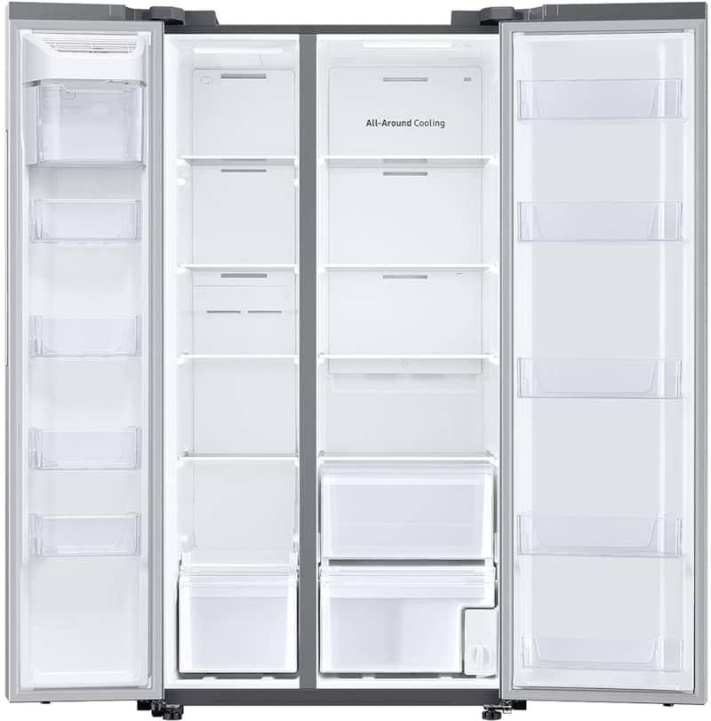 Samsung RS23A500ASR/AA ADA 22.6 Cu. Ft. Fingerprint Resistant Stainless Steel Smart Counter Depth Side-By-Side RefrigeratorLarge capacity Smart counter depth Side-by-Side Refrigerator with In-Door Ice Maker is beautifully designed with a modern look that blends seamlessly into your kitchen and a finish that withstands everyday smudges. Features
